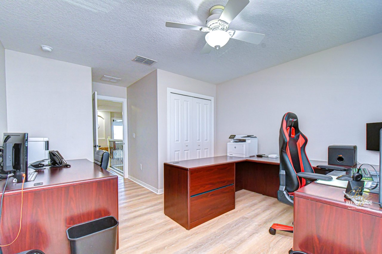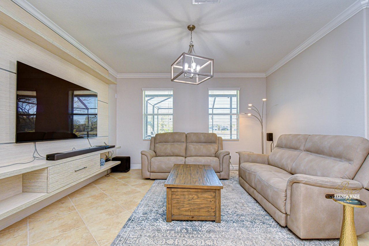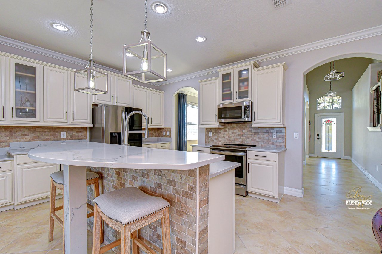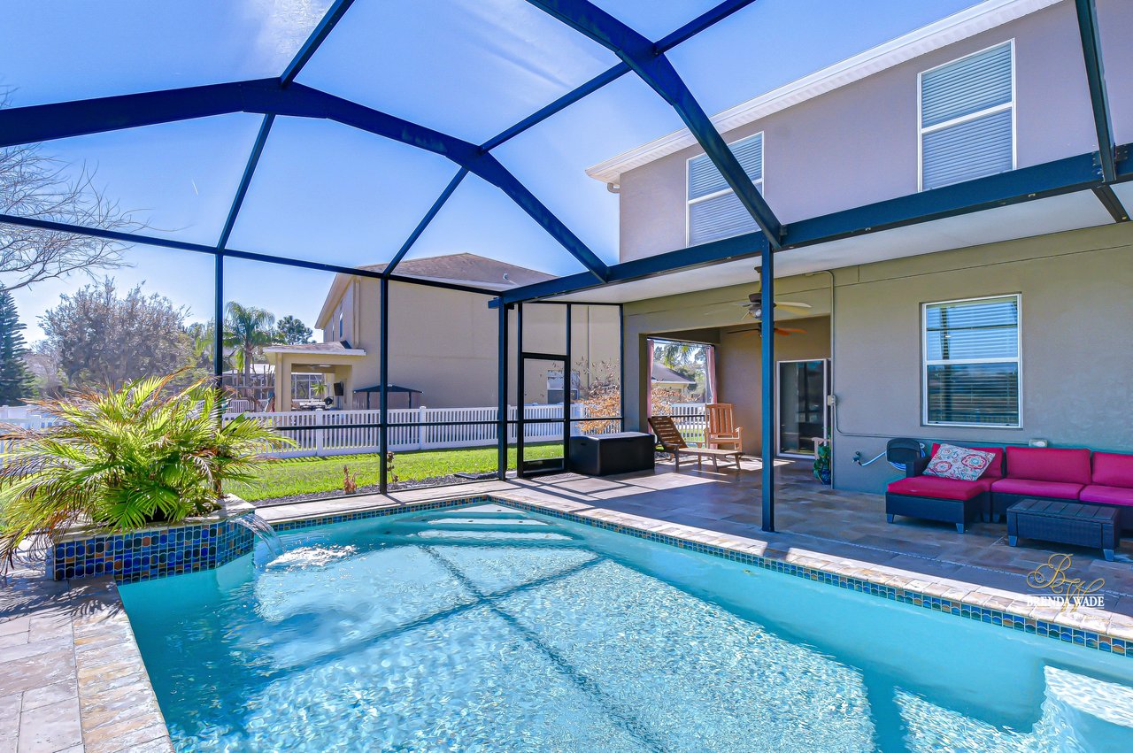 Step into your dream lifestyle in this beautiful Monte Carlo, a stunning 3,316 sq ft two-story home designed for both elegance and comfort. Situated on a premium lot backing to a serene pond, this home offers a front-row seat to nature and a fully fenced backyard for privacy and peace of mind. From the moment you arrive, the striking travertine driveway and grand entryway set the tone for a home where every detail has been thoughtfully crafted. Inside, the first floor welcomes you with formal living and dining spaces, ideal for entertaining, and a chef's kitchen that's nothing short of spectacular. All-white solid wood cabinetry, new stainless steel appliances, and custom quartz countertops make cooking and gathering a true pleasure. The kitchen opens seamlessly to the family room, while the first floor also features a guest bedroom, full bath, and convenient laundry room. Step outside to your private screened-in pool, perfectly positioned to enjoy the tranquil pond views. A full travertine deck surrounds the pool, creating an entertainer's paradise for summer gatherings or relaxing evenings under the stars. The home also features a new water heater installed in 2024 and a pool pump replaced in 2022, giving you added peace of mind. Upstairs, a bright open landing leads to a versatile bonus room--perfect for a home theater, game room, or executive office. The primary suite is your private retreat, boasting a spacious bedroom, dual closets, a garden tub, walk-in shower, and double vanities. Each of the three additional bedrooms offers generous space, while the upstairs hall bath features dual sinks and a separate tub/toilet area for added convenience. A three-car tandem garage provides ample storage and functionality, completing the home's thoughtful layout. Living here means enjoying an active, resort-style lifestyle. The community offers a gated entrance, clubhouse, kiddie splash pad, playgrounds, basketball and tennis courts, and scenic walking and biking trails. Conveniently located near Wiregrass Mall, Tampa Premium Outlets, AdventHealth, The Ice Center, I-75, and major highways, you're just 30 minutes from downtown Tampa while enjoying a peaceful, private retreat at home.