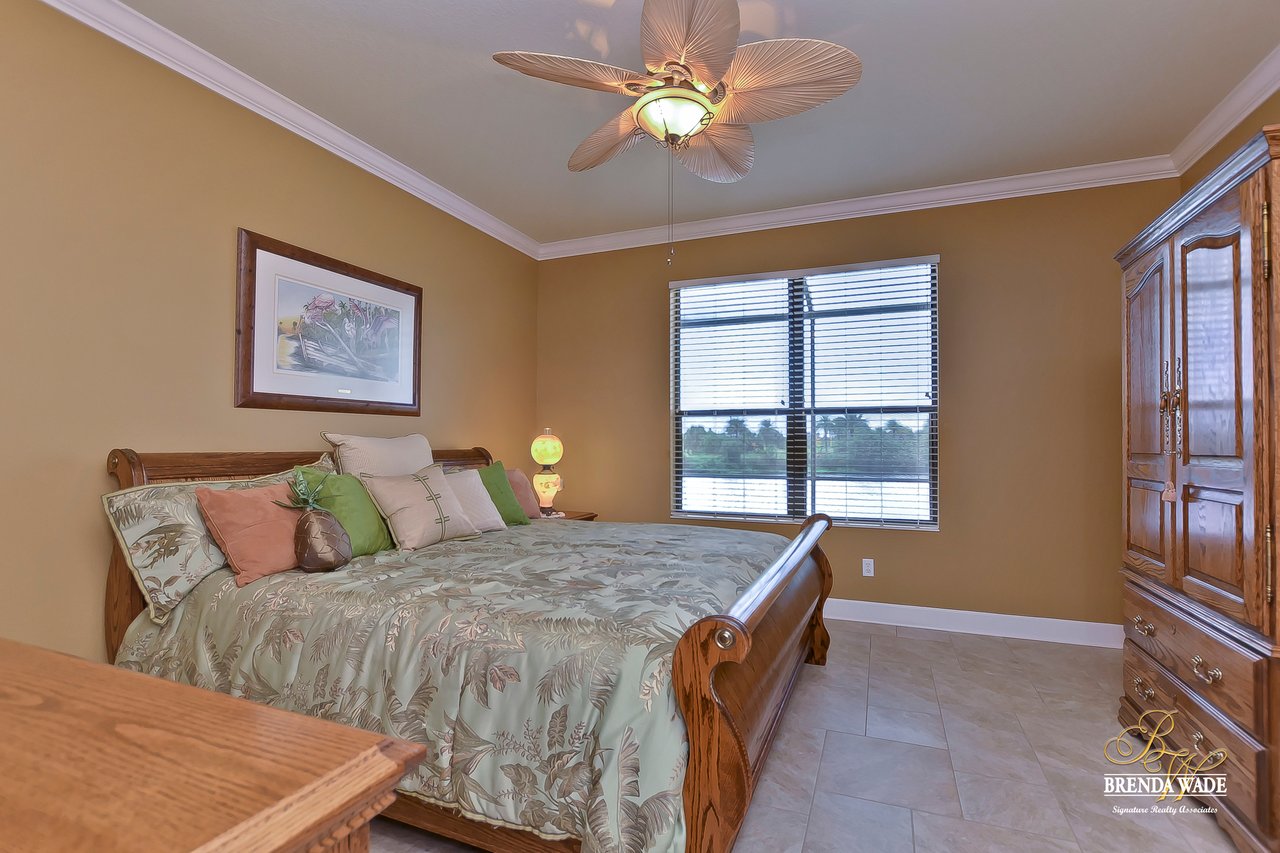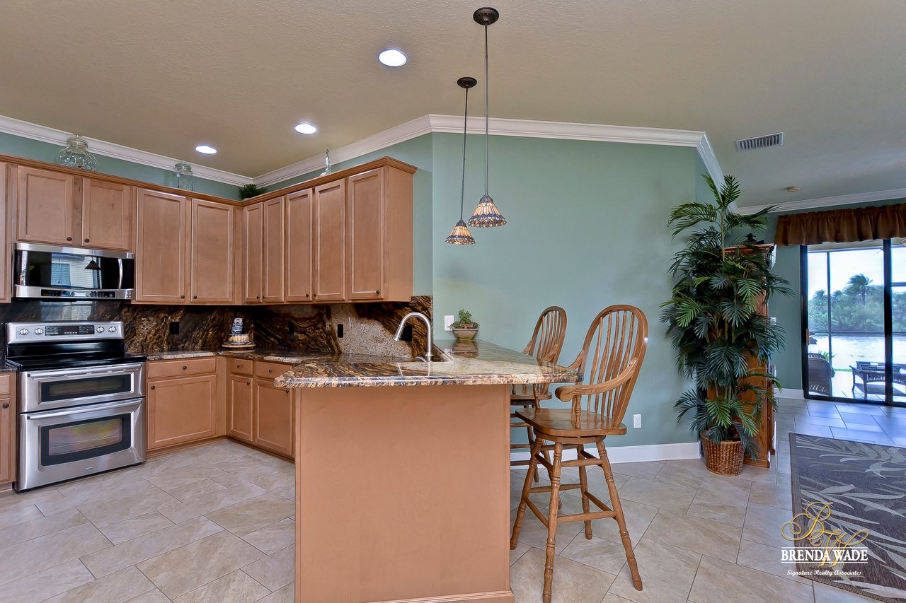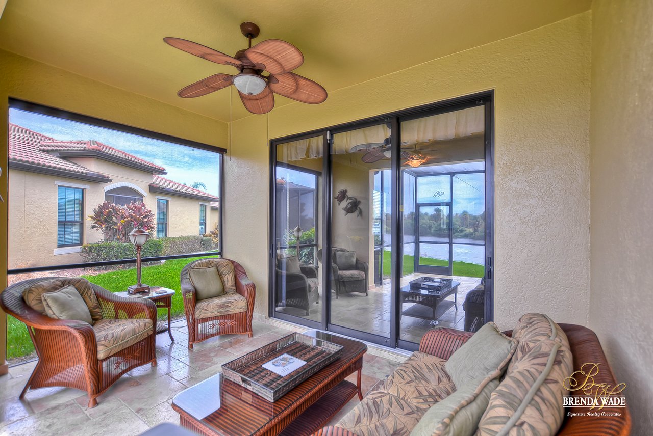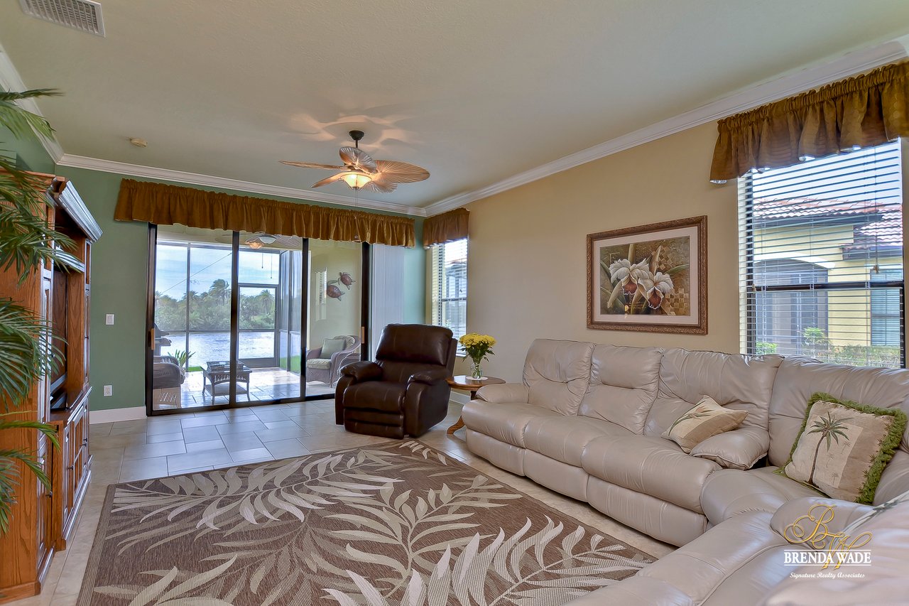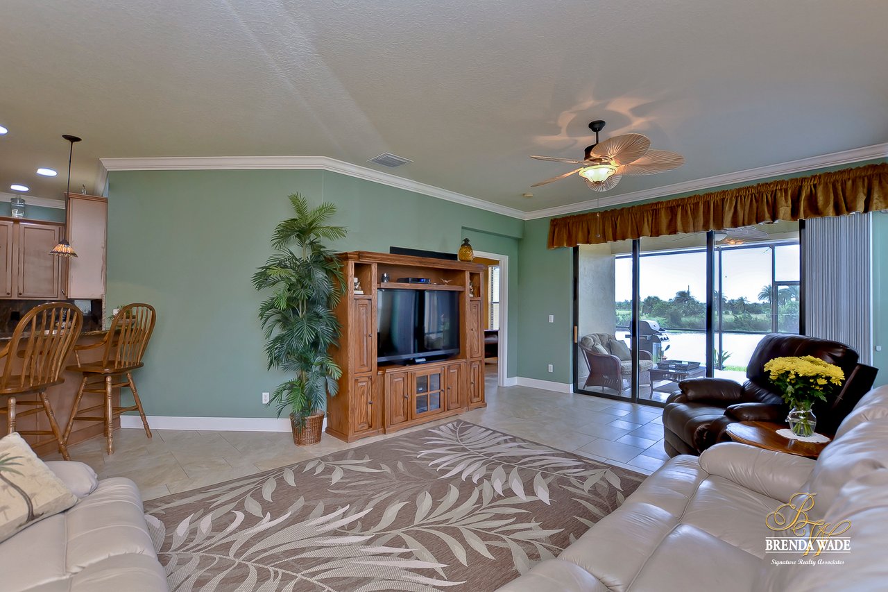 Wow! What a fabulous opportunity to own a home in one of the top 55 plus communities in the county! This beautiful villa offers loads of curb appeal with tile roof and lush landscaping. You will love the cul-de-sac location on a quiet street with no through traffic. Walk through the front door and be impressed with the water views. A perfect open floor plan makes this home feel large and spacious. The separate formal dining room is a great place to entertain. Moving forward is a magnificent kitchen with 42” maple cabinets, granite counters and backsplash and stainless appliances! Open to the kitchen is the great room which is flooded with natural light and features stunning pond views through a triple sliding door to the screened patio with travertine tile. You will love watching the Florida sunsets from here! A secluded master bedroom also has wonderful pond views through oversized window, a Huge walk-in closet and an attached master bathroom! The second bedroom is located on the opposite side of the home, great for privacy! A large den/office area is also tucked away at the front of the home, perfect for working from home or even a bonus room! This home is loaded with upgrades including crown molding, porcelain tile floors, wonderful paint choices and so much more! This community screams luxury with maintenance free living, guard gated access, 14,000 square feet clubhouse, multiple community pools, Fitness Center, Tennis Courts, Pickleball, Putting Green, Bocce Ball Courts, walking trails and multiple social events!