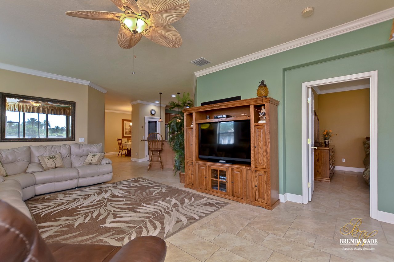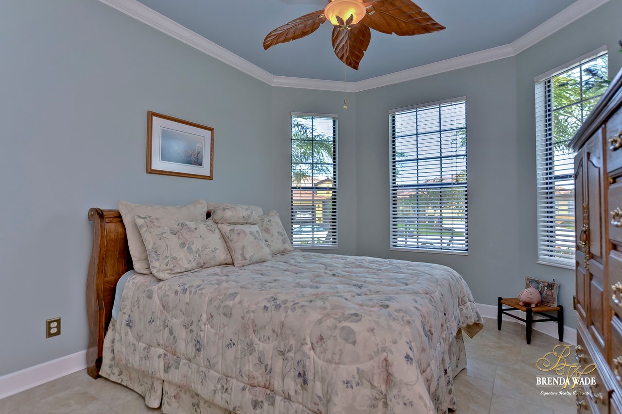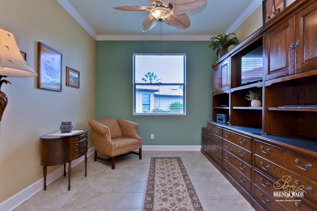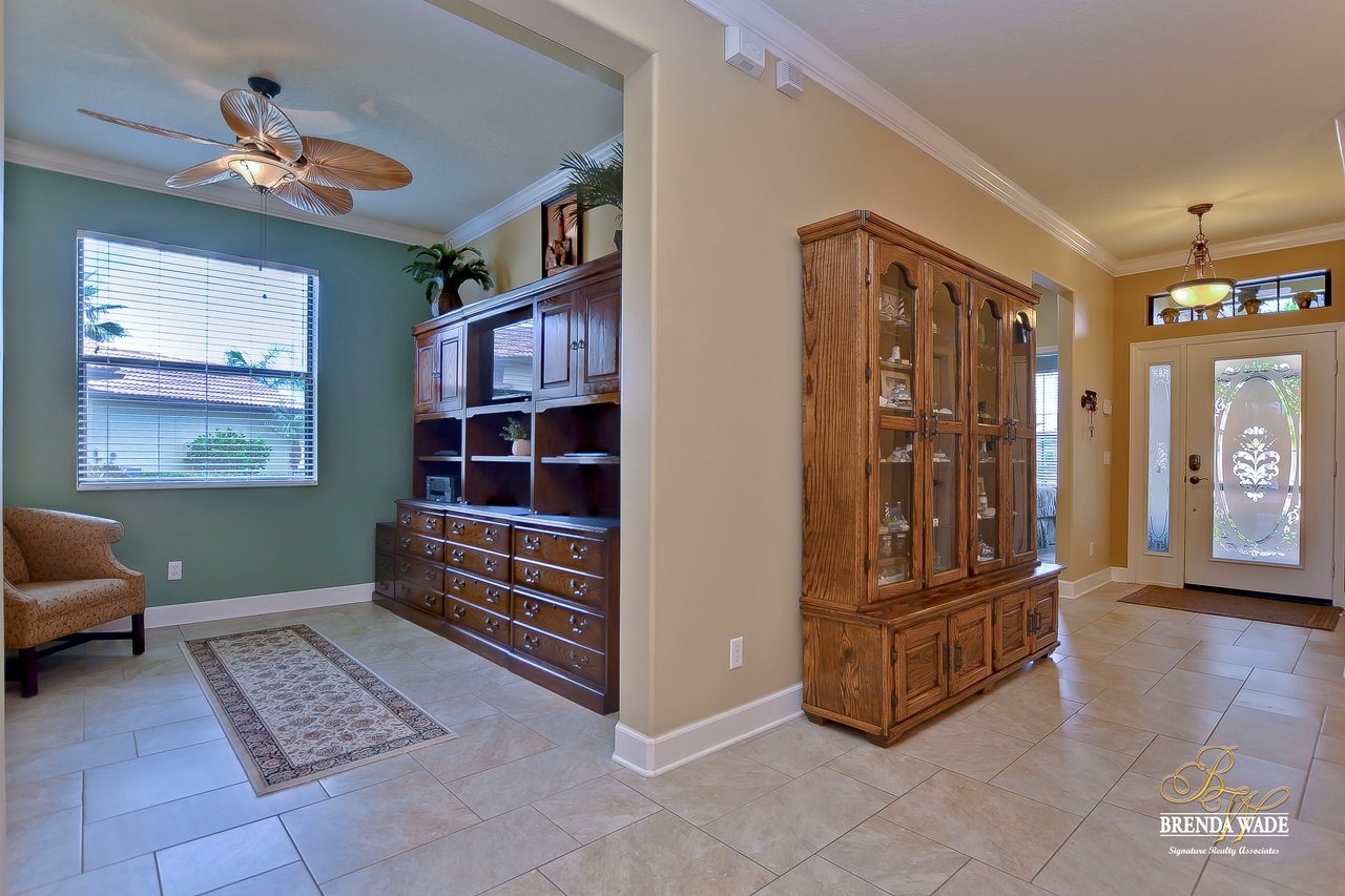 Wow! What a fabulous opportunity to own a home in one of the top 55 plus communities in the county! This beautiful villa offers loads of curb appeal with tile roof and lush landscaping. You will love the cul-de-sac location on a quiet street with no through traffic. Walk through the front door and be impressed with the water views. A perfect open floor plan makes this home feel large and spacious. The separate formal dining room is a great place to entertain. Moving forward is a magnificent kitchen with 42” maple cabinets, granite counters and backsplash and stainless appliances! Open to the kitchen is the great room which is flooded with natural light and features stunning pond views through a triple sliding door to the screened patio with travertine tile. You will love watching the Florida sunsets from here! A secluded master bedroom also has wonderful pond views through oversized window, a Huge walk-in closet and an attached master bathroom! The second bedroom is located on the opposite side of the home, great for privacy! A large den/office area is also tucked away at the front of the home, perfect for working from home or even a bonus room! This home is loaded with upgrades including crown molding, porcelain tile floors, wonderful paint choices and so much more! This community screams luxury with maintenance free living, guard gated access, 14,000 square feet clubhouse, multiple community pools, Fitness Center, Tennis Courts, Pickleball, Putting Green, Bocce Ball Courts, walking trails and multiple social events!