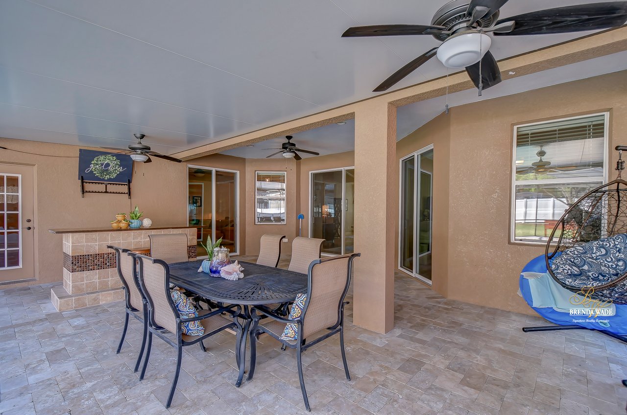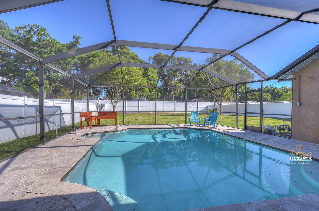 THIS IS THE ONE! Trust us, your search is OVER! This IMMACULATE family home is move-in ready and waiting for you! Located on a quiet loop street in the heart of Valrico, so close to SR-60 and just a jump onto I-4! Meticulous landscaping and a charming front porch space greet you as you arrive, wait until you step inside... Immediately entering the front door you will notice the views straight through from the dining room onto the lanai! An oasis that awaits you, including an extended pavered lanai with an expansive covered area and a dazzling swimming pool featuring a NEW HEATER & PUMP in 2021! Enjoy peace of mind knowing a NEW AIR CONDITIONER AND TANKLESS WATER HEATER WERE ADDED IN 2021! Back inside the house is a combination living and dining room, perfect for gathering family and friends! The bright, neutral paint, crown molding, and beautiful tiles set on the diagonal set the stage for the rest of the home! The open floor plan keeps the kitchen and family room together with the kitchen boasting granite counters, beautiful 42" espresso cabinets with crown, center island, and stainless appliances including a double oven! Vaulted ceilings throughout the house give it a GRAND feeling. The owner's retreat is sure to be another sanctuary with rich flooring, a private exit to the lanai, his and hers walk-in closet, and a luxurious en-suite with dual vanities, a soaking tub, and a separate shower. A private, split floor plan keeps the 3 secondary bedrooms tucked away at the other corner of the house; each with rich flooring and two full bathrooms! Plenty of space to enjoy your privately fenced yard in the Florida sun! This one won't last long, DON'T DELAY!