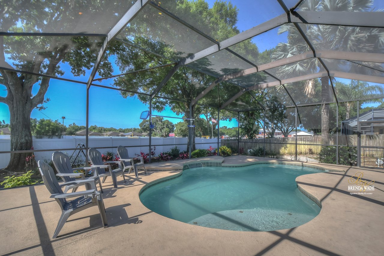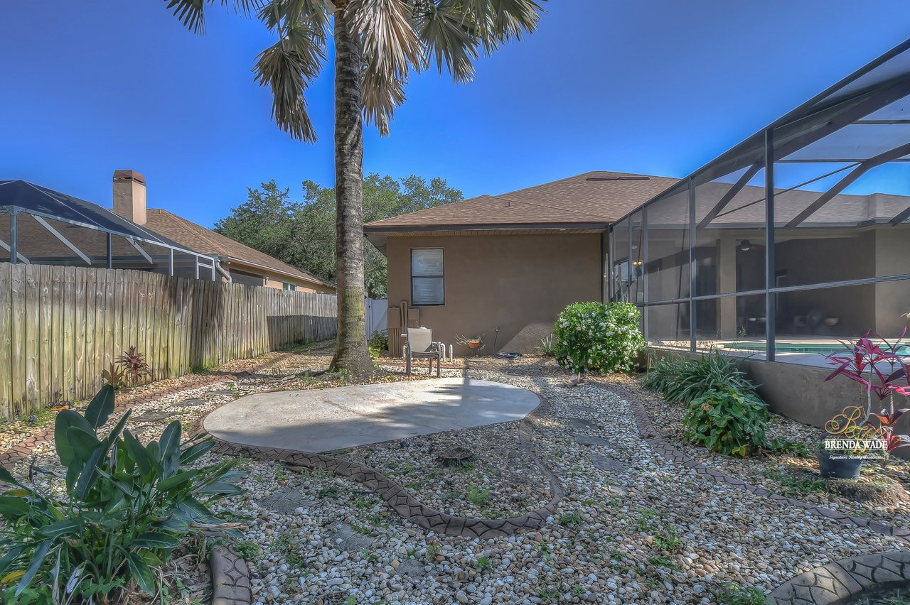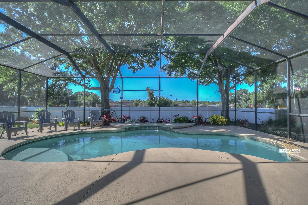 Impeccably maintained pool home in the quaint community of Heritage Crest! Nestled on an oversized, 0.33-acre lot, this home offers plenty of space for everyone in the family! Immaculate curb appeal will have you head over heels in love from the moment you arrive! Stacked stone accents, NEW ROOF in 2022, lush lawn and landscaping, and a charming leaded and beveled glass door entry! With neighbors only on one side, you will adore the privacy that this home provides! Inside you are greeted with a wide-open floor plan including a formal dining space and private home office just as you enter! Working from home will be a breeze in this quiet space! Moving forward into the family room and kitchen combo, you will notice the kitchen leaves nothing to be desired... from 42' cabinets topped with crown, granite counters, stainless appliances, walk-in pantry, and a lovely eat-in breakfast nook with tranquil pool views! The family room features a double tray ceiling, double sliding glass door, and neutral paint that continues throughout the house! Check out the owners' suite located at the back of the home with its own private pool access! This stunning room and attached bathroom offer tray ceiling, two walk-in closets, jetted tub, walk-in shower, and dual sinks! Two bedrooms are well-sized with walk-in closets and share a second bathroom between them! Spend your summers splashing in the glistening pool with a screened lanai! There is so much space to relax on the covered patio or spend time in the fenced yard! There is an OVERSIZED 2-car garage that could fit a 3rd car if needed it’s so spacious! This home is quite the treat and won’t be on the market for long! Schedule your showing today!