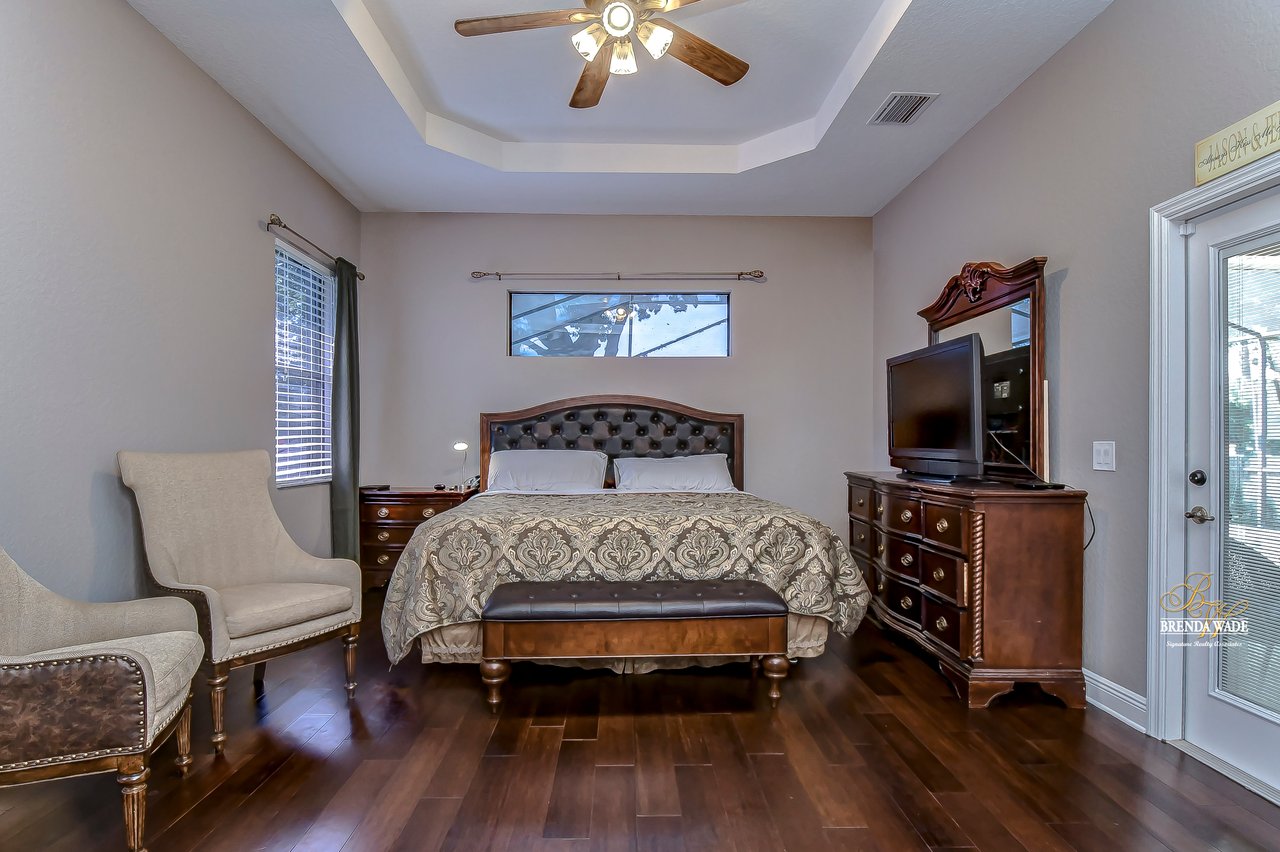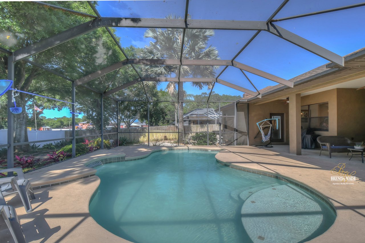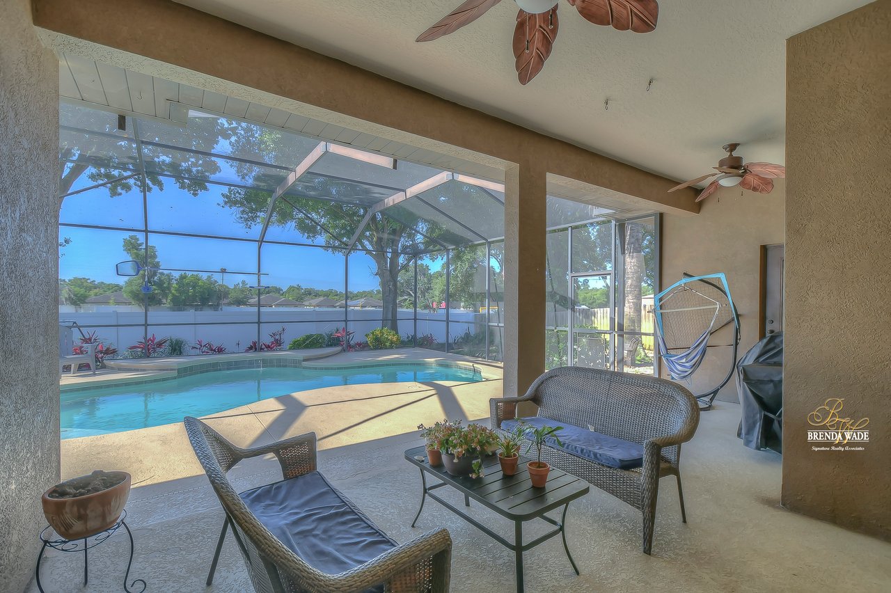 Impeccably maintained pool home in the quaint community of Heritage Crest! Nestled on an oversized, 0.33-acre lot, this home offers plenty of space for everyone in the family! Immaculate curb appeal will have you head over heels in love from the moment you arrive! Stacked stone accents, NEW ROOF in 2022, lush lawn and landscaping, and a charming leaded and beveled glass door entry! With neighbors only on one side, you will adore the privacy that this home provides! Inside you are greeted with a wide-open floor plan including a formal dining space and private home office just as you enter! Working from home will be a breeze in this quiet space! Moving forward into the family room and kitchen combo, you will notice the kitchen leaves nothing to be desired... from 42' cabinets topped with crown, granite counters, stainless appliances, walk-in pantry, and a lovely eat-in breakfast nook with tranquil pool views! The family room features a double tray ceiling, double sliding glass door, and neutral paint that continues throughout the house! Check out the owners' suite located at the back of the home with its own private pool access! This stunning room and attached bathroom offer tray ceiling, two walk-in closets, jetted tub, walk-in shower, and dual sinks! Two bedrooms are well-sized with walk-in closets and share a second bathroom between them! Spend your summers splashing in the glistening pool with a screened lanai! There is so much space to relax on the covered patio or spend time in the fenced yard! There is an OVERSIZED 2-car garage that could fit a 3rd car if needed it’s so spacious! This home is quite the treat and won’t be on the market for long! Schedule your showing today!