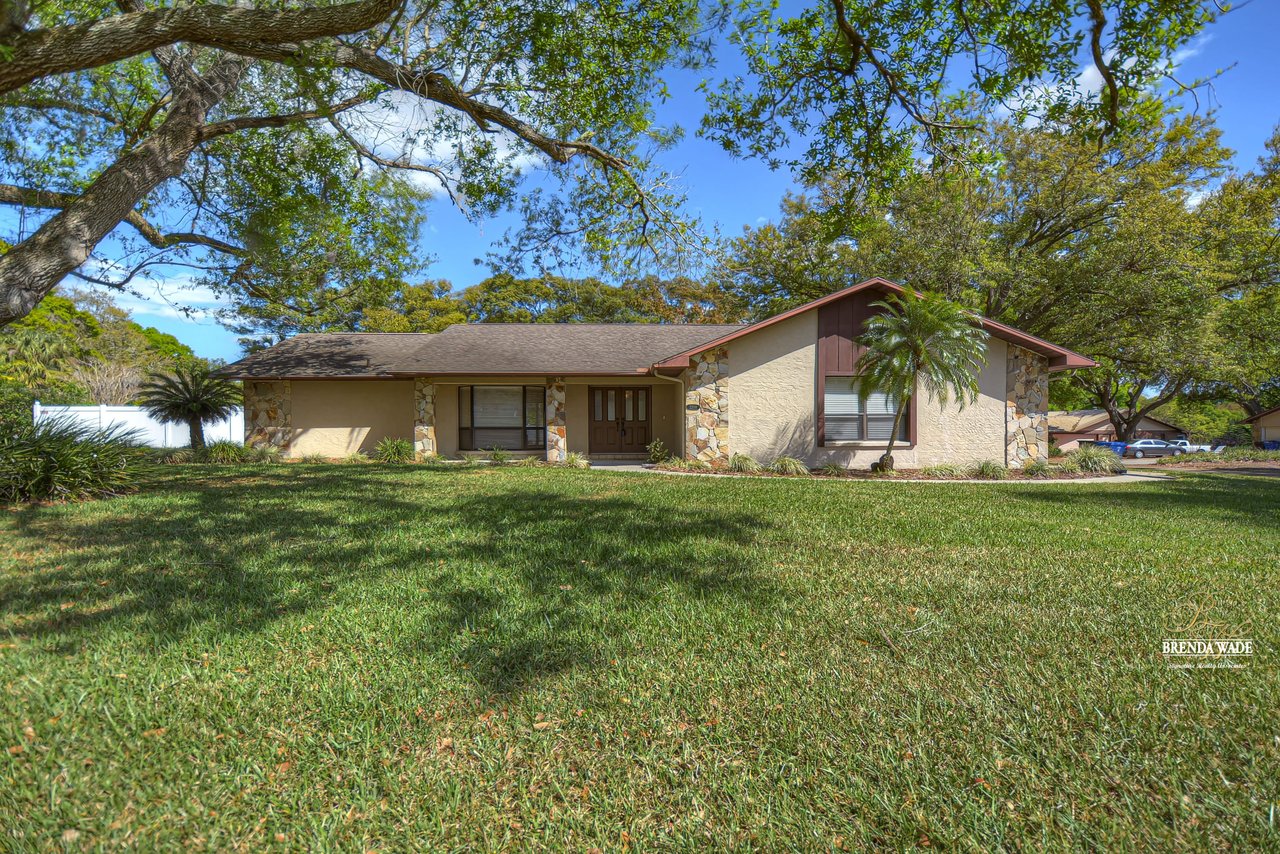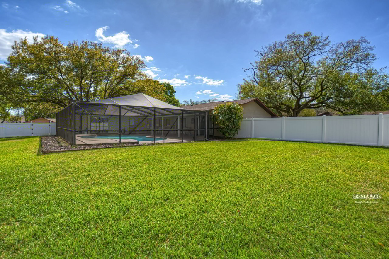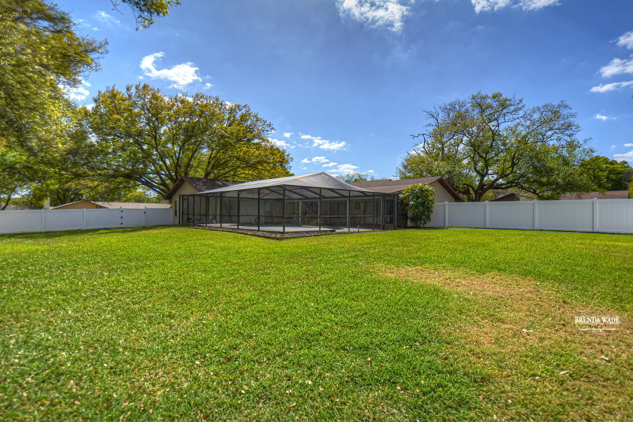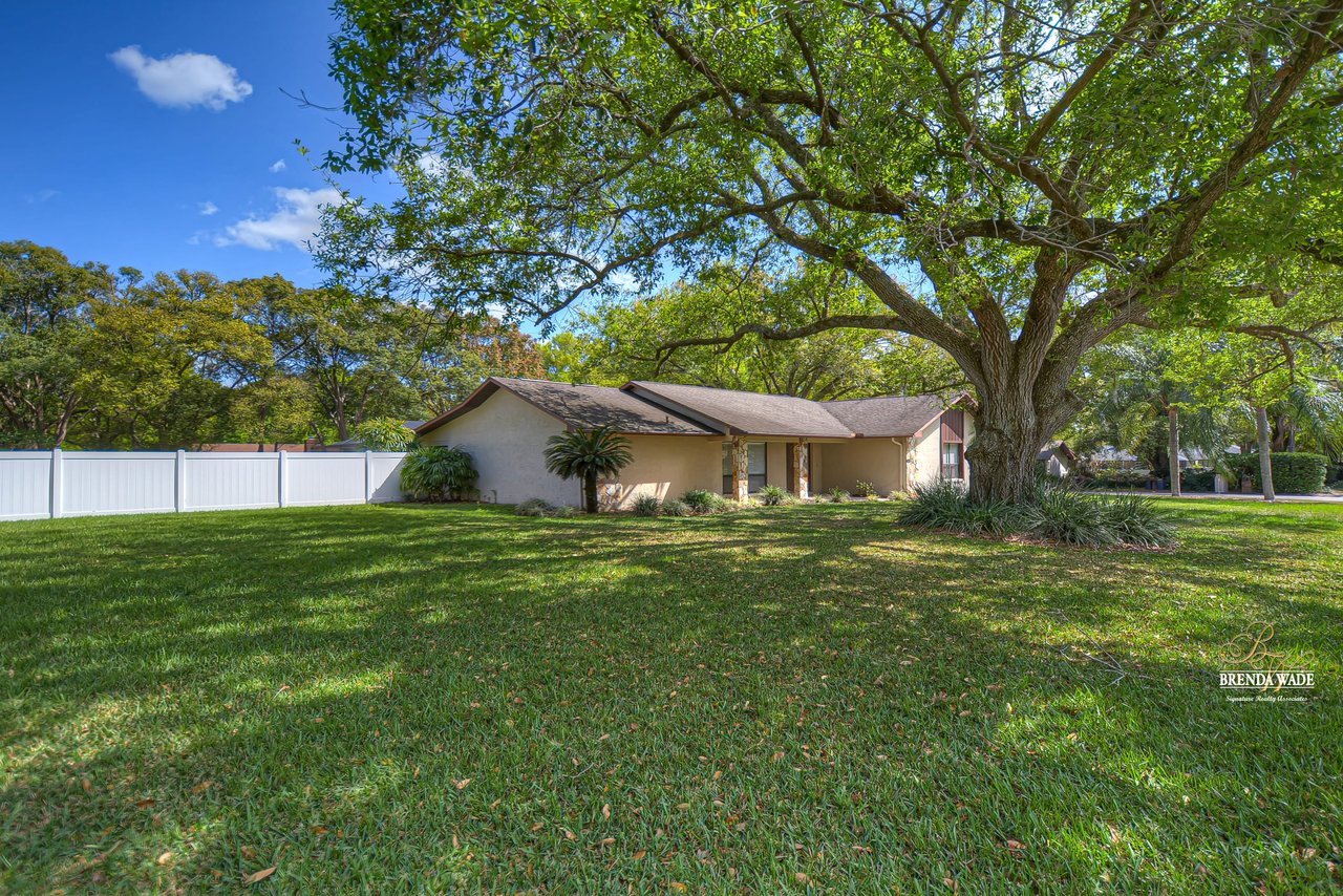 Take a tour of this charming home located on a lush .46-acre corner lot in the Greenhills community! This home is in central Valrico, so close to shopping and entertainment as well as quick access to SR-60, I-75, and the CrossTown! The curb appeal is immaculate boasting stone accents, mature oak trees, meticulously maintained landscaping, and a side entry two-car garage! You will love the front yard, but you will love the backyard even more! The oversized screened lanai features a large covered patio, perfect for relaxing while the kids swim in the sparkling pool, while the expansive yard boasts lush grass and is fully fenced! Kids and pets will have plenty of space to run and play! This backyard was MADE for enjoying the outdoors! Enter the double doors into the open foyer that flows right into the bright dining room with bay windows! This house hosts three sets of pocket sliders throughout, SO IDEAL for entertaining guests! The heart of the home is the kitchen featuring stainless appliances, tons of cabinet and counter space allowing for room for the whole family to help prepare meals, breakfast bar seating, a large window overlooking the pool, and a roomy dinette for everyday meals! The Great room is so spacious and features elevated ceilings, and a wood-burning fireplace, ready to entertain all friends and family! The master suite is secluded on one side of the home with his & her walk-in closets and en-suite offering dual sinks, large linen closet, and walk-in shower! Two more bedrooms share a bathroom and offer plenty of closet space! This is a wonderful home that has been meticulously taken care of, you do not want to miss out!
