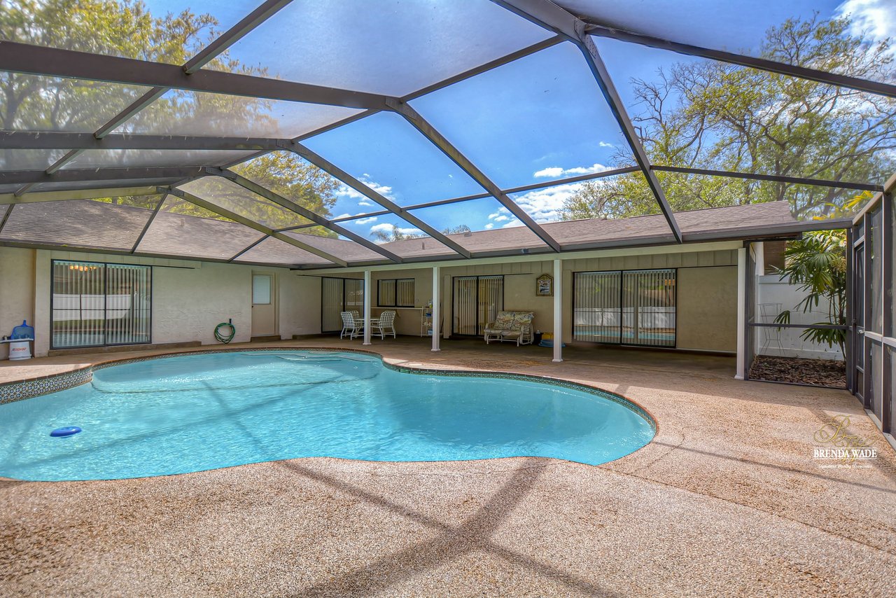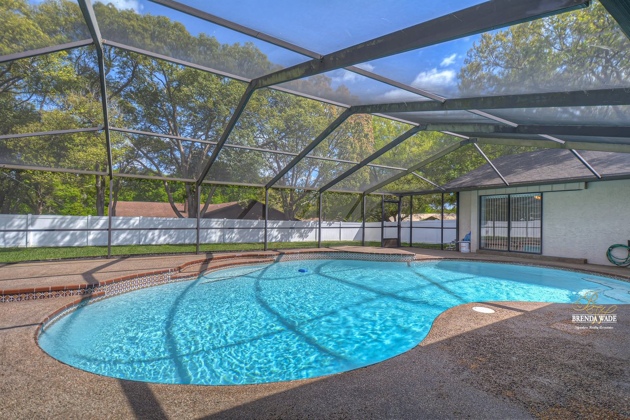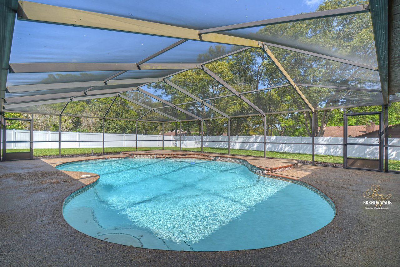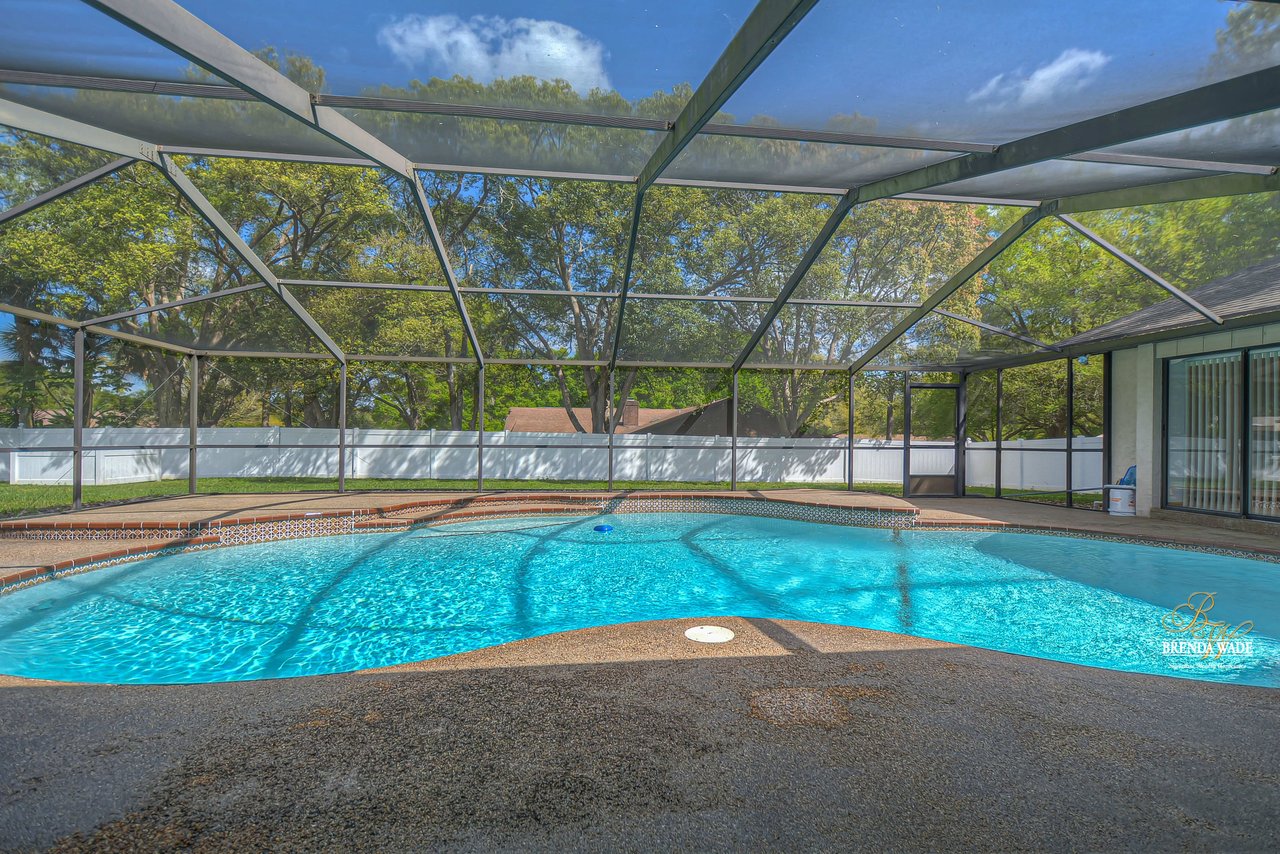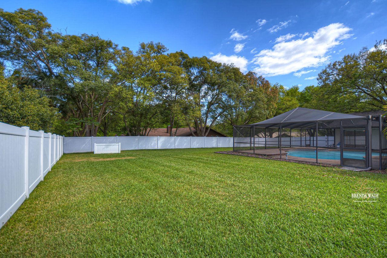 Take a tour of this charming home located on a lush .46-acre corner lot in the Greenhills community! This home is in central Valrico, so close to shopping and entertainment as well as quick access to SR-60, I-75, and the CrossTown! The curb appeal is immaculate boasting stone accents, mature oak trees, meticulously maintained landscaping, and a side entry two-car garage! You will love the front yard, but you will love the backyard even more! The oversized screened lanai features a large covered patio, perfect for relaxing while the kids swim in the sparkling pool, while the expansive yard boasts lush grass and is fully fenced! Kids and pets will have plenty of space to run and play! This backyard was MADE for enjoying the outdoors! Enter the double doors into the open foyer that flows right into the bright dining room with bay windows! This house hosts three sets of pocket sliders throughout, SO IDEAL for entertaining guests! The heart of the home is the kitchen featuring stainless appliances, tons of cabinet and counter space allowing for room for the whole family to help prepare meals, breakfast bar seating, a large window overlooking the pool, and a roomy dinette for everyday meals! The Great room is so spacious and features elevated ceilings, and a wood-burning fireplace, ready to entertain all friends and family! The master suite is secluded on one side of the home with his & her walk-in closets and en-suite offering dual sinks, large linen closet, and walk-in shower! Two more bedrooms share a bathroom and offer plenty of closet space! This is a wonderful home that has been meticulously taken care of, you do not want to miss out!