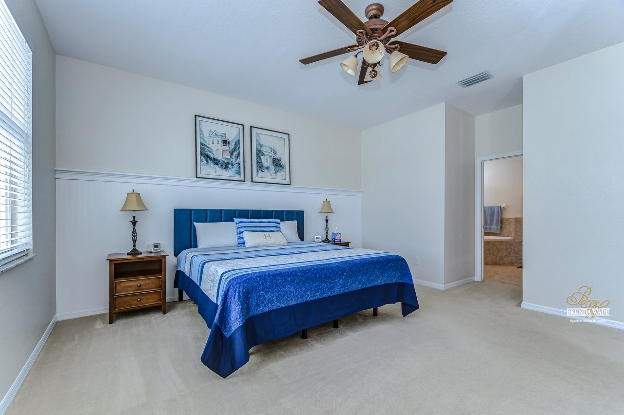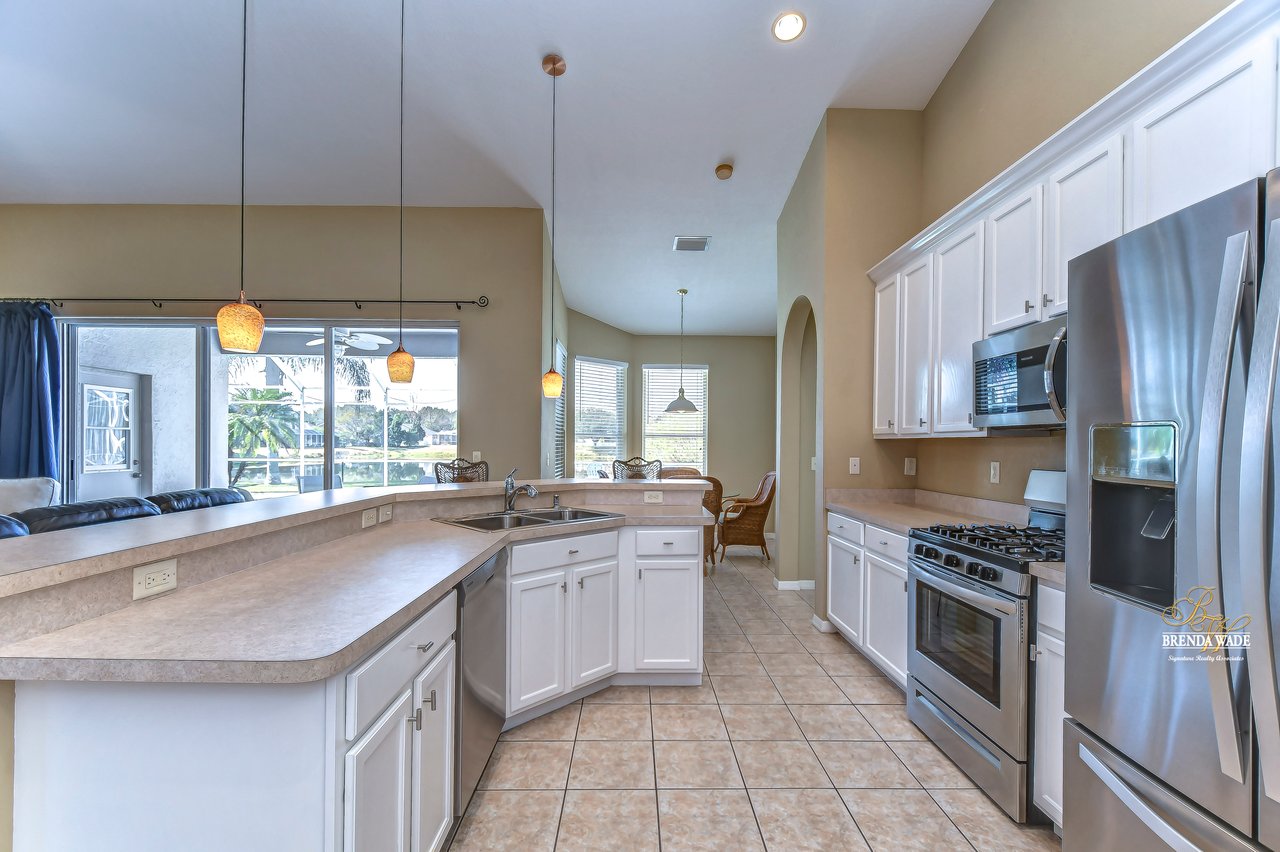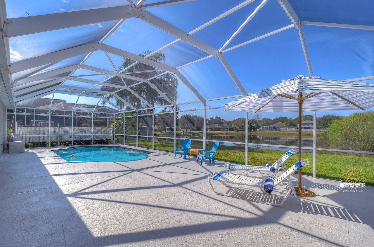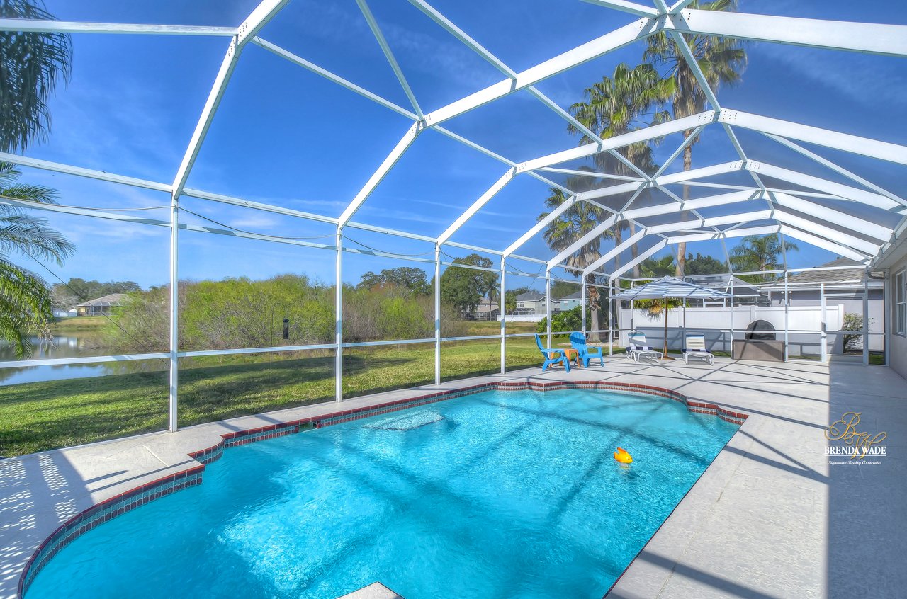 YOU'VE HIT THE JACKPOT WITH THIS ONE! This POOL home is move-in ready and waiting for you! The Hickory Lake community is in the best location; easy access to I-75 and The Crosstown as well as tons of restaurants and shopping! You will always have something fun to do! Pride of ownership shows at this home both inside and out and take note of all of the BIG-TICKET items that the owners have taken care of for you! A NEW roof & gutters, HVAC system, and hot water heater were all replaced just in 2022! Curb appeal is a huge plus with meticulously cared for landscaping and fresh exterior paint in 2022! Inside awaits high ceilings, a neutral paint palette, amazing natural lighting, and open layout so this home lives big! The formal dining room is set for you to host the entire family at the holidays, offers crown molding, and is adjacent to the living room! Both feature a rich wood flooring for easy cleaning! The family room features a vaulted ceiling, wall of sliders, and open concept into the kitchen! Step into the kitchen and you will appreciate the NEW stainless appliances, white cabinets with crown, and extended breakfast bar seating! The breakfast nook is flooded with natural lighting and allows a relaxing pool and pond view while you enjoy your meal! The primary suite is quite the retreat with a wainscoting accent wall, walk-in closet, and attached bathroom with walk-in shower, separate vanities, and soaking tub! This functional home features a triple split floor plan allowing privacy for everyone who stays! All secondary bedrooms have NEW 2022 carpet as well! Two additional bedrooms share a second bath in one area of the home while the fourth bedroom has a pool bath nearby! This fourth bedroom can be a great guest suite or keep it as a home office as the current owners have done with built-ins! This oversized screened lanai has a sparkling SOLAR HEATED pool and so much space to enjoy the Florida weather all year long! There is plenty of yard space still for the kids and pets to enjoy while looking out to the pond behind! You will just love sitting on the lanai and watching the beautiful sunsets and wildlife! This home is absolutely delightful! Come see, come buy! View the home virtually with this link: