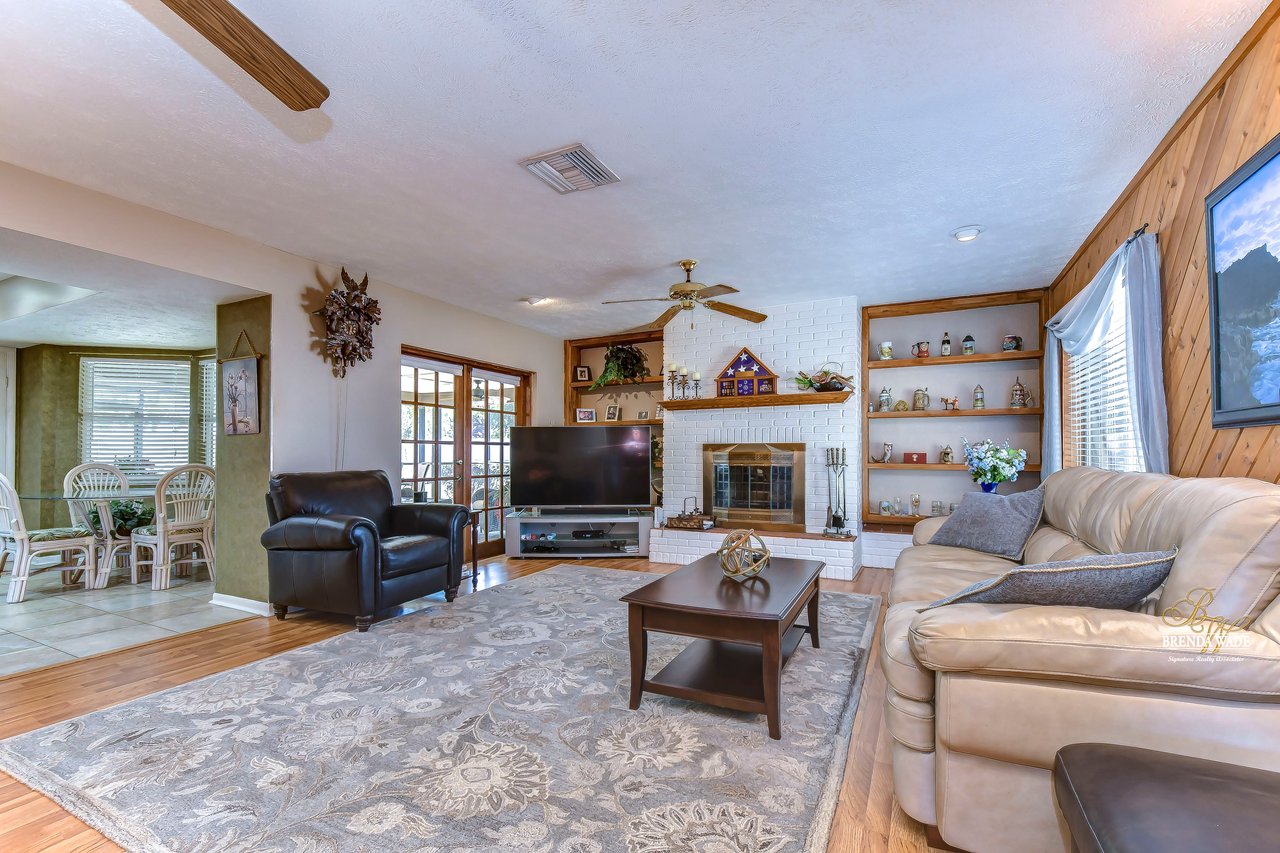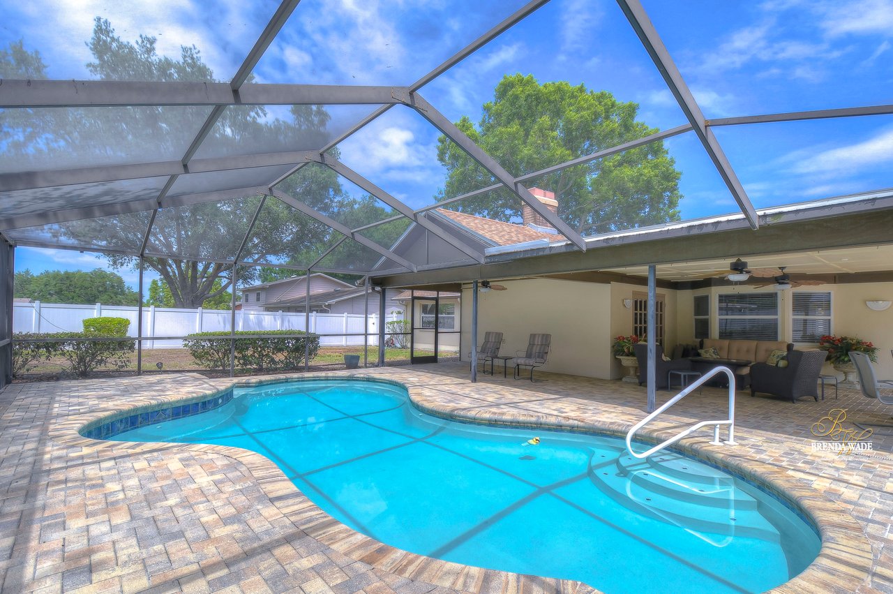 Welcome to your dream home! This immaculate and spacious 3 bedroom, 2.5 bath gem is situated on an oversized lot, offering a private oasis for you and your family! Nestled in the desirable Buckhorn golf community, this stunning home boasts a sparkling pool and an OVERSIZED lot and lanai, perfect for endless summer fun and entertainment! The homeowner has spared no expense in making this home truly exceptional! With a new roof, new brick pavers on the lanai, resurfaced pool, and new pool pump, this home is MOVE-IN READY! As you step into the family room, you'll be impressed by the generous space for seating, built-in shelves, French doors that open to the lanai, and a cozy wood burning fireplace, perfect for those chilly evenings! The dining area, adjacent to the living room, features chair railing, creating a seamless flow for entertainment and making it the perfect space for hosting gatherings and events! Any chef in the family will be delighted by the spacious kitchen, featuring tons of storage space, updated countertops, and a sunny eat-in nook overlooking the expansive backyard! Cooking and entertaining will be a breeze in this well-appointed kitchen, designed with both style and functionality in mind! The primary suite is a true retreat, with his and her closets and en-suite bath! The two secondary rooms are perfect for family members or guests to enjoy a good night's rest, with abundant space and comfort! Step outside into the backyard, and you'll find a true oasis! The sparkling pool will be the center of summer fun, perfect for relaxing, playing, and entertaining! The oversized fenced lot provides plenty of space for outdoor activities, gardening, or simply relaxing in the shade of mature trees! The large, covered patio is ideal for outdoor dining and BBQs, making it a perfect spot for gatherings and making memories! In addition to the impressive features and upgrades, this home is also located in the desirable Buckhorn golf community, offering access to a premier golf course, and is conveniently located near shopping, dining, and entertainment options! Don't miss the opportunity to make this house your forever home!