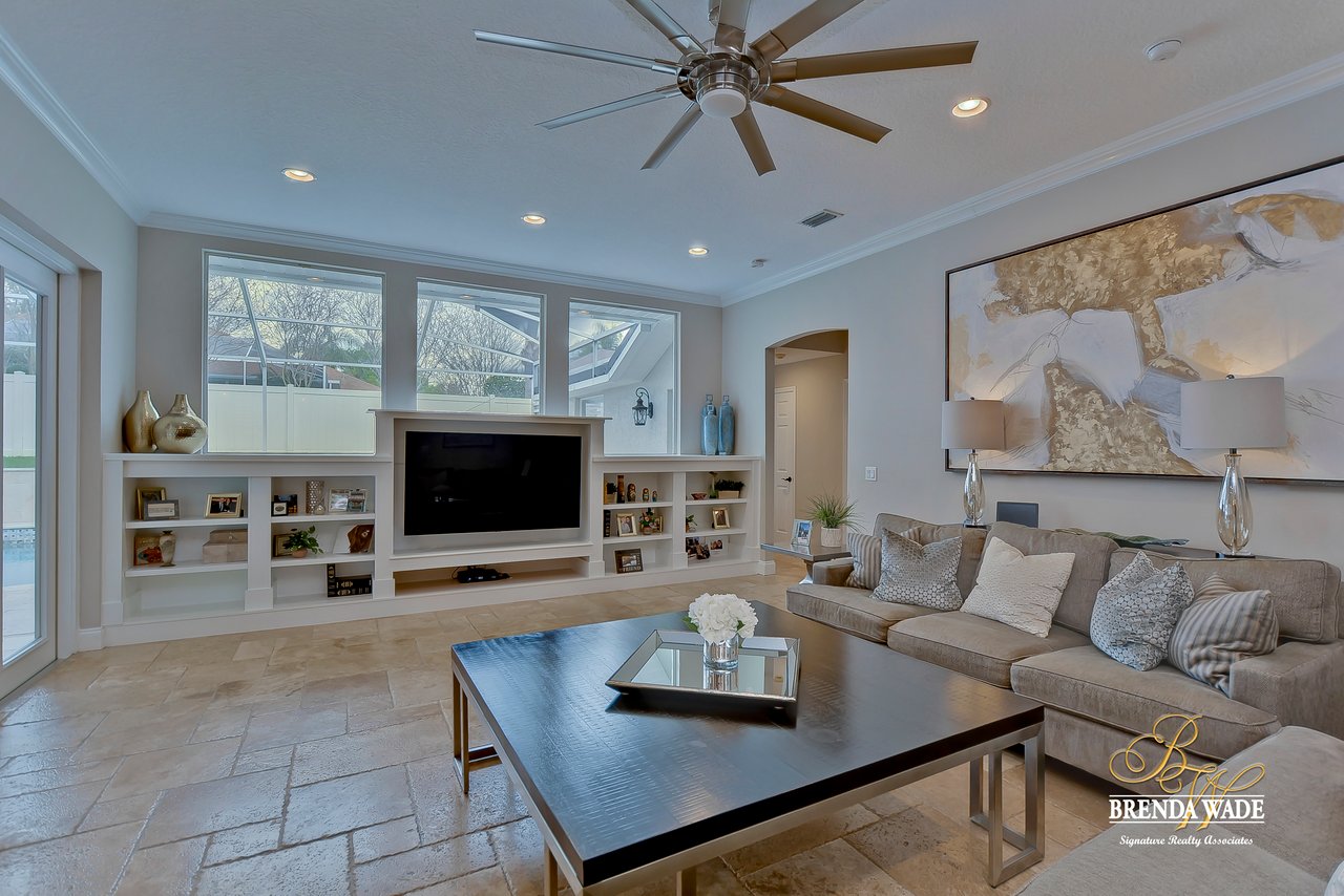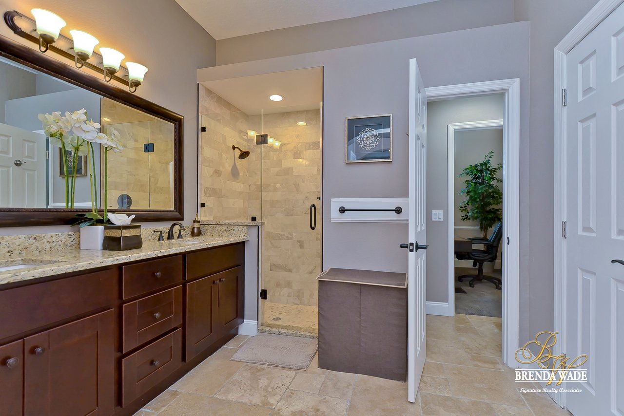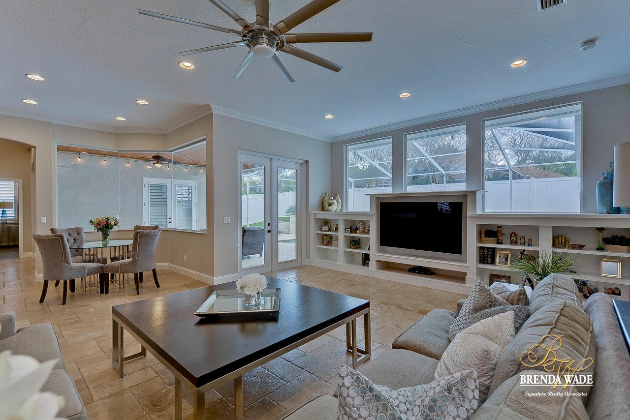 Straight out of an hgtv magazine! This stunning estate leaves nothing to be desired! Located in the sought after, golf community of bloomingdale! From the moment you arrive you will appreciate all the updates and upgrades this home has to offer! Most importantly new air conditioning with hepa filter and ultraviolet light and new tankless water heater! More updates throughout include: plantation shutters, custom closets, french doors, wood look tile flooring, all carpet, fresh interior and exterior paint, ceiling fans and light fixtures, garage doors and openers and so much more! Walking inside the front door you will immediately fall in love with the views straight back to the pool! Formal living and dining rooms welcome you in and lead into the dreamy kitchen that offers rich 42” cabinets, new stainless appliances, granite counters and bright eat-in nook with seamless glass window! Family room will be your favorite place to gather! Custom built-in’s, french door exit to the lanai and tons of natural light through the oversized picture windows! Master suite is a wonderful retreat with quiet sitting area, 3 walk-in closets with custom built-in’s and remodeled en-suite with his and her sink and shower with seamless glass! Private home office with access to the master, great for working from home or could make a wonderful nursery! Wait until you set your eyes on the oasis that awaits outside! 2019 pool and spa, travertine lanai, gorgeous wood paneled ceiling and it’s all protected by a custom roll down hurricane shutter! This one is a winner!