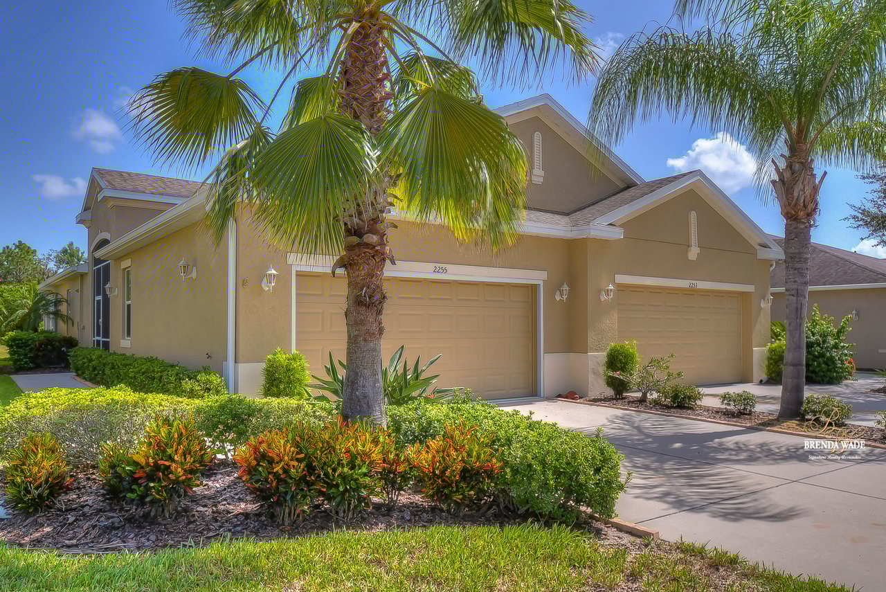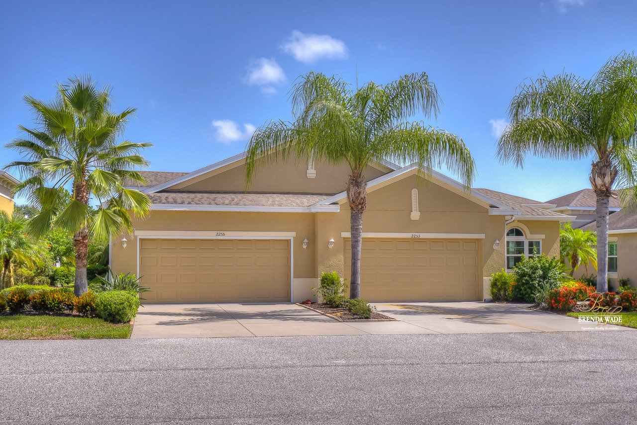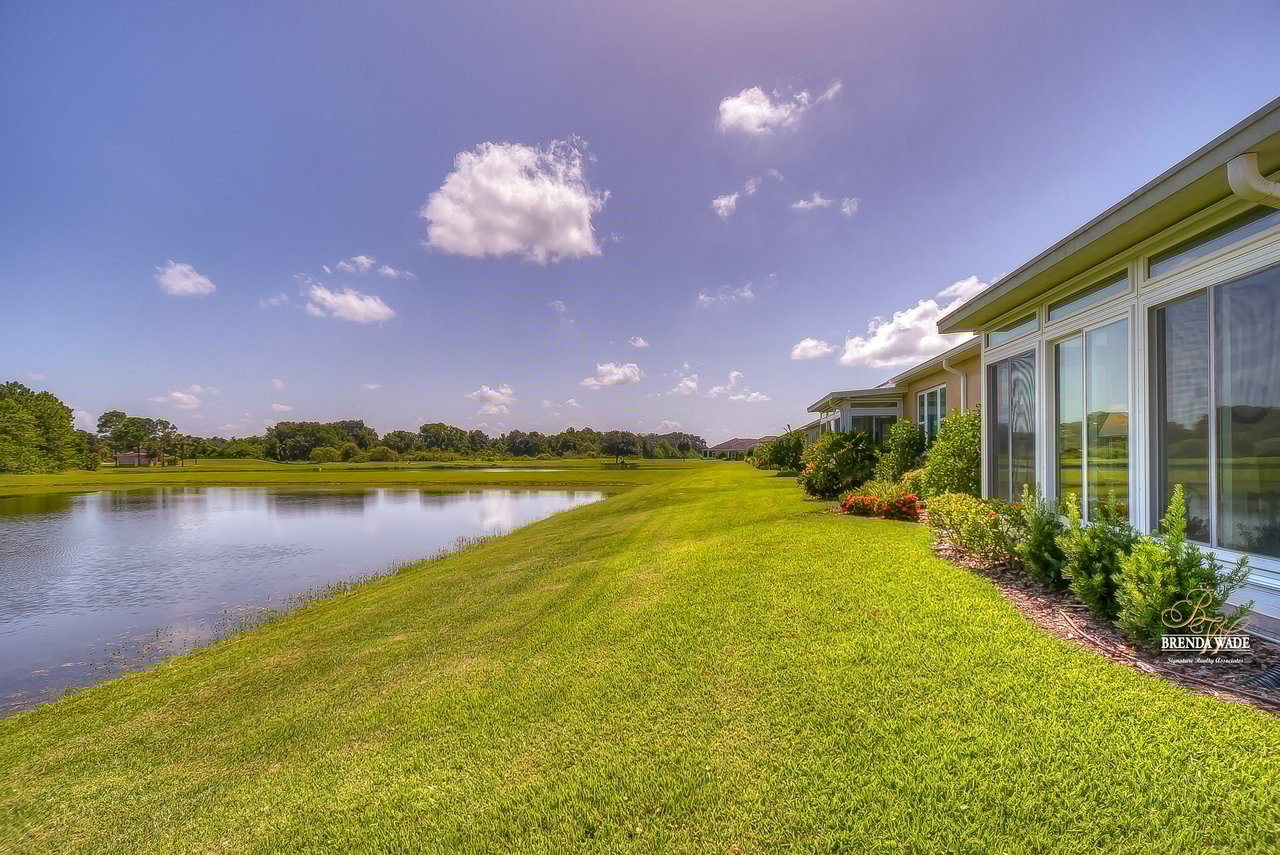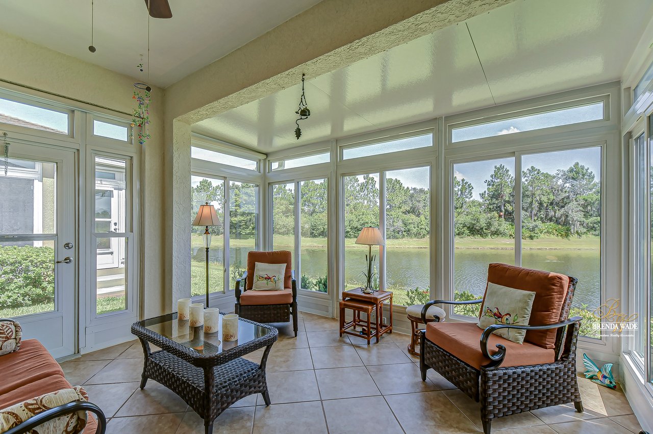 Welcome to the gated 55+ community of Kings Point! This highly desirable Minto “Mahogany” home, features 2 bedrooms, 2 bathrooms, with a spacious office that could easily be transformed into a 3rd bedroom if needed! Live every day like you're on vacation here with the best community amenities! Two private clubhouses, indoor and outdoor pools & spas, exercise rooms, stunning golf course, and many activities that will keep you entertained all year long! For your convenience, this maintenance-free community allows you to travel to restaurants, shopping, doctors, practically everywhere by golf cart! This lovely villa is located on a quiet cul-de-sac road, within walking distance to the mailboxes, and is so well maintained! You will adore the curb appeal and especially love the tranquil pond views from your backyard! You can appreciate the privacy of having no backyard neighbors! This open concept design begins from the moment you enter the home and you will be happy with the neutral paint, high ceilings, and bright natural light that flows throughout! The chef’s kitchen features granite countertops, 42-in wood cabinets with crown, under cabinet lighting, stainless appliances, mosaic tile backsplash, and center island! This home is so special to have a dining room this size, the whole family will be excited to spend the holidays here, gathered together! The great room is HUGE with tray ceiling, plantation shutters (added in 2019), and double sliders that lead to the enclosed lanai with air conditioning! This extra living space is PERFECT! Just open up the sliders and enjoy the waterfront view! This convenient floor plan places the primary suite tucked at the back of the home with a serene water view, plantation shutters, and attached bathroom with double sinks and walk-in shower, and walk-in closet! The second bedroom is on the other side of the home with a second full bath nearby! Friends and family can stay for a visit as long as they want since the split floor plan allows for the utmost privacy! There is a brilliant office with high ceilings and french doors providing a great space to work from home or transform into a third bedroom! Enjoy sipping your afternoon iced tea in your air-conditioned, enclosed lanai! With a view like this, you’ll never leave this room! This beautiful home has been lightly lived in and move-in ready today! Located in the highly desirable Kings Point, you won’t find anything better than this!