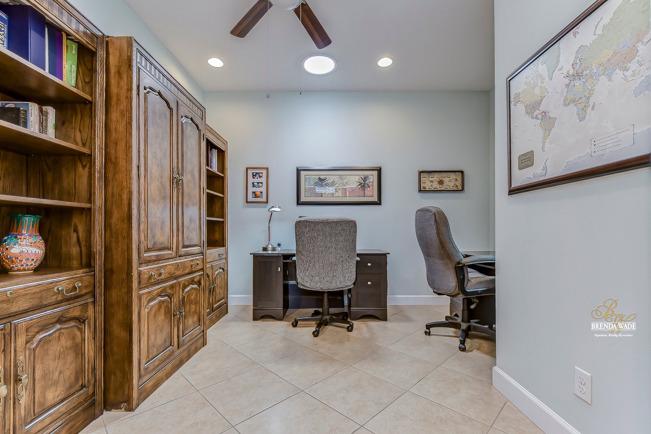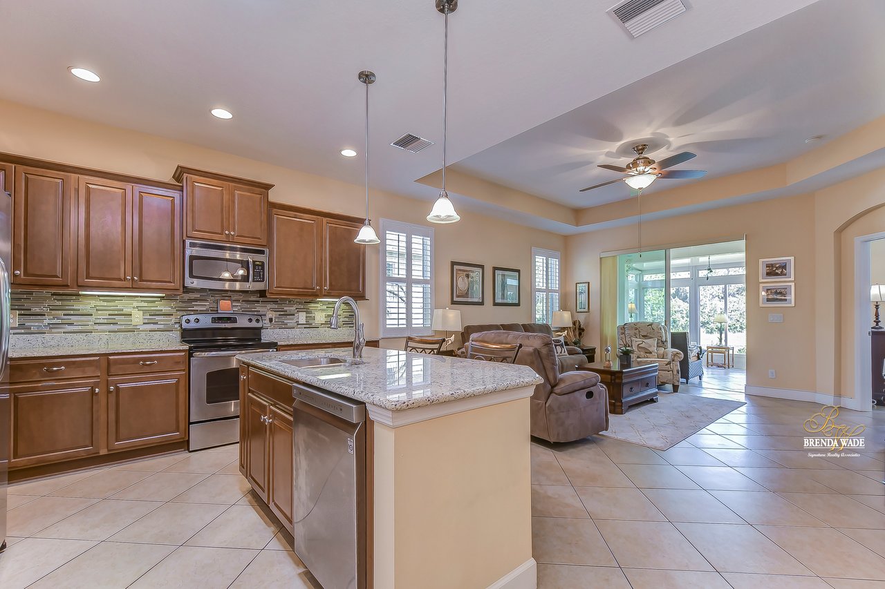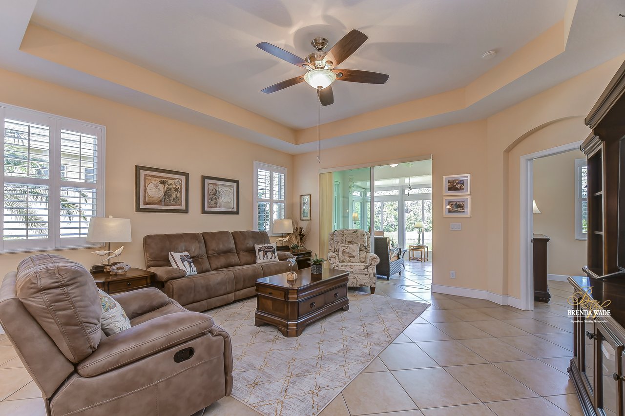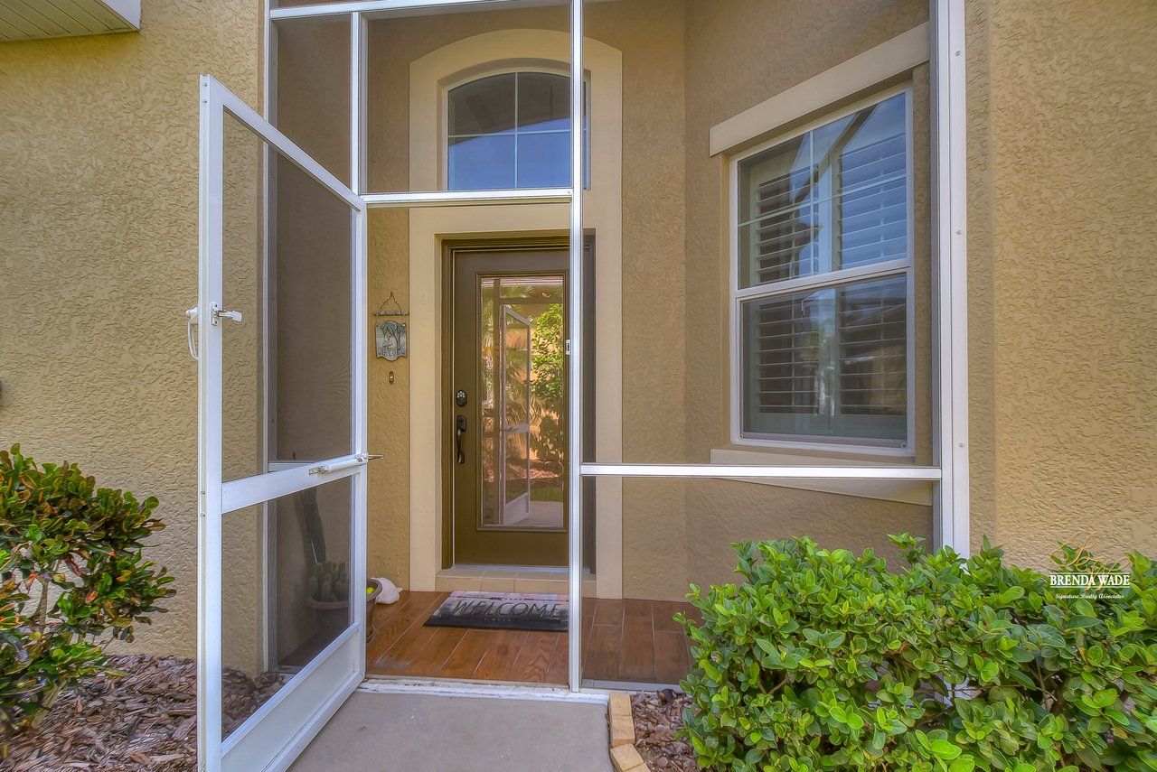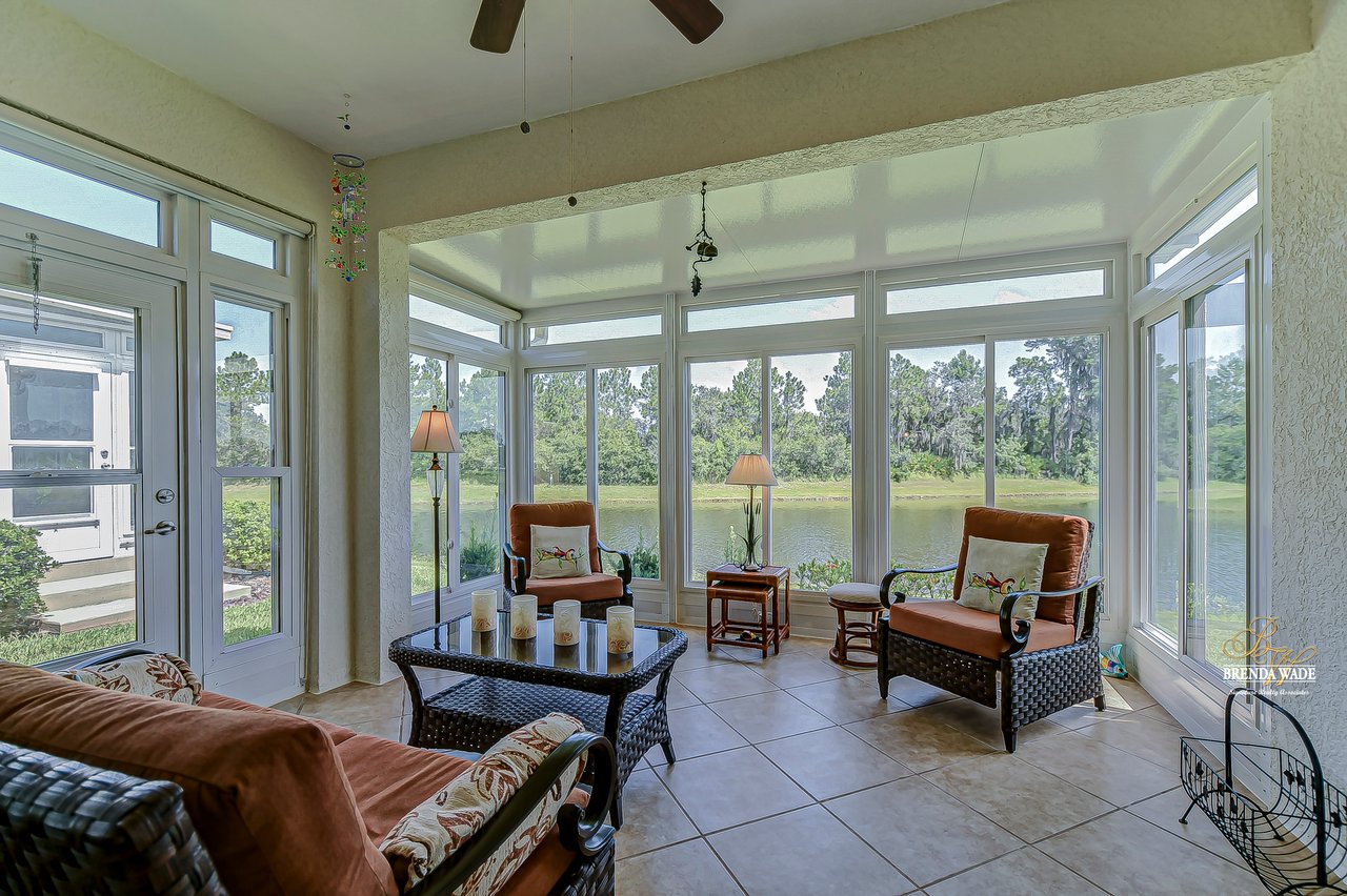 Welcome to the gated 55+ community of Kings Point! This highly desirable Minto “Mahogany” home, features 2 bedrooms, 2 bathrooms, with a spacious office that could easily be transformed into a 3rd bedroom if needed! Live every day like you're on vacation here with the best community amenities! Two private clubhouses, indoor and outdoor pools & spas, exercise rooms, stunning golf course, and many activities that will keep you entertained all year long! For your convenience, this maintenance-free community allows you to travel to restaurants, shopping, doctors, practically everywhere by golf cart! This lovely villa is located on a quiet cul-de-sac road, within walking distance to the mailboxes, and is so well maintained! You will adore the curb appeal and especially love the tranquil pond views from your backyard! You can appreciate the privacy of having no backyard neighbors! This open concept design begins from the moment you enter the home and you will be happy with the neutral paint, high ceilings, and bright natural light that flows throughout! The chef’s kitchen features granite countertops, 42-in wood cabinets with crown, under cabinet lighting, stainless appliances, mosaic tile backsplash, and center island! This home is so special to have a dining room this size, the whole family will be excited to spend the holidays here, gathered together! The great room is HUGE with tray ceiling, plantation shutters (added in 2019), and double sliders that lead to the enclosed lanai with air conditioning! This extra living space is PERFECT! Just open up the sliders and enjoy the waterfront view! This convenient floor plan places the primary suite tucked at the back of the home with a serene water view, plantation shutters, and attached bathroom with double sinks and walk-in shower, and walk-in closet! The second bedroom is on the other side of the home with a second full bath nearby! Friends and family can stay for a visit as long as they want since the split floor plan allows for the utmost privacy! There is a brilliant office with high ceilings and french doors providing a great space to work from home or transform into a third bedroom! Enjoy sipping your afternoon iced tea in your air-conditioned, enclosed lanai! With a view like this, you’ll never leave this room! This beautiful home has been lightly lived in and move-in ready today! Located in the highly desirable Kings Point, you won’t find anything better than this!