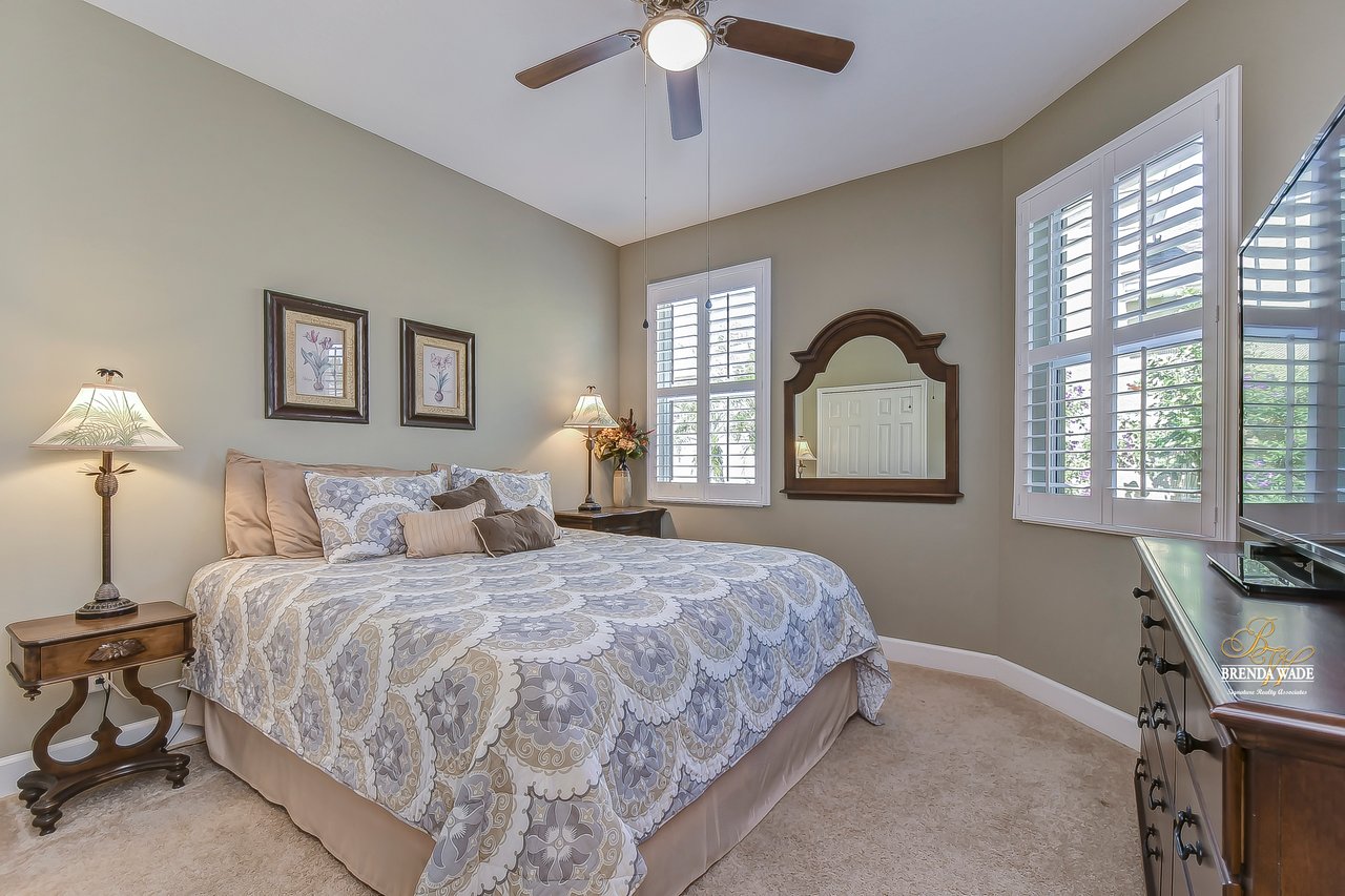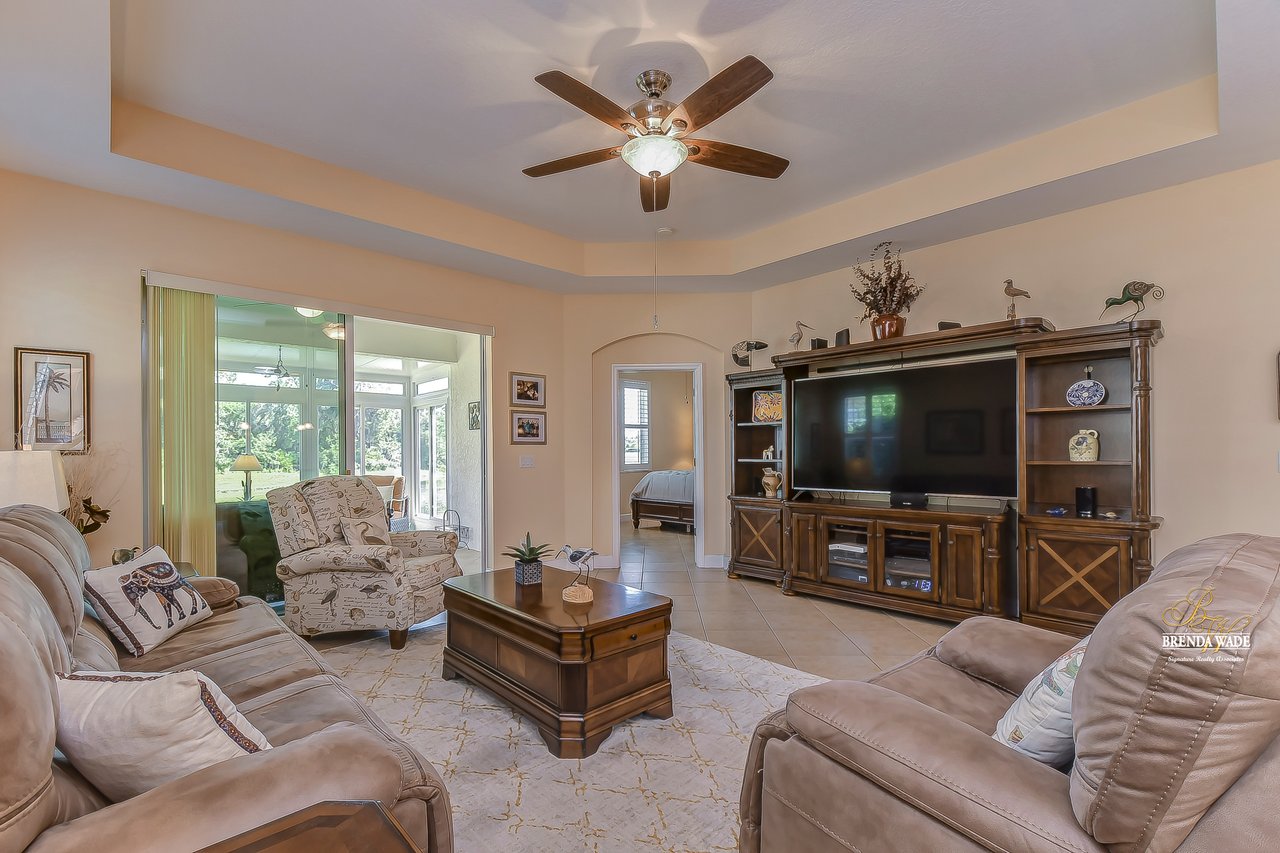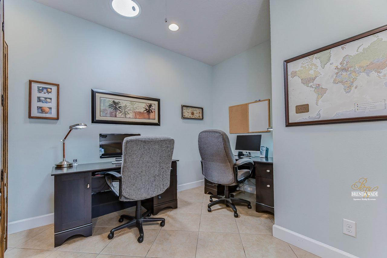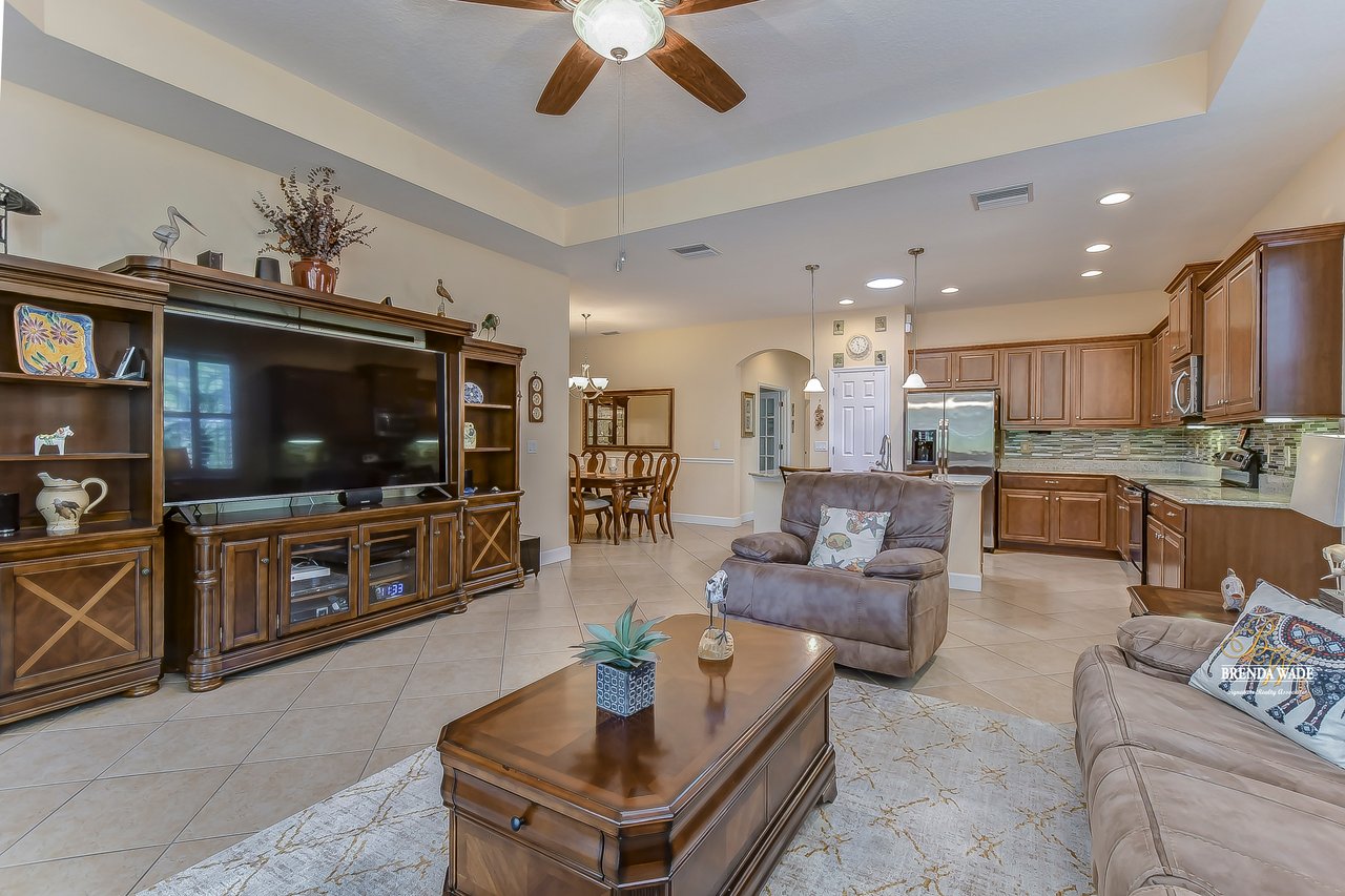 Welcome to the gated 55+ community of Kings Point! This highly desirable Minto “Mahogany” home, features 2 bedrooms, 2 bathrooms, with a spacious office that could easily be transformed into a 3rd bedroom if needed! Live every day like you're on vacation here with the best community amenities! Two private clubhouses, indoor and outdoor pools & spas, exercise rooms, stunning golf course, and many activities that will keep you entertained all year long! For your convenience, this maintenance-free community allows you to travel to restaurants, shopping, doctors, practically everywhere by golf cart! This lovely villa is located on a quiet cul-de-sac road, within walking distance to the mailboxes, and is so well maintained! You will adore the curb appeal and especially love the tranquil pond views from your backyard! You can appreciate the privacy of having no backyard neighbors! This open concept design begins from the moment you enter the home and you will be happy with the neutral paint, high ceilings, and bright natural light that flows throughout! The chef’s kitchen features granite countertops, 42-in wood cabinets with crown, under cabinet lighting, stainless appliances, mosaic tile backsplash, and center island! This home is so special to have a dining room this size, the whole family will be excited to spend the holidays here, gathered together! The great room is HUGE with tray ceiling, plantation shutters (added in 2019), and double sliders that lead to the enclosed lanai with air conditioning! This extra living space is PERFECT! Just open up the sliders and enjoy the waterfront view! This convenient floor plan places the primary suite tucked at the back of the home with a serene water view, plantation shutters, and attached bathroom with double sinks and walk-in shower, and walk-in closet! The second bedroom is on the other side of the home with a second full bath nearby! Friends and family can stay for a visit as long as they want since the split floor plan allows for the utmost privacy! There is a brilliant office with high ceilings and french doors providing a great space to work from home or transform into a third bedroom! Enjoy sipping your afternoon iced tea in your air-conditioned, enclosed lanai! With a view like this, you’ll never leave this room! This beautiful home has been lightly lived in and move-in ready today! Located in the highly desirable Kings Point, you won’t find anything better than this!