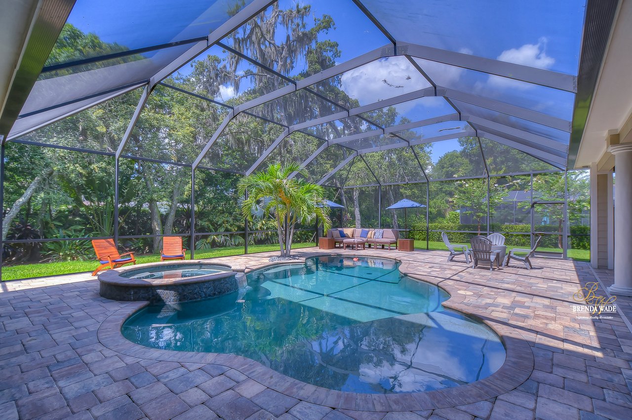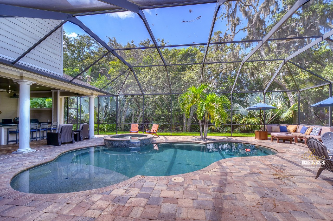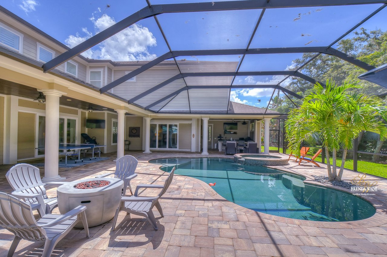 ABSOLUTELY STUNNING estate located in the exclusive, gated community of Dovewood Estates! With just 11 homes on this cul-de-sac road, you can enjoy the privacy that this enclave provides! This .49-acre lot offers an extended pavered driveway with stacked stone accents, 3 car individual bay side entry garage, welcoming front porch with pillars, and well-manicured landscaping! From the moment you step inside you will instantly feel like you’re walking into an HGTV magazine! This dream home is dripping in upgrades, Pottery Barn décor, and high-end Somerset maple hardwood flooring throughout the entire house! The formal living room is at the front of the house with soaring ceilings, built-in shelving, triple pocket sliders, and an open design into the kitchen and dining room! There is a gorgeous wet bar in the dining room that opens up to this luxurious kitchen! This DREAM kitchen consists of GE Monogram built-in appliances, granite countertops, 42-in cabinets topped with crown, uppers, and under-cabinet lighting! There is also an oversized center island with seating, pot filler, and mosaic tile backsplash! Continue the grand tour into the family room with a fireplace surrounded by stone accents, built-in cabinets and shelving, and pocket sliders leading to the pool! There is a half bathroom off the family room, great for guests! Check out the cozy home office behind sliding barn doors so you can have a dedicated workspace! The owners' retreat is secluded on the first floor featuring a tray ceiling with crown, private pool access, dual walk-in closets, and a spa-like en-suite with a stand-alone soaking tub, separate vanities with cabinets, and large walk-through shower with two shower heads! Head upstairs and you will adore having a spacious bonus loft with an accent wall so you can keep the kids' clutter away from the living areas on the first floor! Three additional bedrooms all have nice-sized closets as well as their own attached bathroom with walk-in showers! If this all wasn’t enough as it is… check out the backyard oasis! Inside the screened lanai is a heated pool and spa with PebbleTec and remote-control app so you can get it heated up on your way home from work! There is an outdoor bar and kitchen so you can entertain outdoors with ease! Your new home will be the favorite place to spend summer days grilling out while the kids are splashing in the pool! There is a 22kw backup Guardian generator installed LESS THAN A YEAR AGO! For additional assurance, there is even a safe room hooked up to the alarm system! This home is a GEM and you will not find anything like it! Central to the best shopping and dining and quick access to major highways, you’ve just hit the jackpot with this one! Don’t miss your opportunity, schedule a showing today!