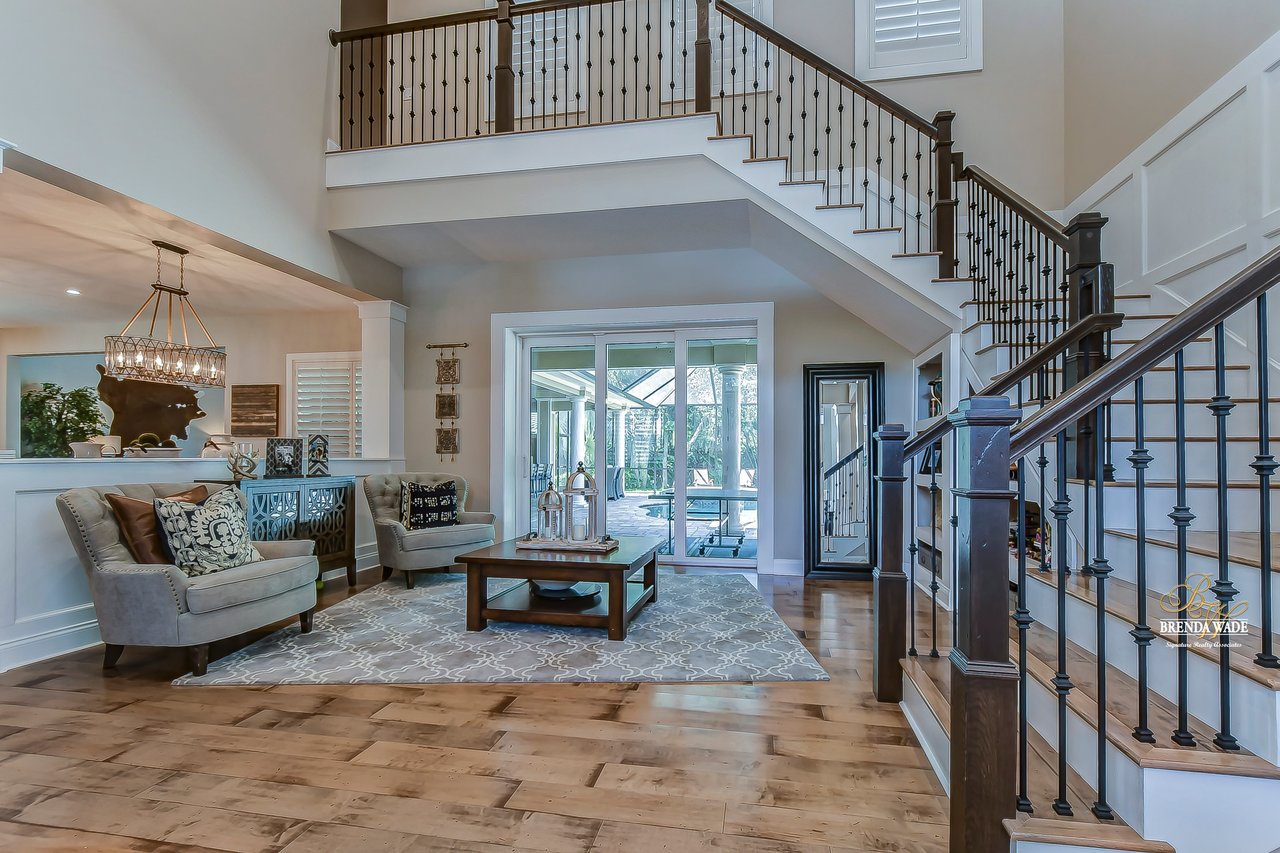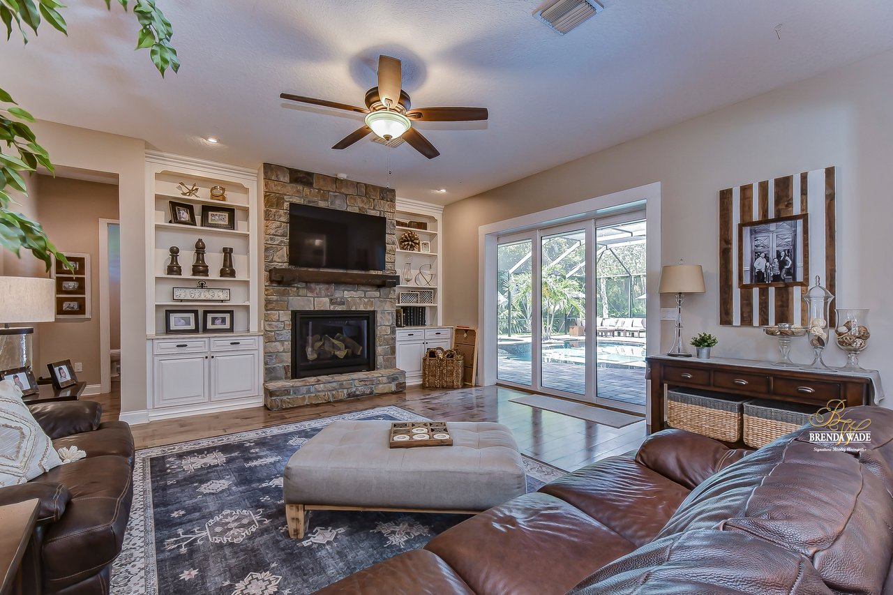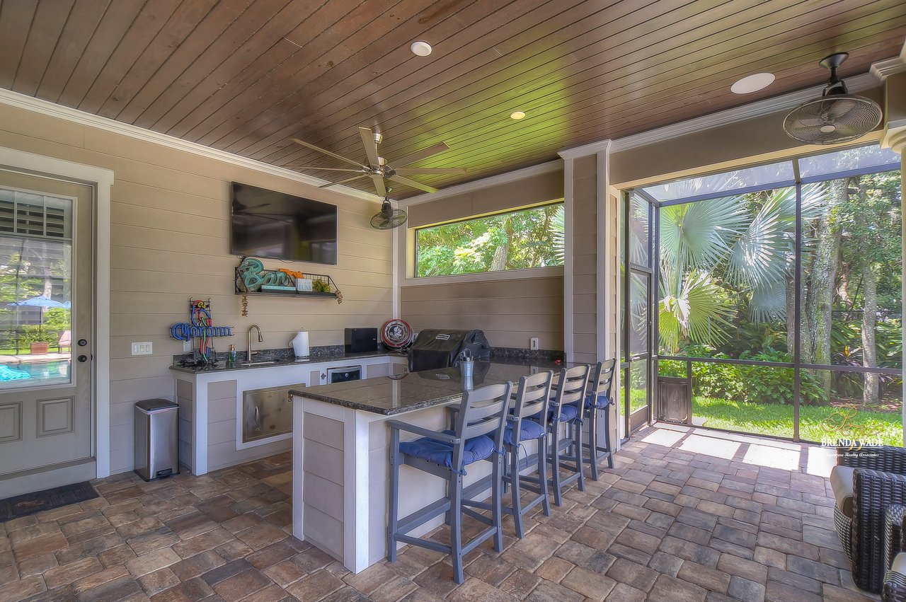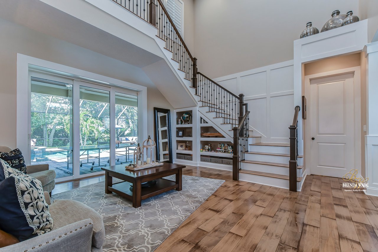 ABSOLUTELY STUNNING estate located in the exclusive, gated community of Dovewood Estates! With just 11 homes on this cul-de-sac road, you can enjoy the privacy that this enclave provides! This .49-acre lot offers an extended pavered driveway with stacked stone accents, 3 car individual bay side entry garage, welcoming front porch with pillars, and well-manicured landscaping! From the moment you step inside you will instantly feel like you’re walking into an HGTV magazine! This dream home is dripping in upgrades, Pottery Barn décor, and high-end Somerset maple hardwood flooring throughout the entire house! The formal living room is at the front of the house with soaring ceilings, built-in shelving, triple pocket sliders, and an open design into the kitchen and dining room! There is a gorgeous wet bar in the dining room that opens up to this luxurious kitchen! This DREAM kitchen consists of GE Monogram built-in appliances, granite countertops, 42-in cabinets topped with crown, uppers, and under-cabinet lighting! There is also an oversized center island with seating, pot filler, and mosaic tile backsplash! Continue the grand tour into the family room with a fireplace surrounded by stone accents, built-in cabinets and shelving, and pocket sliders leading to the pool! There is a half bathroom off the family room, great for guests! Check out the cozy home office behind sliding barn doors so you can have a dedicated workspace! The owners' retreat is secluded on the first floor featuring a tray ceiling with crown, private pool access, dual walk-in closets, and a spa-like en-suite with a stand-alone soaking tub, separate vanities with cabinets, and large walk-through shower with two shower heads! Head upstairs and you will adore having a spacious bonus loft with an accent wall so you can keep the kids' clutter away from the living areas on the first floor! Three additional bedrooms all have nice-sized closets as well as their own attached bathroom with walk-in showers! If this all wasn’t enough as it is… check out the backyard oasis! Inside the screened lanai is a heated pool and spa with PebbleTec and remote-control app so you can get it heated up on your way home from work! There is an outdoor bar and kitchen so you can entertain outdoors with ease! Your new home will be the favorite place to spend summer days grilling out while the kids are splashing in the pool! There is a 22kw backup Guardian generator installed LESS THAN A YEAR AGO! For additional assurance, there is even a safe room hooked up to the alarm system! This home is a GEM and you will not find anything like it! Central to the best shopping and dining and quick access to major highways, you’ve just hit the jackpot with this one! Don’t miss your opportunity, schedule a showing today!