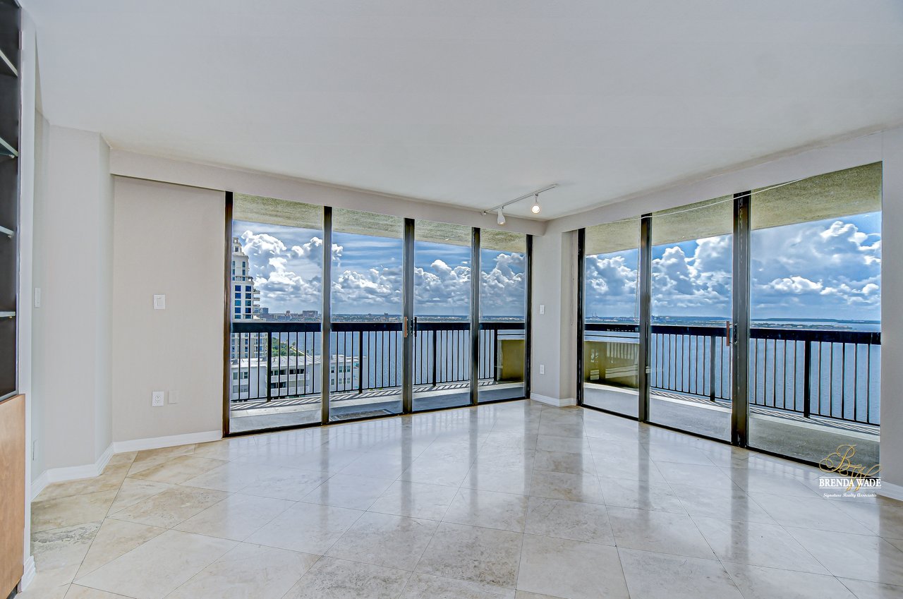 Welcome to life along Tampa's most celebrated address -- Bayshore Boulevard, where endless water views and vibrant city living come together. Perched on the 19th floor of The Atrium, this stunning two-bedroom, two-bath residence offers front-row seats to breathtaking sunrises, sparkling bay waters, and some of Tampa's most iconic events -- including the world-famous Gasparilla Parade, all from the comfort of your private, wrap-around balcony. This light-filled home blends classic character with modern touches, featuring fresh interior paint (2025) and plush new carpeting. Plantation shutters throughout add timeless charm, while the spacious dining area welcomes you with natural stone tile flooring that flows seamlessly into the well-appointed kitchen. Here, sleek black granite countertops, stainless steel built-in appliances, a tile backsplash, pull-out drawers, and a cabinet pantry offer both style and functionality -- all with bay views to inspire your inner chef. The expansive great room features custom built-ins and panoramic water views across two walls, thanks to dual sliding glass doors -- including a dramatic wall of sliders that opens from the center, blending the indoors with Tampa's breathtaking outdoors. The generous primary suite is privately positioned at the back of the home, with balcony access, plantation shutter sliders, a large walk-in closet with built-ins, and a spacious en-suite bath with a walk-in shower. The well-sized second bedroom and additional full bath provide comfort for guests or flexible living space, while the dedicated laundry room adds everyday convenience. Life at The Atrium means more than just a beautiful home -- it's an exclusive waterfront lifestyle. Enjoy 24/7 secured building access, two assigned parking spaces, and resort-style amenities including a bayside pool and spa with endless views, a fully equipped fitness center, tennis courts, and a resident lounge with a catering kitchen -- perfect for entertaining. The soaring, tropical lobby with a cascading fountain sets the tone for the upscale experience The Atrium is known for. This prime location offers unbeatable walkability and easy access to everything South Tampa has to offer -- minutes from vibrant Hyde Park Village, Downtown Tampa, the Riverwalk, Amalie Arena, and top-rated dining and shopping. Whether you're watching Gasparilla from your balcony, enjoying scenic walks along the boulevard, or joining the energy of Tampa's thriving entertainment and waterfront districts, this is truly Bayshore living at its finest.