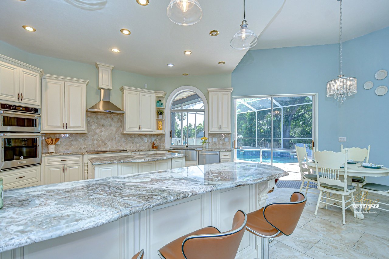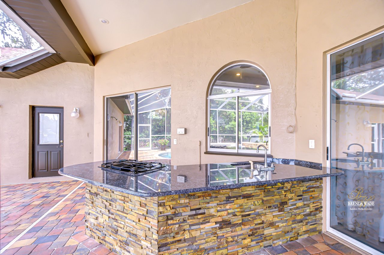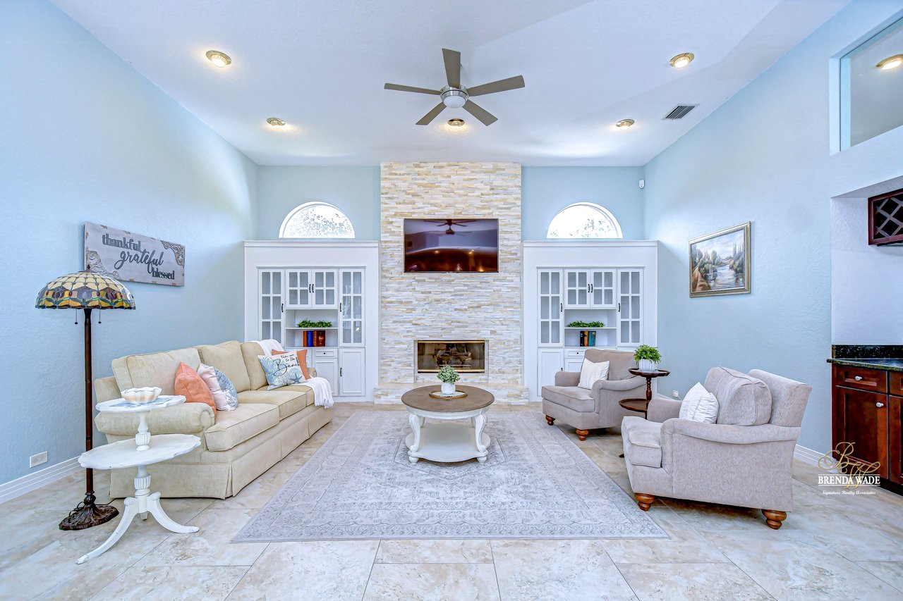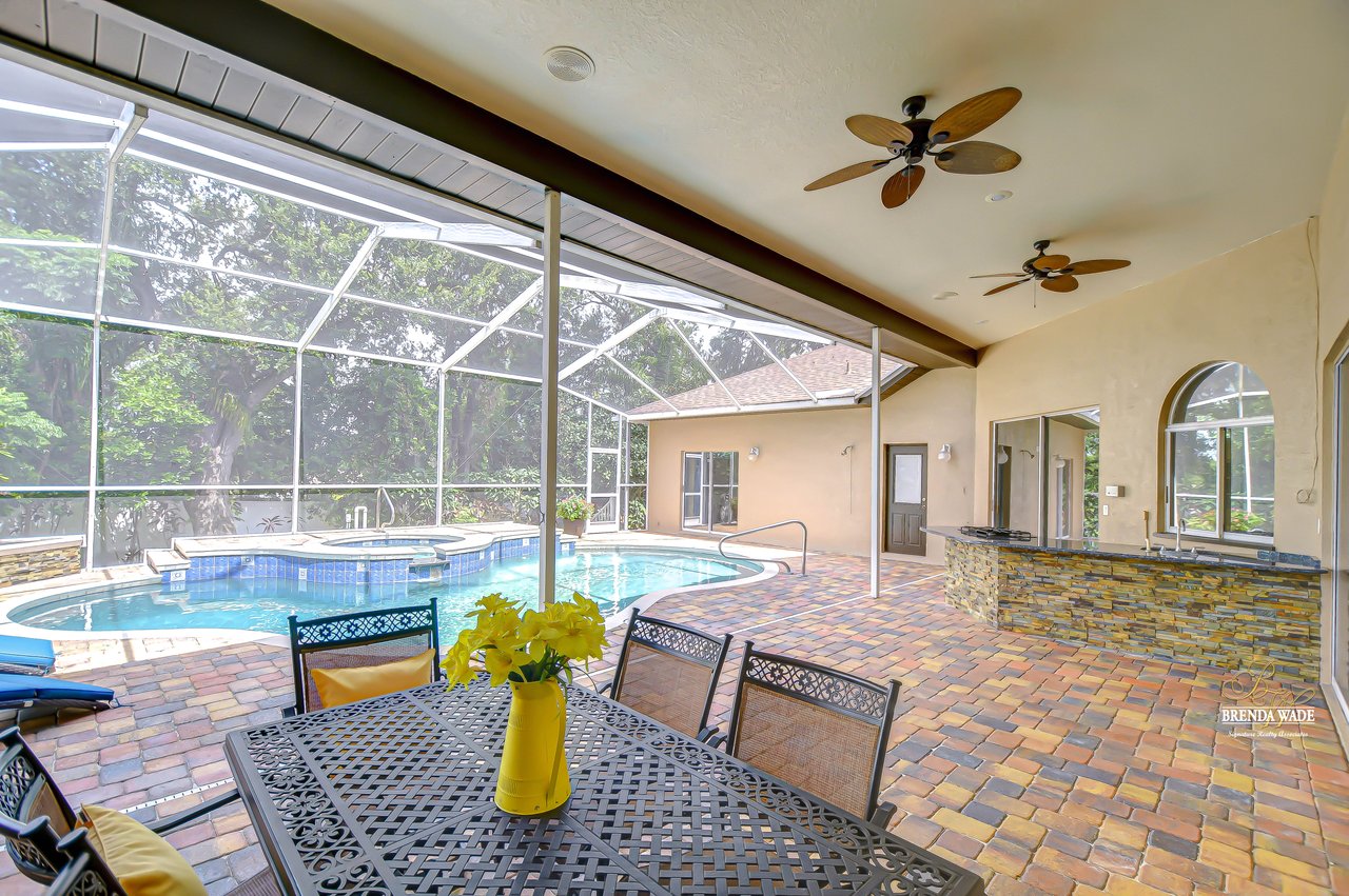 Welcome to a home where modern luxury meets thoughtful craftsmanship. This meticulously remodeled 5-bedroom, 3.5-bath custom residence is perfectly positioned in the quiet, tree-lined community of Oak Landing, celebrated for its mature landscaping, charming streets, and unbeatable location -- with convenient access to both Tampa and Orlando. Plus, enjoy the freedom of an optional HOA and no CDD fees. Every inch of this home has been upgraded, blending timeless design, top-quality finishes, and smart functionality to create the ideal living experience. Notable improvements include a new roof in 2018, new AC, water heater, and whole-home water softener system (2018), stunning 24x24 porcelain/travertine stone tile flooring added in 2018, LED motion-sensor security lighting (2025), and fresh exterior paint completed in 2024. Extensive professional landscaping enhances the lush, tropical curb appeal, featuring a beautiful brick paver front walkway that welcomes you to elegant double leaded glass front doors. Inside, soaring ceilings, abundant natural light, and picturesque views of the pool create a bright, inviting atmosphere. The formal living and dining rooms are ideal for gatherings, seamlessly connected to the heart of the home -- the fully remodeled chef's kitchen. The kitchen, updated in 2018, features rich hardwood cabinetry with pull-out drawers, elegant tile backsplash, rare Fantasy Brown granite countertops, prep island, bar seating, and sleek stainless-steel appliances, including a built-in wall oven -- a perfect space for entertaining and everyday enjoyment. The spacious family room offers warmth and functionality with its stunning stacked marble fireplace, custom built-ins, and convenient wet bar, all flowing effortlessly to the outdoor living spaces. The private primary suite is tucked away on its own wing, offering French door entry, updated engineered hardwood floors, direct lanai access, and a spa-like, remodeled bath complete with a cast iron clawfoot tub and oversized dual-shower head walk-in shower. The flexible split-bedroom layout includes a guest suite near the front of the home, ideal as an office, hobby space, or private guest quarters. Three additional bedrooms are located on a separate wing -- ideal for multi-generational living -- with one bath offering direct pool access and another featuring an ADA-accessible roll-in shower. Throughout the home, volume ceilings, upgraded finishes, and expansive windows create a bright, open feel. Multiple sliding doors connect the interior to your private outdoor retreat, featuring a saltwater pool, outdoor kitchen with sink, propane grill, and bar seating, all protected by a rescreened lanai (2025). An additional storage room on the pool deck provides practical space for pool equipment and supplies. The fully fenced backyard offers peace of mind for pets and little ones, while new sod, mature trees, vibrant plants, and extensive tropical landscaping create a private paradise perfect for relaxing or entertaining. This home has been transformed from top to bottom, offering modern upgrades and exceptional living in one of Brandon's most desirable neighborhoods. Don't miss your opportunity to experience this remarkable, completely remodeled home -- schedule your private tour today!