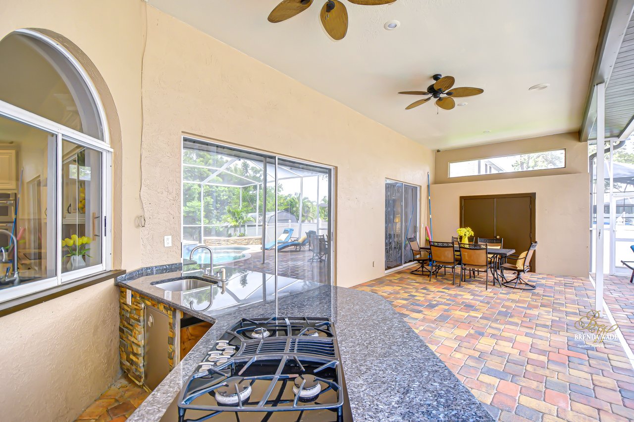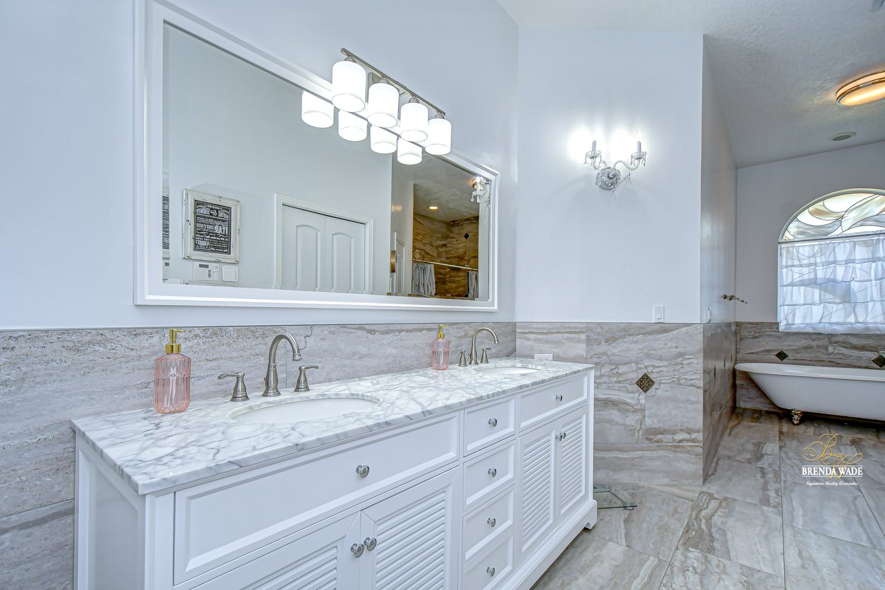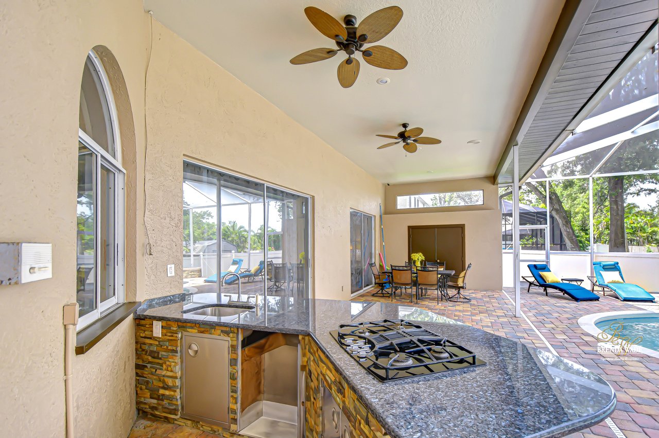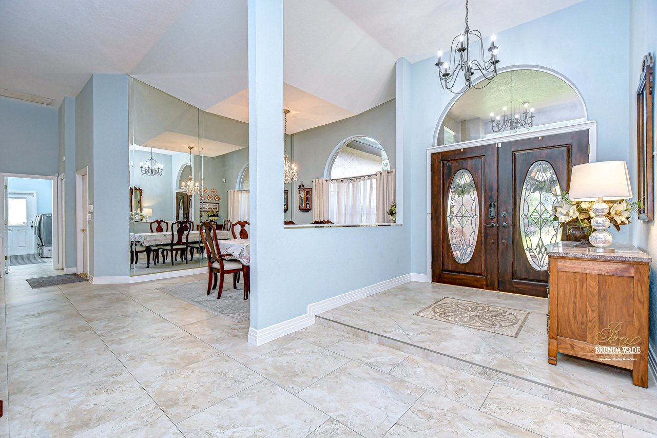 Welcome to a home where modern luxury meets thoughtful craftsmanship. This meticulously remodeled 5-bedroom, 3.5-bath custom residence is perfectly positioned in the quiet, tree-lined community of Oak Landing, celebrated for its mature landscaping, charming streets, and unbeatable location -- with convenient access to both Tampa and Orlando. Plus, enjoy the freedom of an optional HOA and no CDD fees. Every inch of this home has been upgraded, blending timeless design, top-quality finishes, and smart functionality to create the ideal living experience. Notable improvements include a new roof in 2018, new AC, water heater, and whole-home water softener system (2018), stunning 24x24 porcelain/travertine stone tile flooring added in 2018, LED motion-sensor security lighting (2025), and fresh exterior paint completed in 2024. Extensive professional landscaping enhances the lush, tropical curb appeal, featuring a beautiful brick paver front walkway that welcomes you to elegant double leaded glass front doors. Inside, soaring ceilings, abundant natural light, and picturesque views of the pool create a bright, inviting atmosphere. The formal living and dining rooms are ideal for gatherings, seamlessly connected to the heart of the home -- the fully remodeled chef's kitchen. The kitchen, updated in 2018, features rich hardwood cabinetry with pull-out drawers, elegant tile backsplash, rare Fantasy Brown granite countertops, prep island, bar seating, and sleek stainless-steel appliances, including a built-in wall oven -- a perfect space for entertaining and everyday enjoyment. The spacious family room offers warmth and functionality with its stunning stacked marble fireplace, custom built-ins, and convenient wet bar, all flowing effortlessly to the outdoor living spaces. The private primary suite is tucked away on its own wing, offering French door entry, updated engineered hardwood floors, direct lanai access, and a spa-like, remodeled bath complete with a cast iron clawfoot tub and oversized dual-shower head walk-in shower. The flexible split-bedroom layout includes a guest suite near the front of the home, ideal as an office, hobby space, or private guest quarters. Three additional bedrooms are located on a separate wing -- ideal for multi-generational living -- with one bath offering direct pool access and another featuring an ADA-accessible roll-in shower. Throughout the home, volume ceilings, upgraded finishes, and expansive windows create a bright, open feel. Multiple sliding doors connect the interior to your private outdoor retreat, featuring a saltwater pool, outdoor kitchen with sink, propane grill, and bar seating, all protected by a rescreened lanai (2025). An additional storage room on the pool deck provides practical space for pool equipment and supplies. The fully fenced backyard offers peace of mind for pets and little ones, while new sod, mature trees, vibrant plants, and extensive tropical landscaping create a private paradise perfect for relaxing or entertaining. This home has been transformed from top to bottom, offering modern upgrades and exceptional living in one of Brandon's most desirable neighborhoods. Don't miss your opportunity to experience this remarkable, completely remodeled home -- schedule your private tour today!