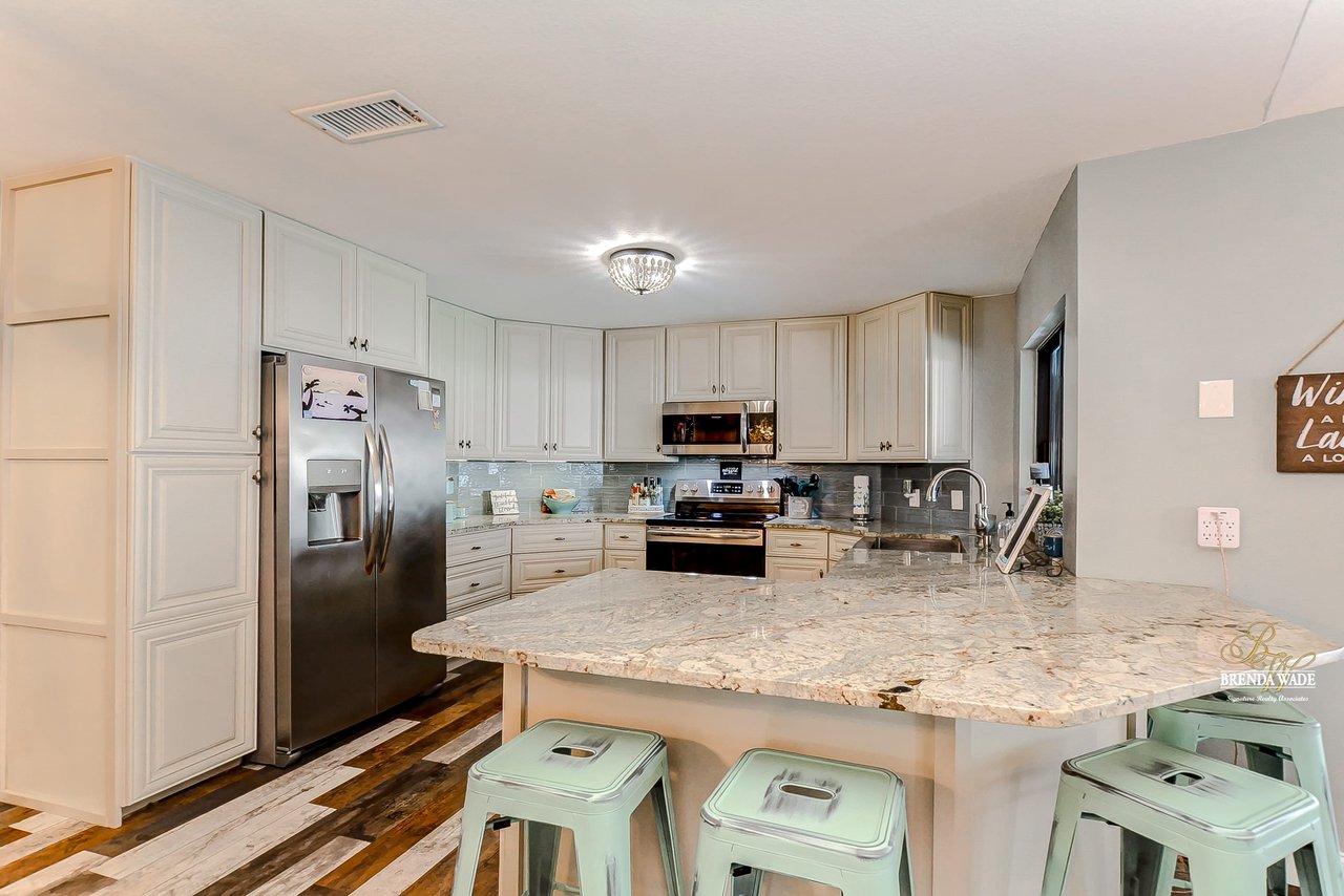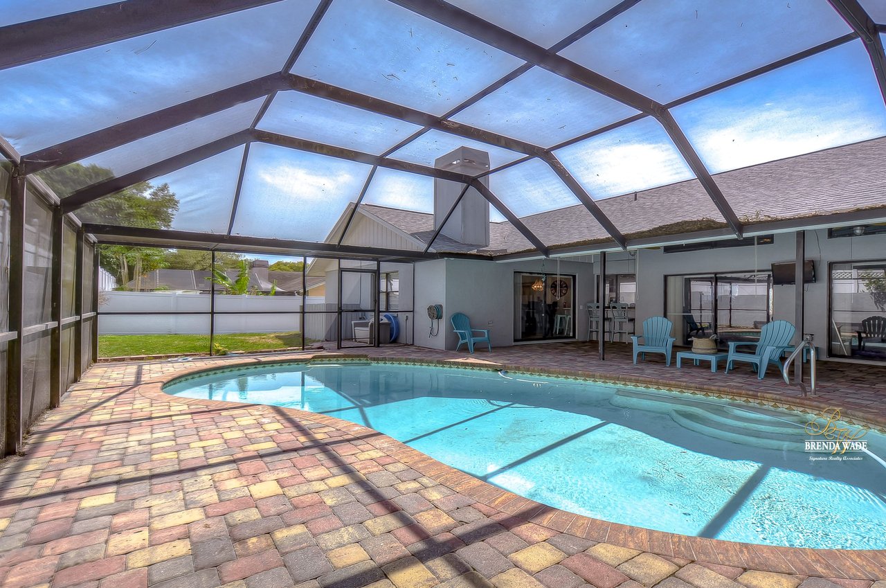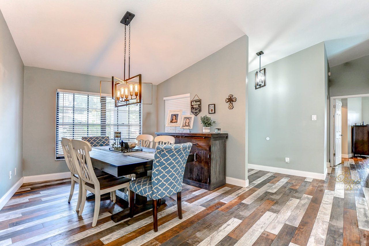 Your home search stops here! The Buckhorn golf community is well established and is in a GREAT location! The pavered walkway and front porch welcomes guests into your magnificent 4-bedroom, 3 1/2 -bathroom home! The interior flaunts a remarkable, premium wood-based water-resistant laminate throughout the entire home, so cleaning will be a breeze! The formal dining room with upgraded lighting flows into the formal living room with vaulted ceilings, and sliders leading to the lanai and sparkling pool! Move into the heart of the home, the WONDERFUL kitchen! This room boasts stainless appliances, 42-in cabinets, granite countertops, soft close drawers, subway tile backsplash, and gorgeous lighting! The kitchen and dinette feature exquisite lighting and the open floor plan flows right into the family room! With vaulted ceilings, wood-burning fireplace, and sliding doors, this room will lead to TONS of family memories! A luxurious master suite offers vaulted ceilings, walk-in closet, private exit to the lanai, and a showstopping en-suite with his and her sinks with granite counters, makeup vanity, soaking tub, and spa-like walk-in shower! You will find three additional spacious bedrooms sharing a second full bath! You will also find a convenient half bath centrally located for family & guests so you can entertain with ease! Head to the screened and pavered lanai with a large covered area to relax and a large pool to take a dip on a sunny day! You will find your own outdoor full bathroom to make pool days a breeze! The backyard is fully fenced so kids and pets will be able to play freely as the current owners have upgraded the vinyl fence in 2020! There truly is nothing is left to be desired; you have great schools, a great neighborhood, and a great home!