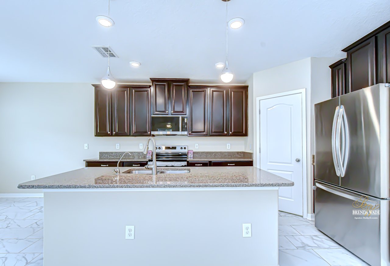 Discover the perfect blend of privacy and convenience in the gated Brandon Pointe community, where this upgraded Lennar-built home enjoys a prime heart-of-Brandon location with an easy commute and close proximity to everything. The interior welcomes you with a smart, modern layout featuring upgraded tile flooring throughout the main living areas and light wood-look luxury vinyl plank flooring extending up the staircase and throughout the second level. The kitchen is designed for both function and style, showcasing granite countertops, 42" espresso cabinetry with crown molding, a large center island with bar seating, a pantry, and updated stainless appliances. The open-concept living space flows naturally to a screened lanai with tile flooring, creating an ideal indoor-outdoor setting for entertaining or unwinding. A downstairs half bath and a conveniently located main-level laundry room add everyday practicality. Upstairs, the expansive primary suite is highlighted by French doors, dual closets including a walk-in, and a private en-suite bath with dual vanities, a soaking garden tub, and a separate shower. Three additional bedrooms and a flexible loft space provide room for guests, work, or play. Major system updates include a new AC in 2021 and a newer water heater for added confidence. As part of Lennar's EcoSmart(r) collection, the home is equipped with a Voltex hybrid water heater, LP TechShield(r) radiant-barrier roof sheathing, GreenGuard Max(tm) weather wrap, and Low-E double-pane windows--designed to reduce energy costs while maximizing year-round comfort. Exterior features include a brick-paver driveway, irrigation system, and gated community security. HOA fees include full lawn care, and no CDD fee makes this home an even more attractive option. Enjoy being just minutes from Topgolf, Costco, iFLY, Total Wine, and Westfield Brandon Mall, with effortless access to I-75, the Selmon Expressway, and Downtown Tampa.