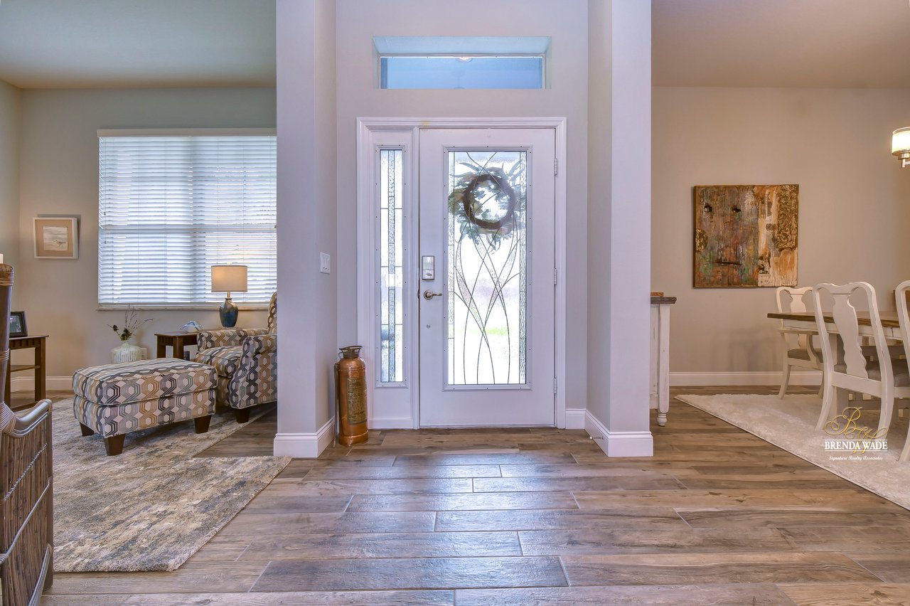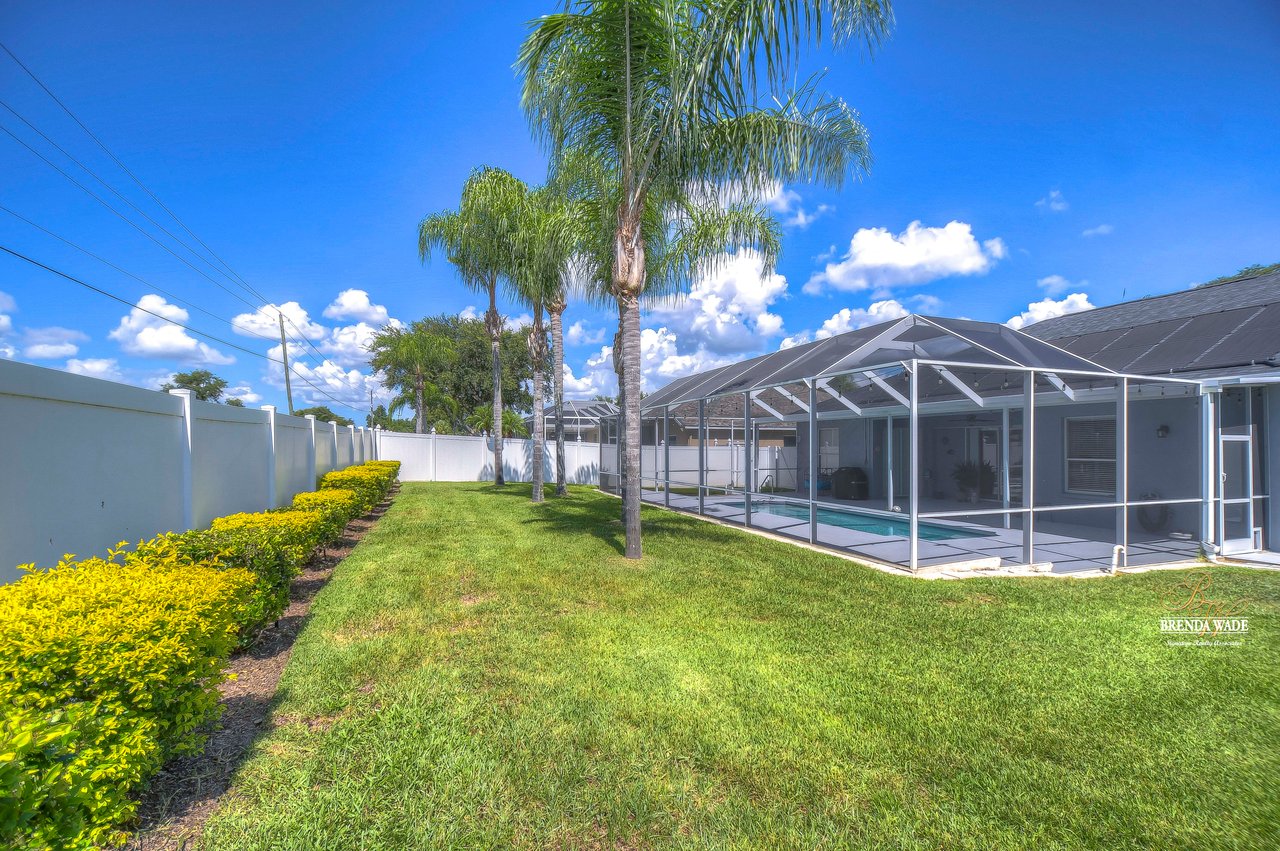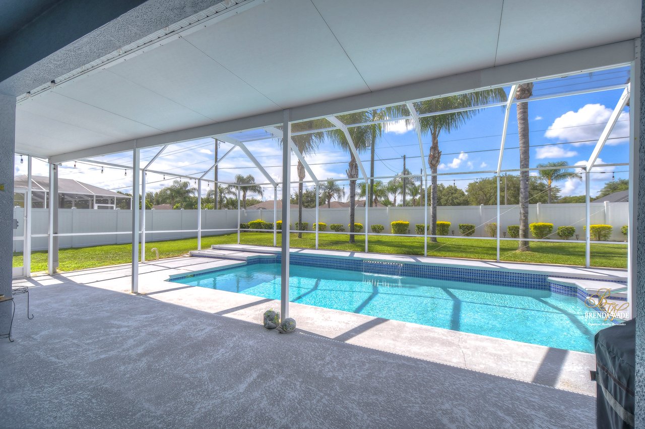 Welcome to this STUNNING completely remodeled home located in the highly desirable Duncan Groves community in the heart of Valrico. Pride of ownership shows and is sure to check all your boxes. Upon arriving the beautiful tropical landscaping will immediately catch your eye. Nothing says welcome home like the stunning entryway, featuring a decorative glass front door that bathes the space in natural light, inviting you into a world of comfort and elegance. The high ceilings, complemented by a soothing neutral paint palette and luxurious flooring throughout, ensure effortless cleaning and a sense of airy sophistication. The formal living and dining rooms are thoughtfully positioned at the front of the home, providing the perfect setting to entertain guests. As you explore further, you'll discover that the heart of this home is its beautiful kitchen, boasting 42' cabinets adorned with crown molding and custom California organizers, a large center island with convenient bar seating, upgraded granite countertops, Stainless appliances, and two spacious pantries. Adjacent to the kitchen, a sunny breakfast nook overlooks the serene backyard, creating an ideal space for relaxed, casual meals with loved ones. The kitchen flows seamlessly into the spacious family room, ensuring you're always part of the conversation, and large pocket sliders open up to the inviting lanai, effortlessly blending indoor and outdoor living. The primary suite is a true oasis, featuring private access to the lanai, his and her walk-in closets, and a beautifully remodeled en-suite bath complete with separate vanities, a soothing garden tub, and a spacious shower. Two additional spacious bedrooms, boasting generous closets share a well-appointed bath, while a fourth bedroom at the back of the home is perfect for a cozy at-home office space. For added convenience, a remodeled pool bath is also situated at the back of the home, ensuring easy access from the pool area. Speaking of which, you'll find your days blissfully spent in the oversized lanai with a solar-heated pool, providing the perfect retreat for relaxation and recreation. The covered lanai, an ideal spot for savoring your morning coffee or hosting gatherings, leads to the expansive and private backyard, enclosed by a tasteful privacy fence, ensuring you can fully enjoy your outdoor spaces. This remarkable residence offers an exquisite blend of comfort, style, and functionality, providing a sanctuary you'll be proud to call home. Schedule your showing today, this home won't last long!