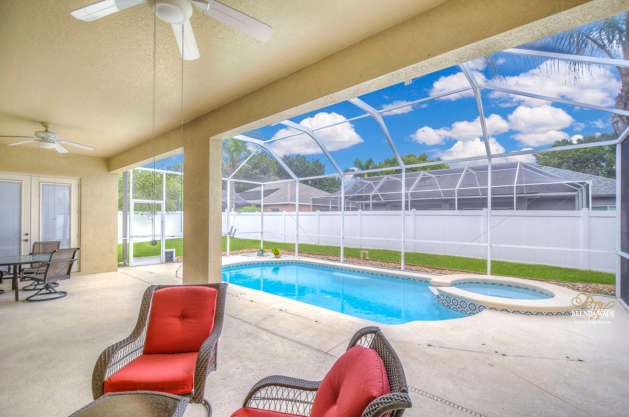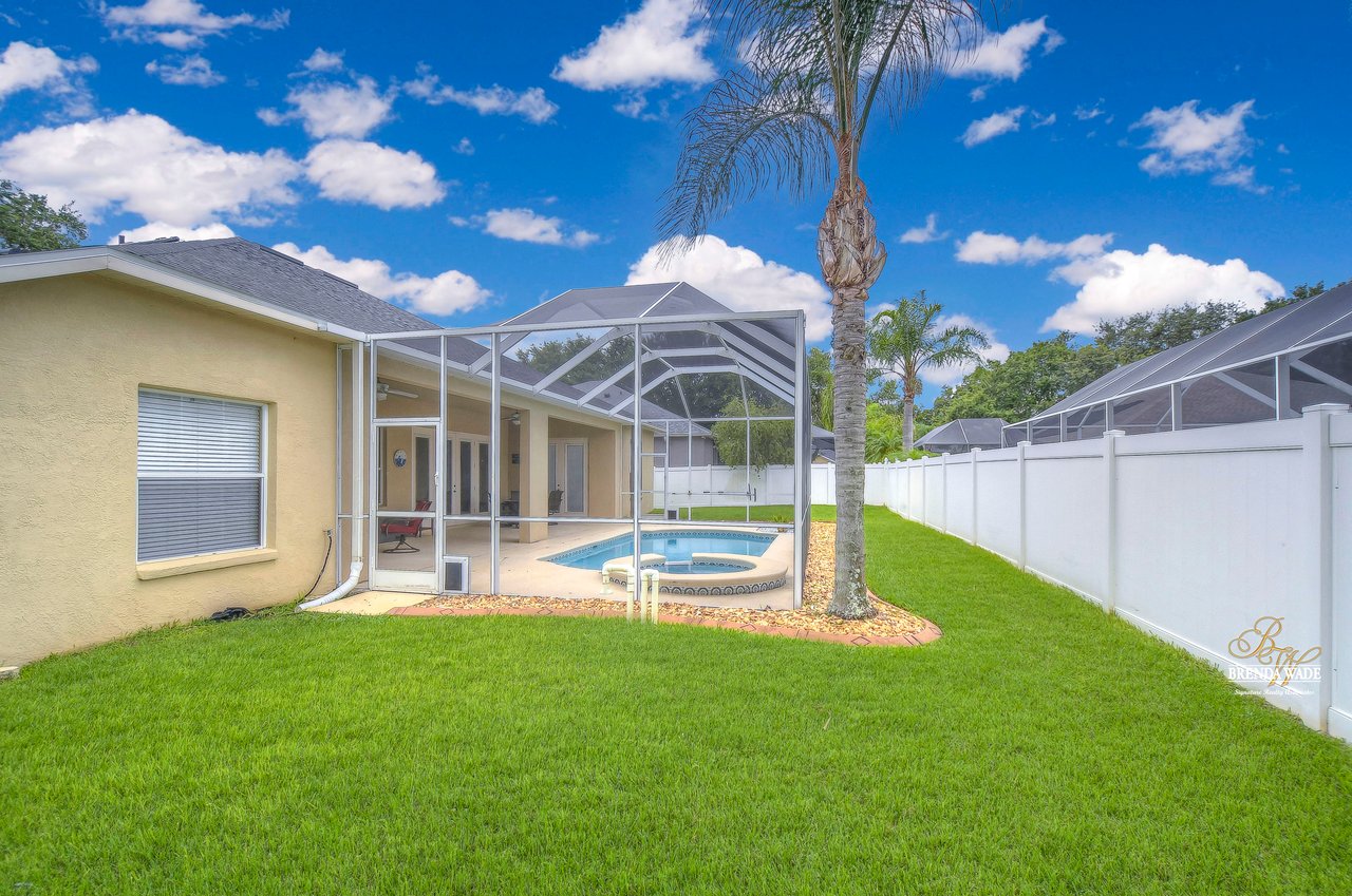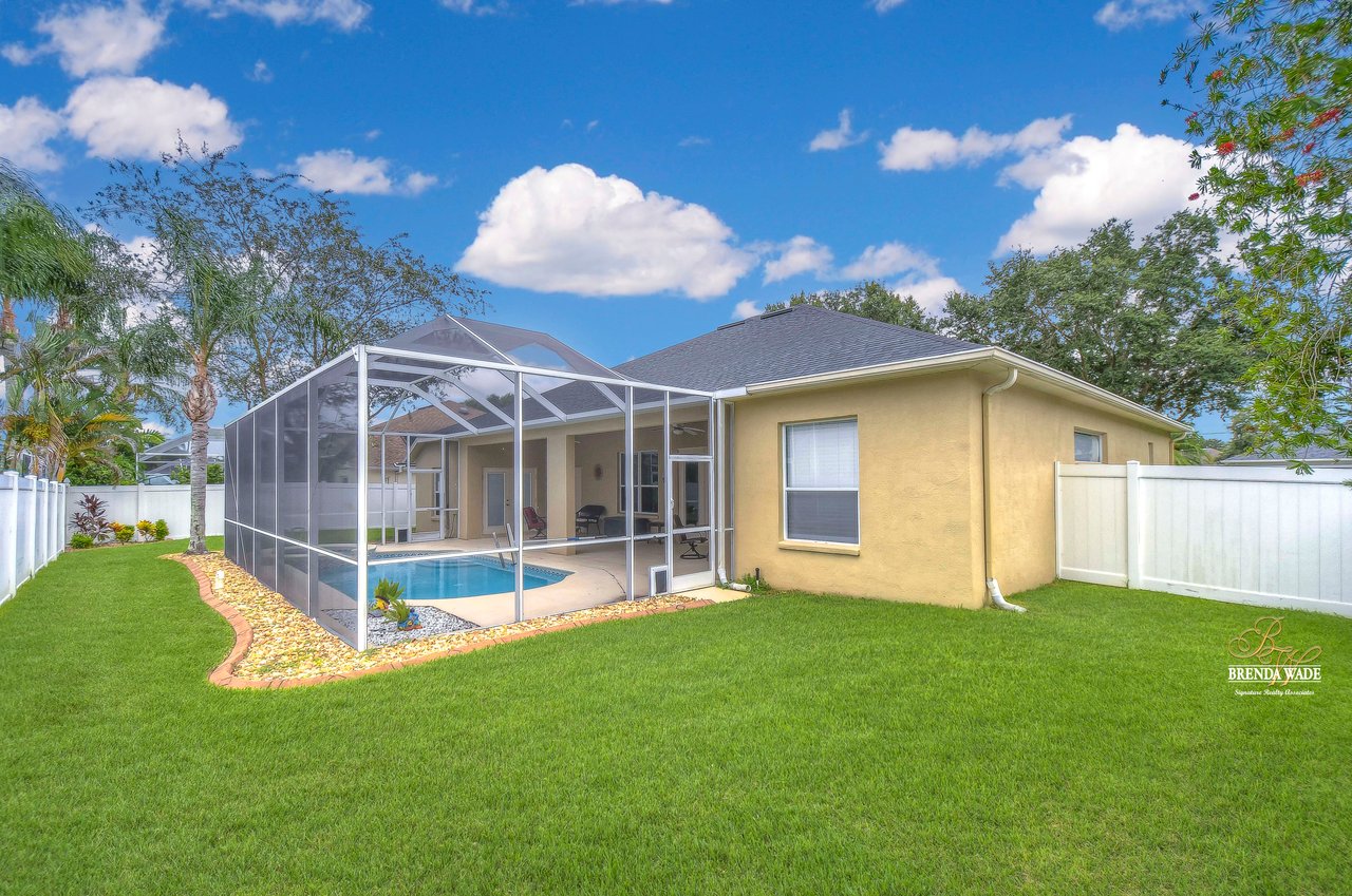 Welcome to your dream home! This exceptional home is nestled in the highly sought-after Duncan Groves Community, boasting an open-concept design that will surely captivate your heart. Prepare to be delighted by the plethora of upgrades, including a newer roof in 2020, a water heater installed in 2018, beautifully remodeled bathrooms in 2020, and a gorgeously remodeled kitchen in 2023. As you step through the stunning glass French doors, you'll be instantly enamored by the airy and luminous floor plan featuring soaring ceilings, elegant crown moulding, and accentuated graceful archways. The formal living and dining rooms, thoughtfully located at the front of the home, create the perfect ambiance for entertaining esteemed guests. The heart of this home is the stunning kitchen, which overlooks the family room, creating a seamless flow of conversation. Prepare culinary delights in this chef's haven, complete with an oversized island, ample pantry space, upgraded appliances, granite countertops, a delightful tile backsplash, and beautiful 42' resurfaced wood cabinets with charming crown detailing. Nestled in its own private wing, the primary suite awaits, boasting a comfortable sitting area, direct access to the inviting pool, a HUGE walk-in closet, and a remodeled en-suite bath with a luxurious garden tub, a walk-in shower, separate vanities, and a generously sized linen closet for all your storage needs. Two additional spacious bedrooms feature large closets and share a well-appointed bathroom, while a fourth bedroom located at the rear of the home offers privacy and convenience, equipped with its own private bath that also serves as a pool bath. The bonus room is a versatile space, ideal for a playroom, home office, crafts room, or media room, catering to the unique needs of your family. Embrace the serenity of outdoor living as you step onto the oversized lanai, the perfect oasis for leisurely afternoons or hosting summer barbecues. The pool takes center stage, exuding elegance with its tranquil waterfall, exquisite tilework, and accompanying spa. Imagine indulging in the Florida sun while lounging by the poolside, relishing in the idyllic lifestyle that awaits you. Welcome home to this exceptional property, where cherished memories are waiting to be created!