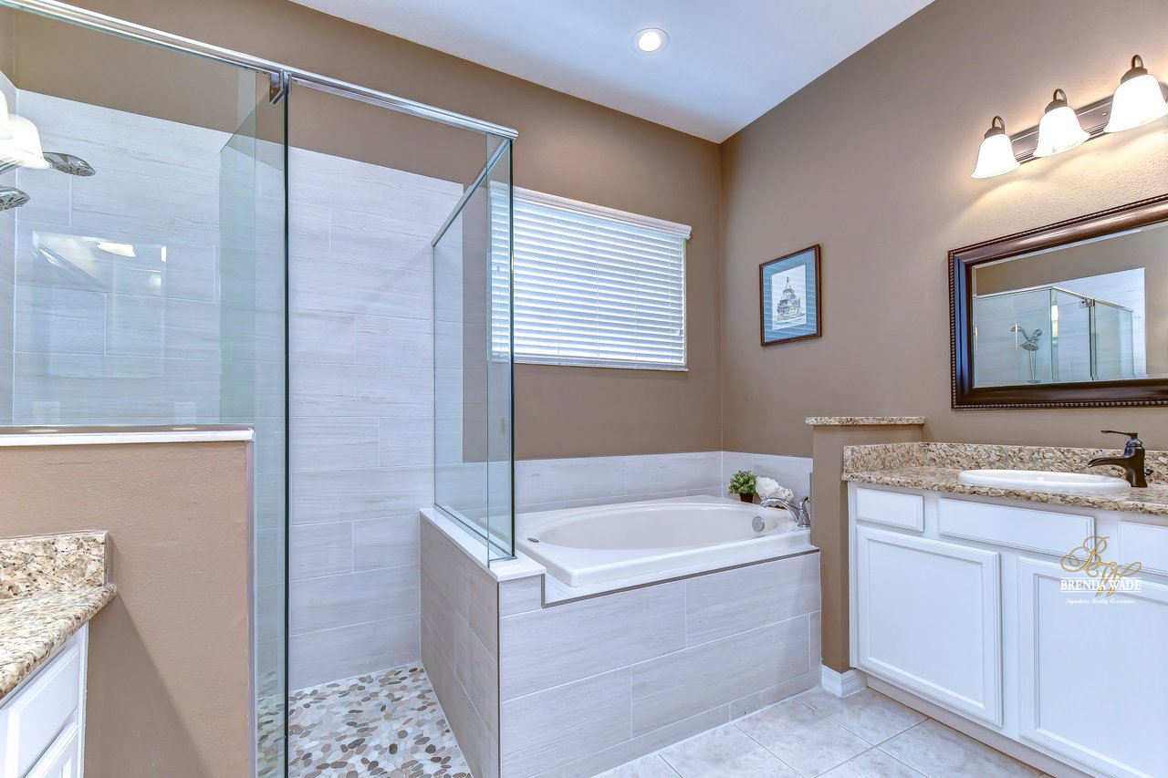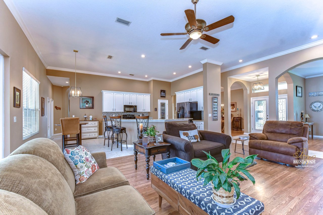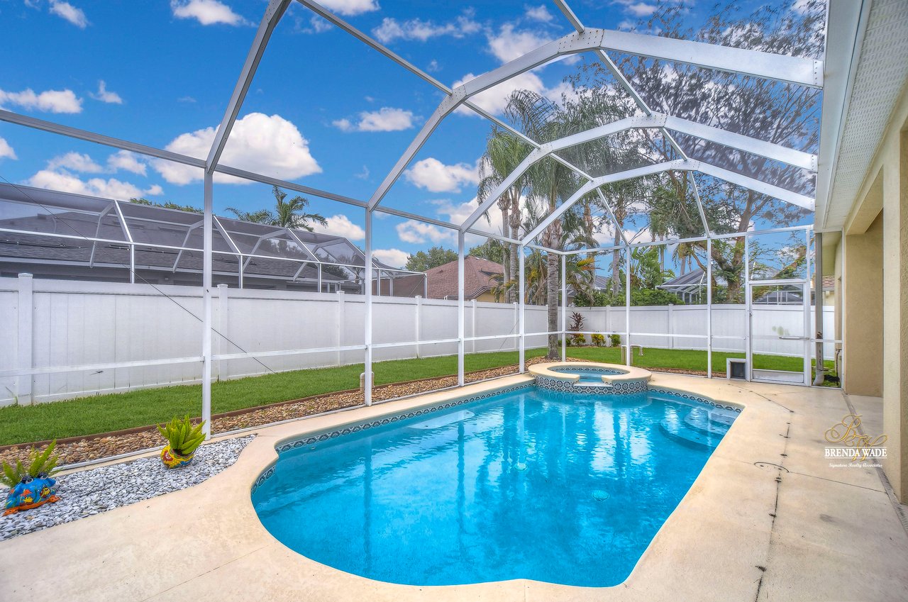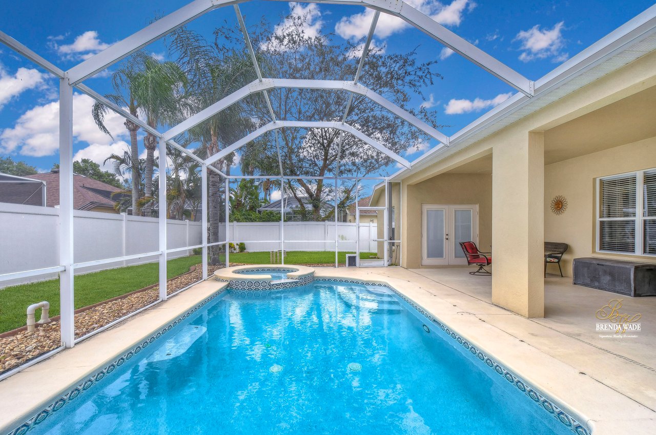 Welcome to your dream home! This exceptional home is nestled in the highly sought-after Duncan Groves Community, boasting an open-concept design that will surely captivate your heart. Prepare to be delighted by the plethora of upgrades, including a newer roof in 2020, a water heater installed in 2018, beautifully remodeled bathrooms in 2020, and a gorgeously remodeled kitchen in 2023. As you step through the stunning glass French doors, you'll be instantly enamored by the airy and luminous floor plan featuring soaring ceilings, elegant crown moulding, and accentuated graceful archways. The formal living and dining rooms, thoughtfully located at the front of the home, create the perfect ambiance for entertaining esteemed guests. The heart of this home is the stunning kitchen, which overlooks the family room, creating a seamless flow of conversation. Prepare culinary delights in this chef's haven, complete with an oversized island, ample pantry space, upgraded appliances, granite countertops, a delightful tile backsplash, and beautiful 42' resurfaced wood cabinets with charming crown detailing. Nestled in its own private wing, the primary suite awaits, boasting a comfortable sitting area, direct access to the inviting pool, a HUGE walk-in closet, and a remodeled en-suite bath with a luxurious garden tub, a walk-in shower, separate vanities, and a generously sized linen closet for all your storage needs. Two additional spacious bedrooms feature large closets and share a well-appointed bathroom, while a fourth bedroom located at the rear of the home offers privacy and convenience, equipped with its own private bath that also serves as a pool bath. The bonus room is a versatile space, ideal for a playroom, home office, crafts room, or media room, catering to the unique needs of your family. Embrace the serenity of outdoor living as you step onto the oversized lanai, the perfect oasis for leisurely afternoons or hosting summer barbecues. The pool takes center stage, exuding elegance with its tranquil waterfall, exquisite tilework, and accompanying spa. Imagine indulging in the Florida sun while lounging by the poolside, relishing in the idyllic lifestyle that awaits you. Welcome home to this exceptional property, where cherished memories are waiting to be created!