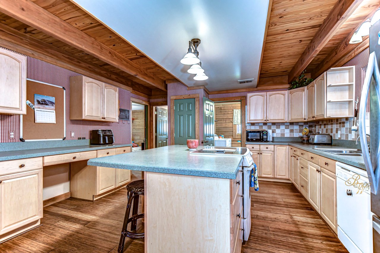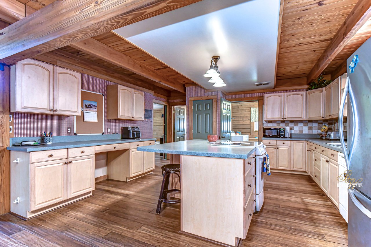 If you are searching for country living, prepare to be captivated by this one-of-a-kind custom-built log home! Nestled on over 1.1 acres of pristine land, this private oasis is accessed through a gated entrance that sets the stage for exclusivity and tranquility! Featuring 3 bedrooms, 3.5 baths plus bonus space, AND separate in-law suite, you will never want to leave! This home also features a stone fireplace, double pane windows and amazing wrap around porch! Stepping inside, you are immediately greeted by cathedral ceilings that soar above creating an air of elegance and openness! The bamboo flooring throughout adds a touch of natural beauty and warmth, inviting you to explore every corner of this stunning home! The heart of this home is the spacious family room where a wood-burning fireplace takes center stage and opens to the dining room and kitchen, ensuring you never miss a memory! If you are looking for a wonderful space to bake and cook, look no further! The large kitchen features built in stovetop and over-sized center island for leisurely breakfasts in the morning! The dining room is a haven of hospitality and offers a wonderful spot for dinner and game nights! For moments of relaxation and unwinding, the living room is a sanctuary. With its a cozy sitting area and expansive window, it's the perfect place to curl up with a good book or simply take in the serenity of your surroundings! A convenient half-bath is just steps away, adding to the functionality and convenience! Primary suite is tucked away on the lower level for added privacy! Large windows let in gentle breezes and natural light, creating a soothing ambiance! En-suite bath boasts tile flooring, soaking tub, walk-in shower and double vanities! One of the unique features of this home is the added bonus of a downstairs in-law suite! Complete with French doors that open up to the wrap-around porch providing a private entrance for guests! The in-law suite also includes its own kitchen, living area, separate bedroom with large walk-in closet and bathroom with tile flooring, double sinks, and tub/shower combo! Ascending the stairs, you will find an over-sized loft with a full bath. Offering endless possibilities for customization, this space could easily be converted into a playroom or office! Two additional bedrooms await with plush carpet and ample windows to allow natural light to flow through effortlessly. The exterior of this home is equally enchanting, with fenced backyard that adds an extra layer of security and a 30x40 garage that is ideal for a workshop or extra storage! The wrap-around porch is the perfect spot for taking in the beauty of nature, with panoramic views! This home is a rare gem that offers endless possibilities!