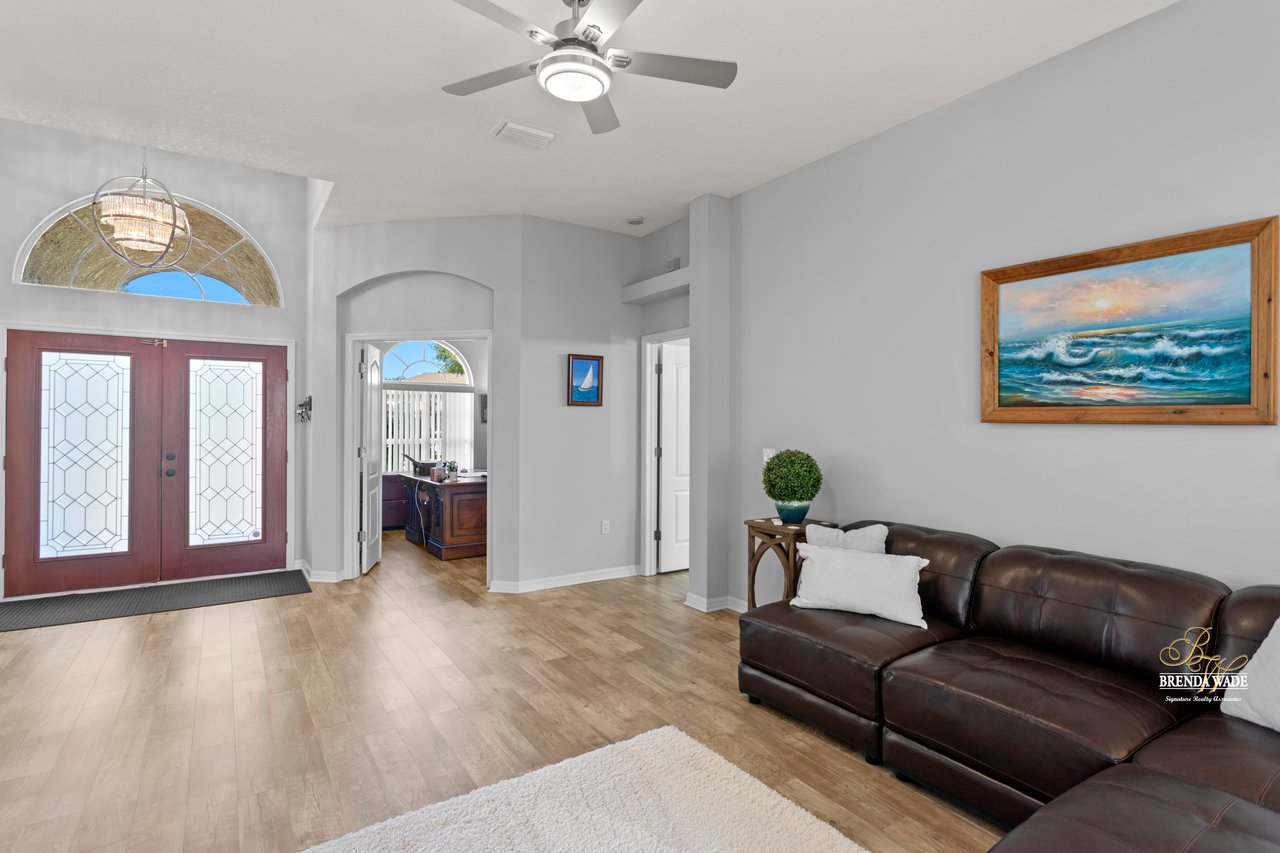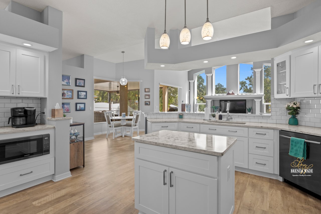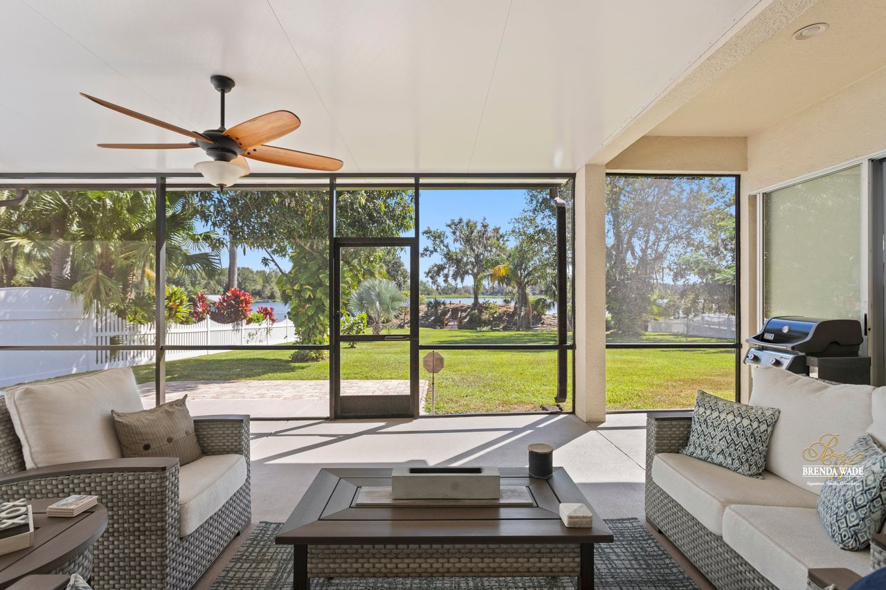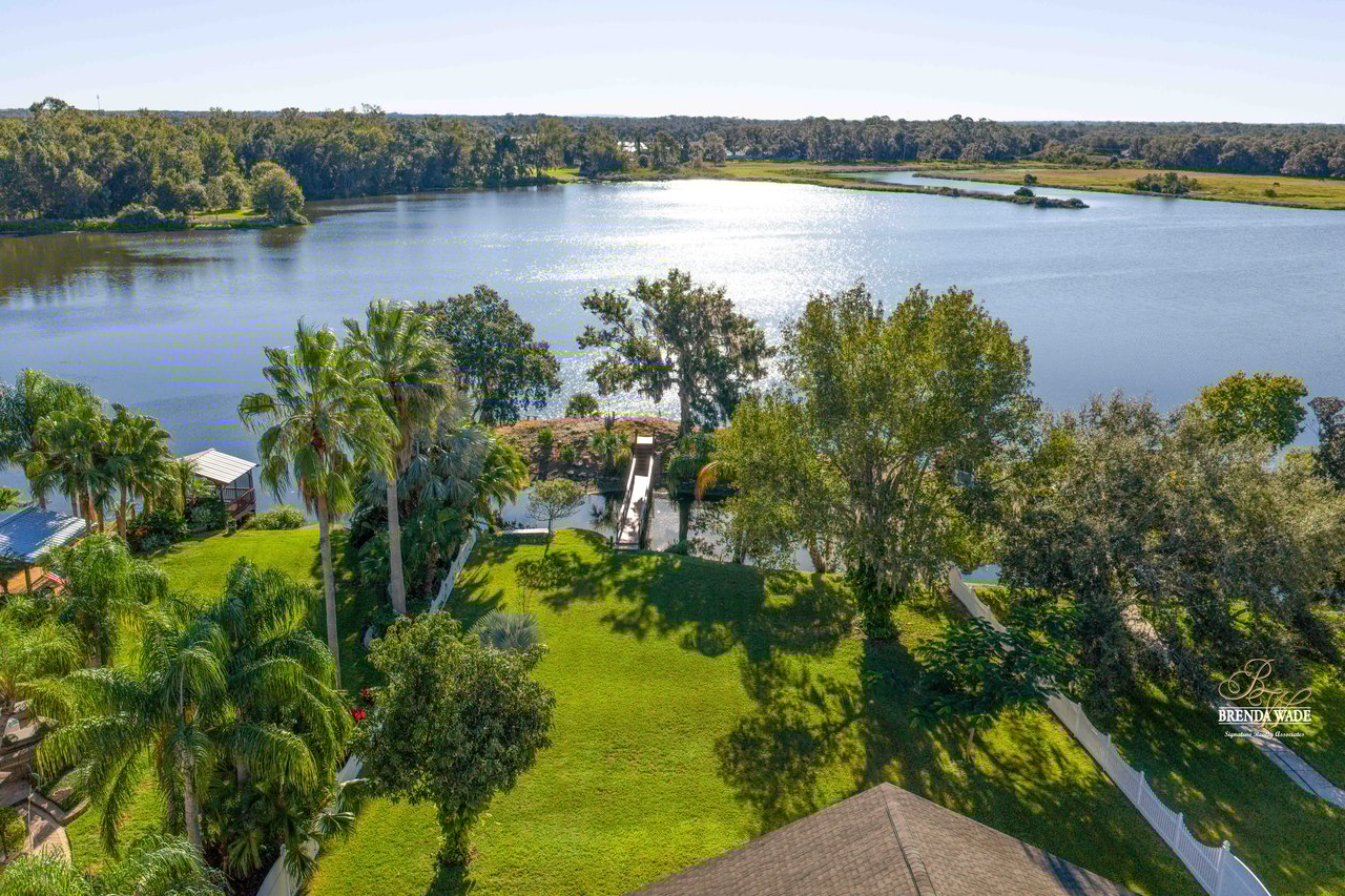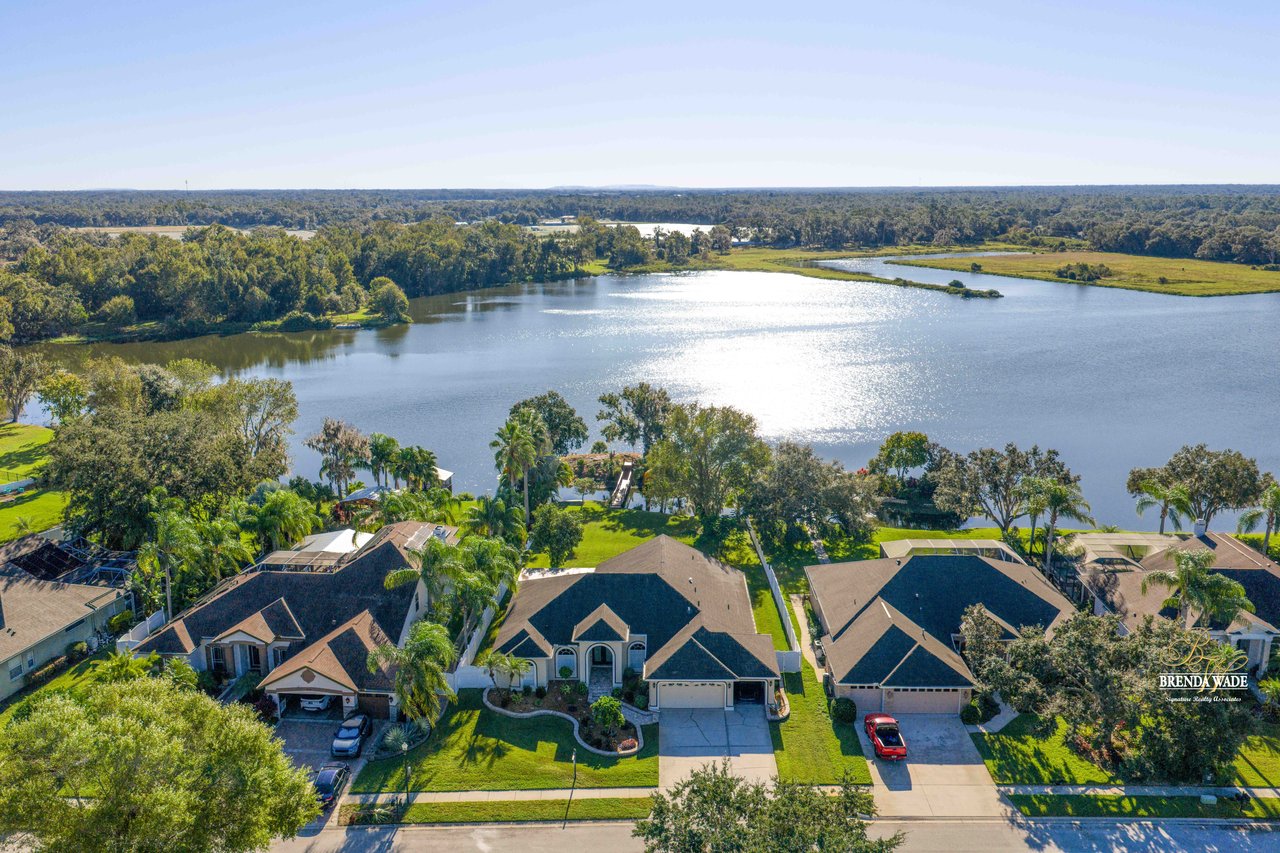 Welcome to a true one-of-a-kind waterfront retreat in the sought-after Twin Lakes community of Valrico! Perfectly positioned on the shimmering shores of Lake Stearns, this completely remodeled home comes with something truly extraordinary -- your very own private ISLAND! Yes, an island you can build on, relax on, or simply enjoy as your personal slice of paradise. From the moment you arrive, you'll feel the uniqueness of this property. Every inch of this home has been thoughtfully updated to blend modern comfort with natural beauty. Step inside to discover an open-concept layout with soaring ceilings, abundant natural light, and panoramic lake views that create a serene and inviting atmosphere. The gourmet kitchen is a showstopper -- completely remodeled in 2019 with sleek cabinetry, premium appliances, and stylish finishes, ready to inspire your inner chef. The triple-split floor plan provides privacy for family and guests, while the expansive primary suite offers a spa-like bathroom fully renovated in 2020, complete with elegant finishes and a relaxing atmosphere. Both secondary bathrooms were remodeled in 2019, ensuring every space feels fresh and modern. Throughout the home, you'll find beautiful new flooring and interior paint completed in 2018, along with a tankless water heater, water softener, and a new HVAC system all installed that same year. A full roof replacement and exterior painting were completed in 2019, along with new paver walkways and walls in both the front and back of the home. Even the bridge leading to your private island was rebuilt in 2018, adding to the home's turnkey appeal. The outdoor living experience is truly exceptional. The formal living room, family room, and primary suite all feature pocket sliding doors that open completely to the oversized screened lanai, creating a seamless transition between indoor and outdoor living. This incredible space is perfect for entertaining, dining al fresco, or creating your ultimate outdoor lounge or game area--all while overlooking the sparkling lake. With so much room to relax or host, the possibilities are endless. The large backyard offers plenty of space to design your dream pool, and the private dock makes it easy to launch your kayak, paddleboard, or small watercraft right from home. Love the water? You'll be able to access Lake Stearns directly for fishing, exploring, or simply cruising across to your own island getaway. This home truly has it all -- modern upgrades, rare lakefront living, and a private island unlike anything else in Valrico. Don't miss your chance to own this piece of paradise!