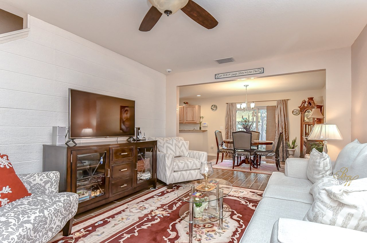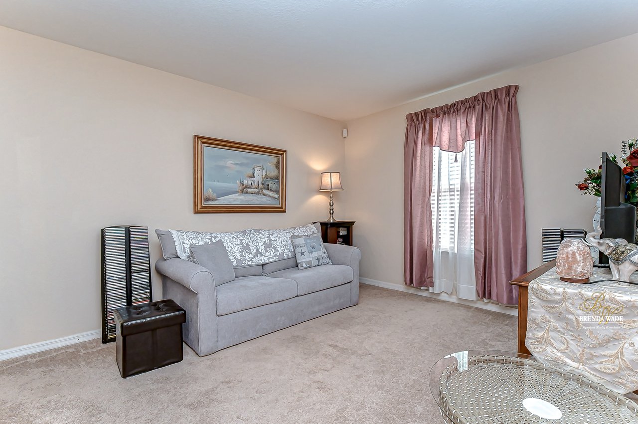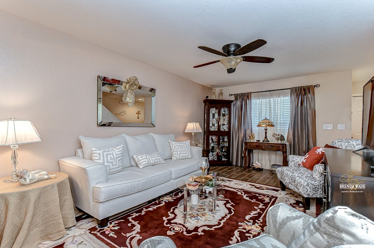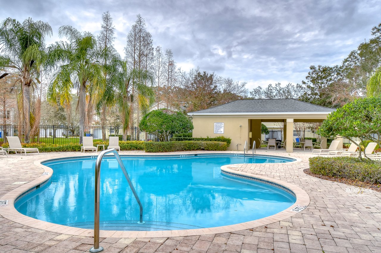 Welcome to this turnkey townhouse located in the peaceful Oakwood Terrace community! This spacious 3-bedroom home includes an open loft upstairs, private one-car garage, and screened and covered lanai! The charming front exterior welcomes you inside with stacked stone accents, cozy front porch, and well-maintained landscaping! You will have peace of mind with the glass, storm front door installed in 2019! The open floor plan features neutral paint, wood-look porcelain tile flooring, and natural light that flows from the inviting family room into the dining room! The dining room has room to host holiday meals with friends and family and has sliders that guide you into the screened and covered lanai! With this unit being nestled at the back of the community you have extra privacy with no additional units in your backyard! The chef’s kitchen has been tastefully upgraded and ready for you! Granite counters, stainless appliances, rich wood cabinets and drawers, breakfast bar seating, and an appealing backsplash! There is a convenient half-bath downstairs for guests to use! Head upstairs and discover a spacious loft with HUGE walk-in storage closet! This versatile space can be your home office, media room, or playroom to store the kids' toy clutter away from the living area! The master suite features a large window for great lighting, wainscotting accent wall, walk-in closet, and en-suite with dual sinks and walk-in shower! There are two secondary bedrooms on the other side of the second floor sharing a second full bathroom nearby! Being at the back of the community allows for less vehicle traffic by your home! The sparkling community pool will be the kids' favorite spot all summer long! This quiet neighborhood is ready for you to call it home, come take a look for yourself!