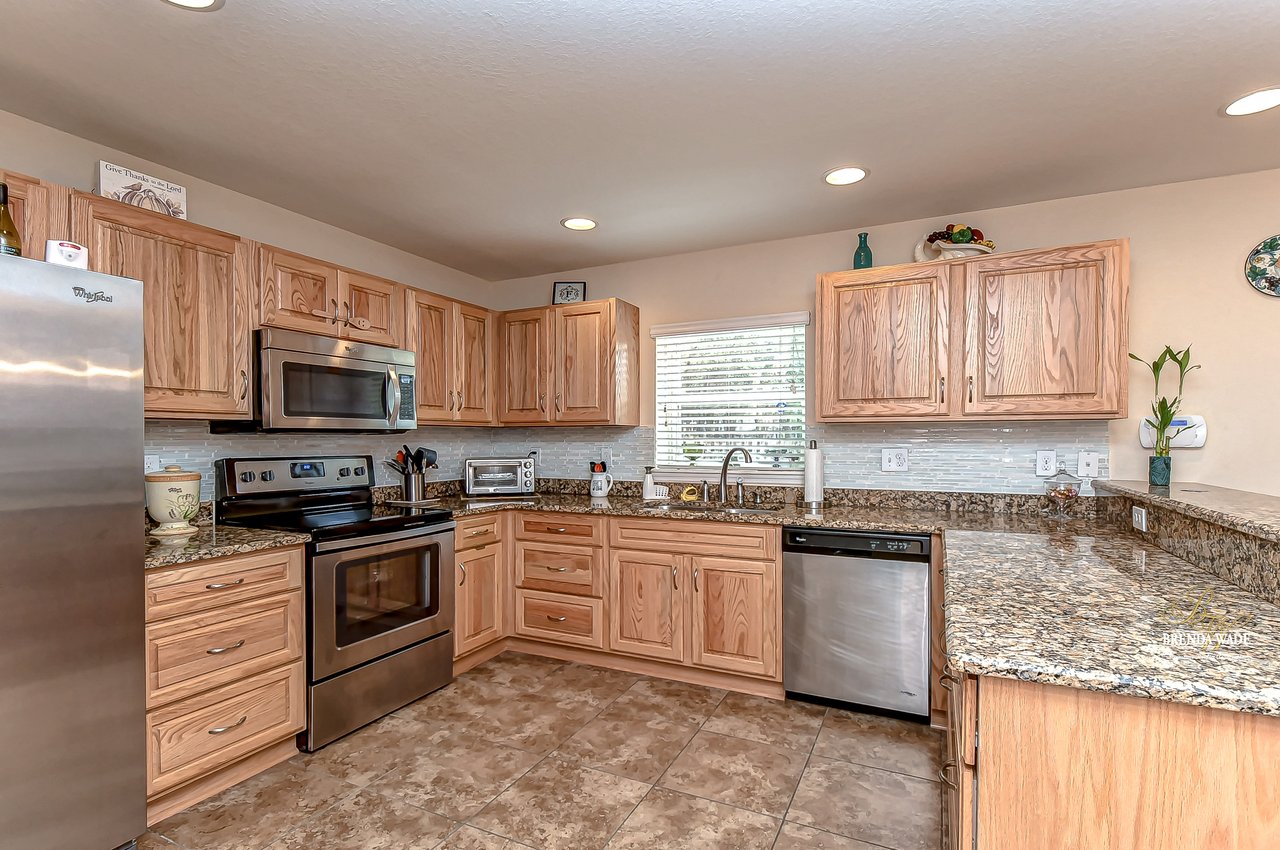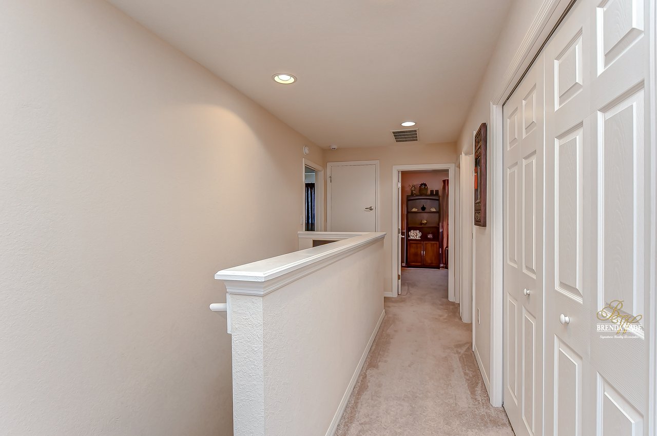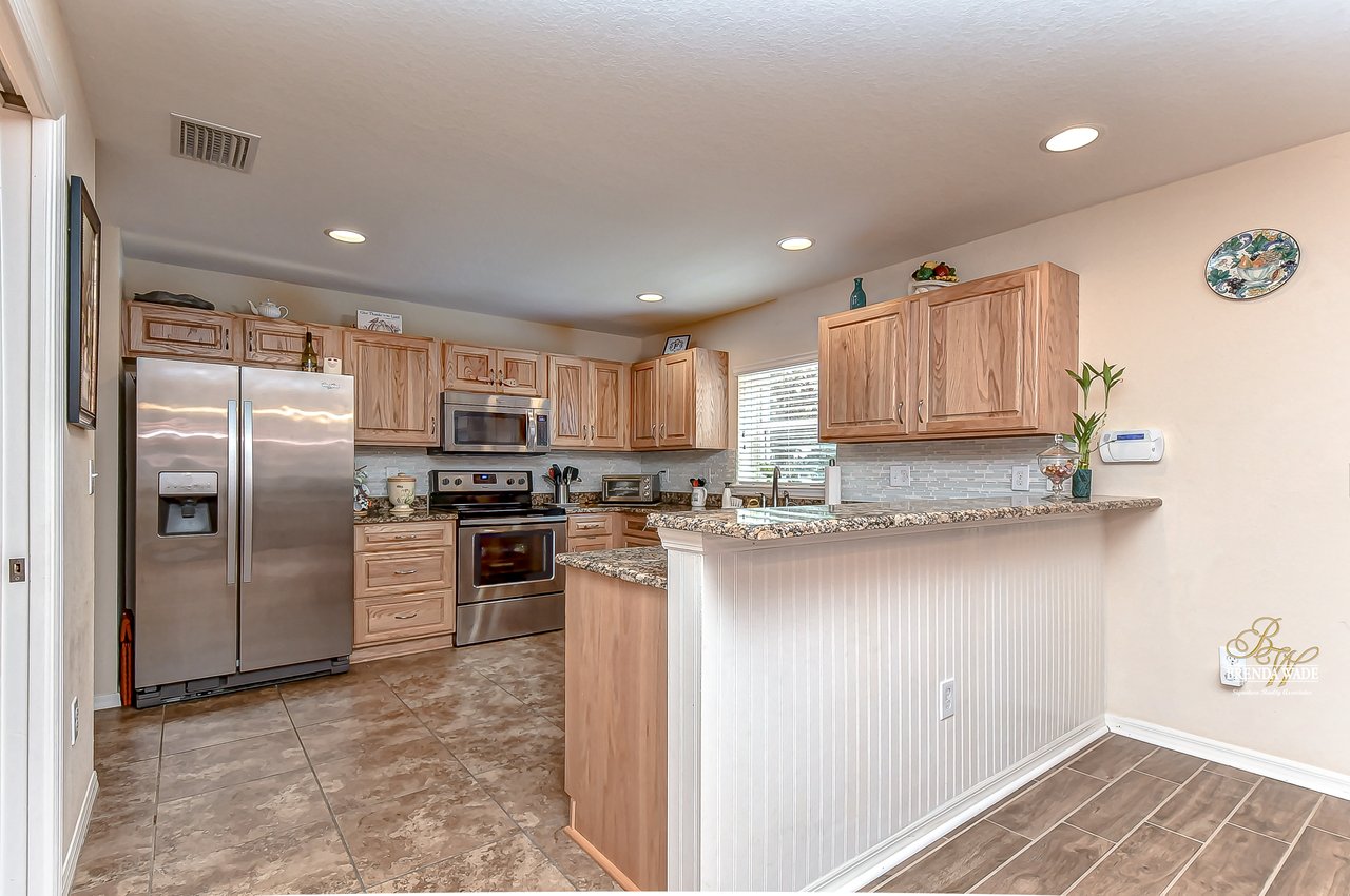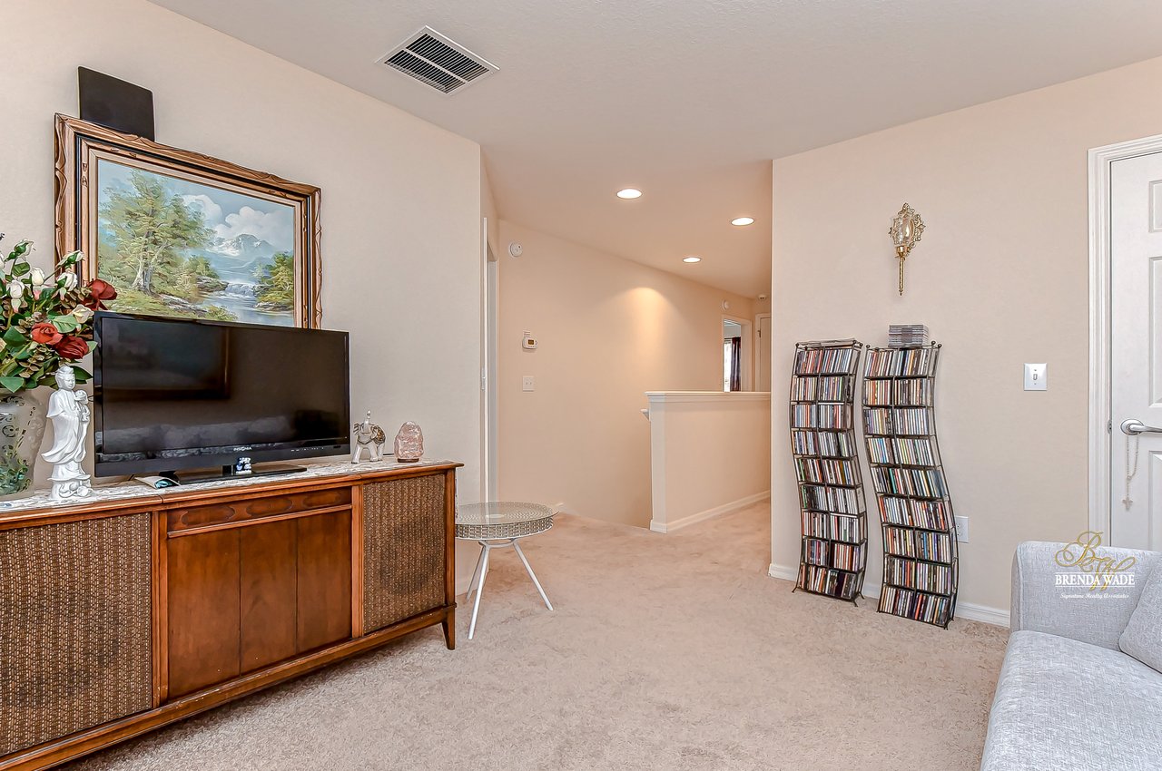 Welcome to this turnkey townhouse located in the peaceful Oakwood Terrace community! This spacious 3-bedroom home includes an open loft upstairs, private one-car garage, and screened and covered lanai! The charming front exterior welcomes you inside with stacked stone accents, cozy front porch, and well-maintained landscaping! You will have peace of mind with the glass, storm front door installed in 2019! The open floor plan features neutral paint, wood-look porcelain tile flooring, and natural light that flows from the inviting family room into the dining room! The dining room has room to host holiday meals with friends and family and has sliders that guide you into the screened and covered lanai! With this unit being nestled at the back of the community you have extra privacy with no additional units in your backyard! The chef’s kitchen has been tastefully upgraded and ready for you! Granite counters, stainless appliances, rich wood cabinets and drawers, breakfast bar seating, and an appealing backsplash! There is a convenient half-bath downstairs for guests to use! Head upstairs and discover a spacious loft with HUGE walk-in storage closet! This versatile space can be your home office, media room, or playroom to store the kids' toy clutter away from the living area! The master suite features a large window for great lighting, wainscotting accent wall, walk-in closet, and en-suite with dual sinks and walk-in shower! There are two secondary bedrooms on the other side of the second floor sharing a second full bathroom nearby! Being at the back of the community allows for less vehicle traffic by your home! The sparkling community pool will be the kids' favorite spot all summer long! This quiet neighborhood is ready for you to call it home, come take a look for yourself!