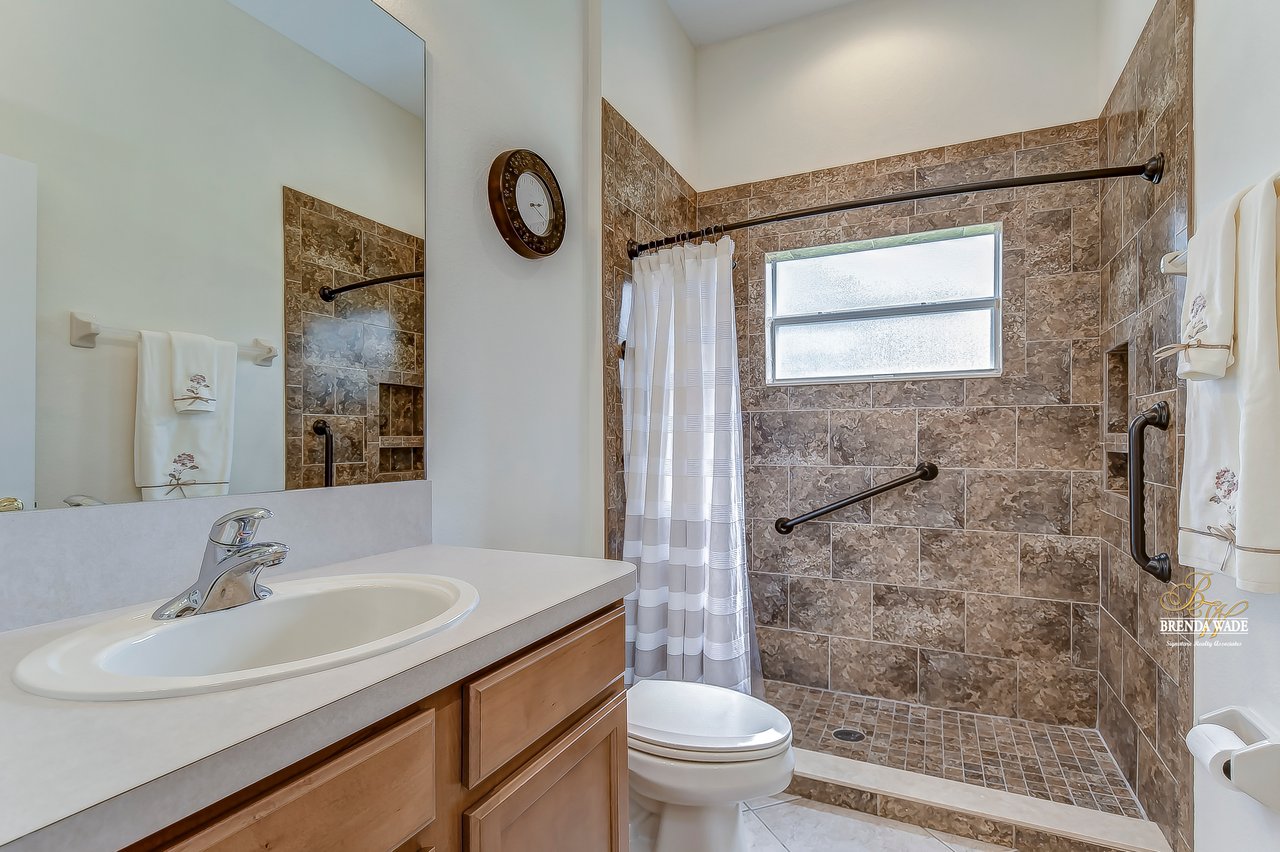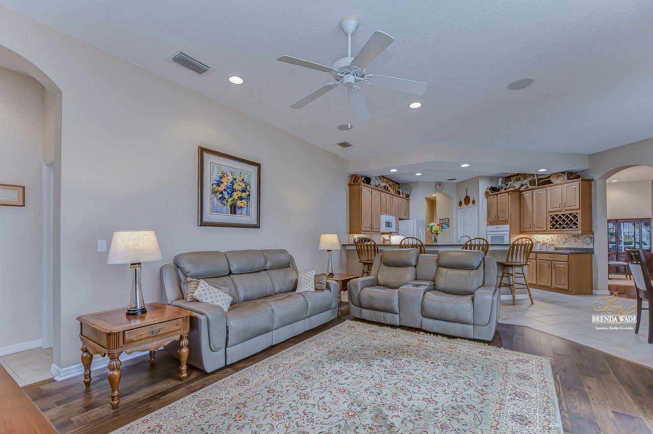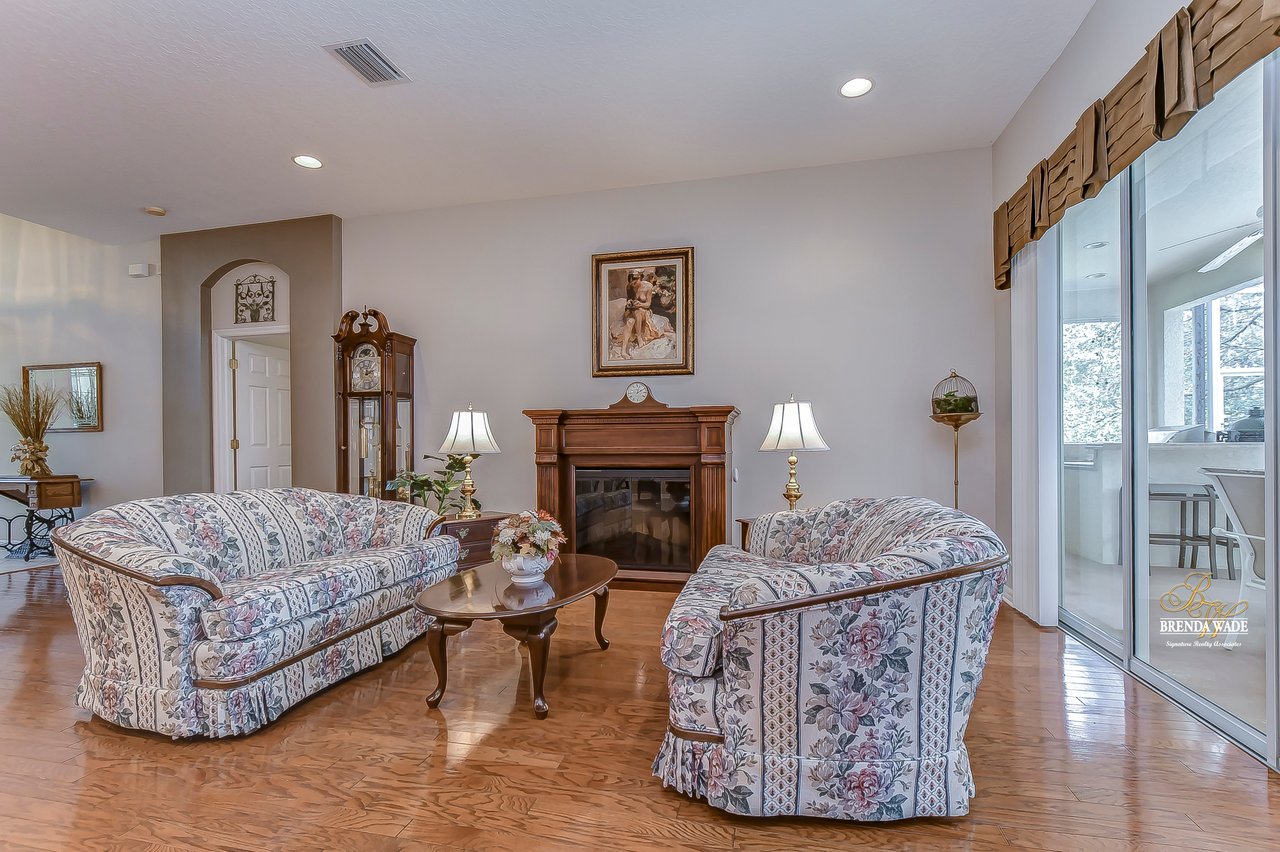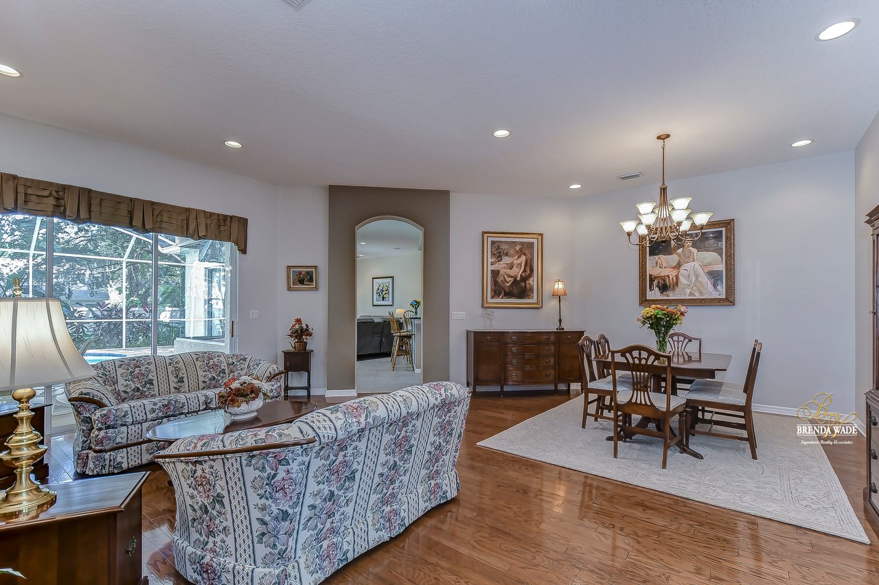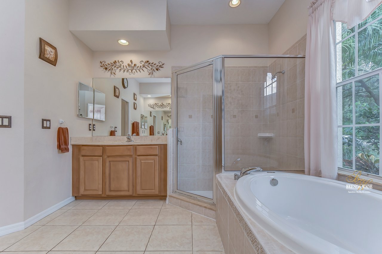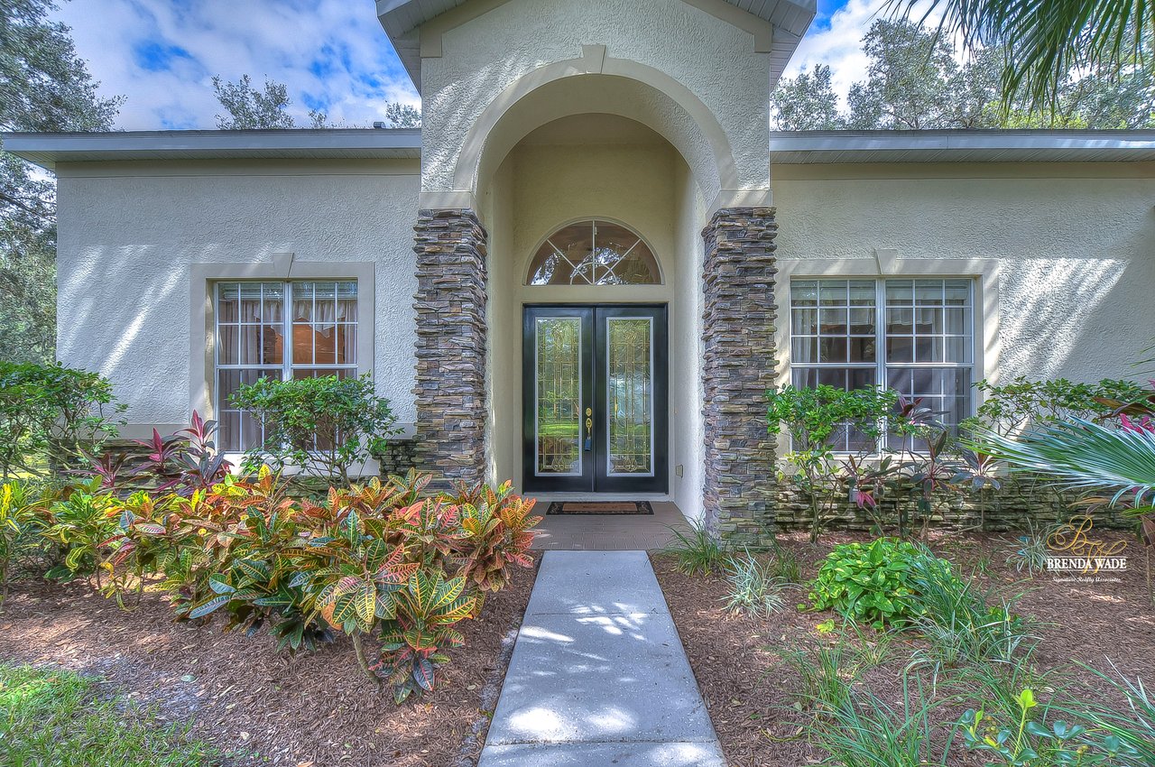 This stunning pool home is located in the highly desirable, gated community of Hickory Woods! From the moment you arrive you will notice there are not many homes as special as this one! NEW ROOF, A/C unit, water heater, and gutters, stacked stone accents, mature lush landscaping, 3-car side entry garage, and sits on .58-acres with pond access! A gorgeous glass double door greets you and you are instantly welcomed by the 10-ft high ceilings, neutral paint, arch entryways, and open design! The formal dining and living room offer a triple slider, engineered hardwood flooring, and so much room for company! The kitchen is quite the treat with 42-in wood cabinets with crown and under cabinet lighting, tile backsplash, extensive breakfast bar seating, wine rack, built-in oven, and walk-in pantry! The breakfast nook has a large corner window overlooking the pool and outdoor oasis! The family room has beautiful engineered hardwood flooring and triple sliders to the screened lanai! The primary bedroom is a true retreat! Featuring a double tray ceiling, French doors to the lanai, his & her walk-in closets, and en-suite bath with separate vanities, large garden tub, and walk-in shower! Two additional spacious bedrooms offer large closet space and share a bath, while a fourth bedroom at the back of the home offers privacy and convenience, with its own private bath that also serves as a pool bath. Upstairs, an oversized bonus room awaits, offering endless possibilities such as a media room, home gym, or game room. It also features a large walk-in storage space and full bath, ensuring you have plenty of room for all your belongings. A spacious office located at the front of the home provides a comfortable and productive workspace or fifth bedroom. The outdoor space of this home is a true showstopper. Take a dip in the beautiful pool or spa and soak up the sun. The outdoor kitchen features a fridge, sink, grill, and cooktop, making it the perfect place to entertainment and relax. The backyard is fenced, offering a safe and secure area for the whole family to enjoy. There is a little stream that leads to the pond next to the home! You have a tranquil view at your fingertips! Don't just take our word for it, come see this beauty for yourself!