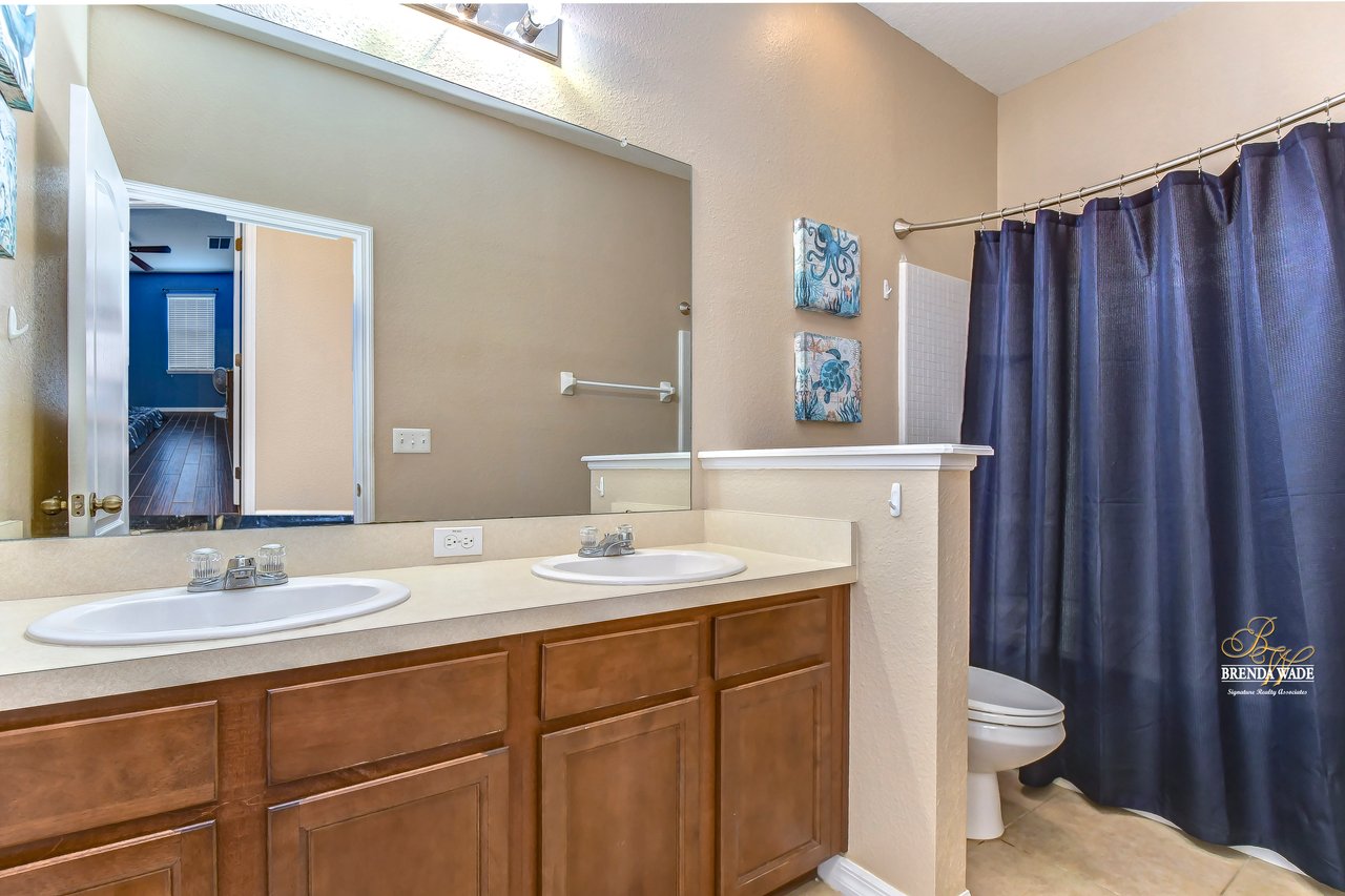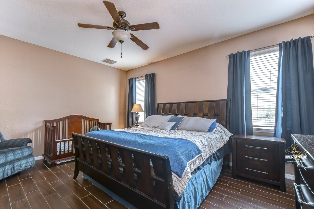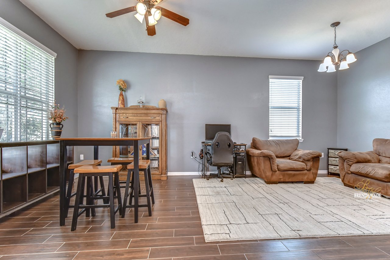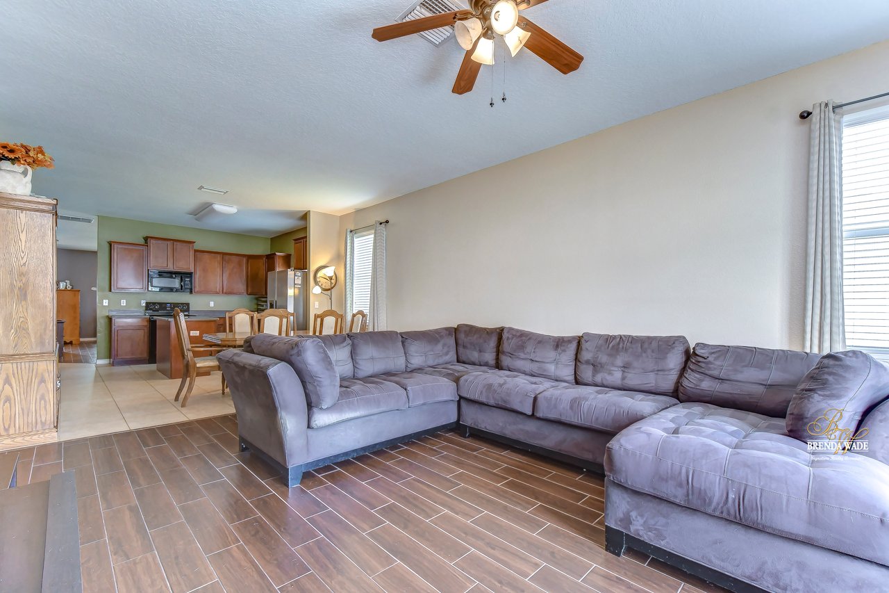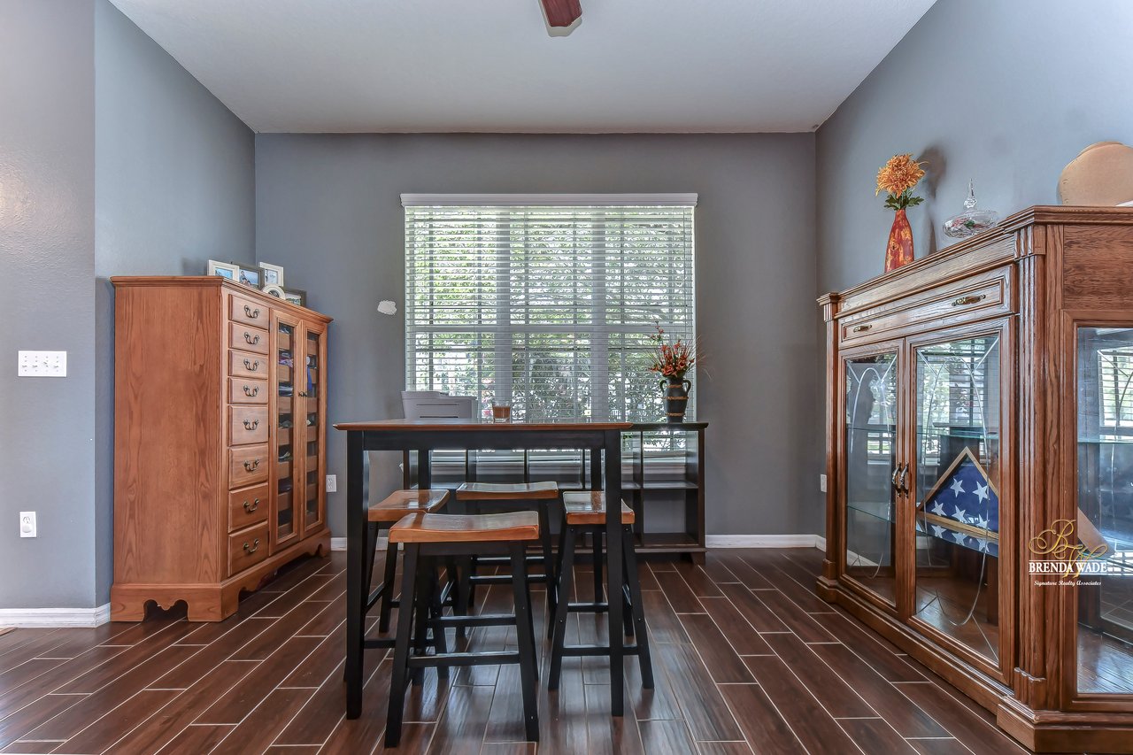 Nestled in the tranquil Magnolia Green neighborhood, lies a beautiful 4-bedroom, 2-bath home that creates a scene of comfort and elegance! Ceramic tile flooring leads throughout this home and neutral paint is perfect for any décor! Living and dining room combo is a versatile space and would be a grand room for memorable gatherings, whether they be extravagant dinners or spirited game nights! The heart of this home lies in the kitchen, which opens to the family room for endless memories! Featuring Corian countertops, wood cabinets, and gleaming ceramic tile flooring! The accompanying eat-in breakfast area is the ideal spot for casual meals and engaging conversations! Seamless integration of indoor and outdoor living can be felt in the family room as it welcomes you to the outdoors via sliders to the patio, where gentle breezes can flow through effortlessly! Retreating to the primary bedroom you can immerse yourself in the tranquility of wood-like ceramic tile flooring, large walk-in closet for clutter-free living, and two windows that allow the natural sunlight to flow through! En-suite bath boasts double sinks for added comfort and convenience to make getting ready a breeze, ceramic tile flooring, walk-in shower, and large soaking tub! Three secondary bedrooms grace their own wing and offer peace and privacy for family and guests! These rooms share a full bath, complete with double sinks and tub/shower combo! Adding an extra layer of safety and security, a fenced backyard encloses this home and offers an 18-foot above-ground swimming pool, perfect for backyard entertainment or refreshing respite from the Florida sun! Backyard also offers lots of room for kids and fur babies alike! Prepare to fall in love with this beautiful home that blends elegance and comfort into one!