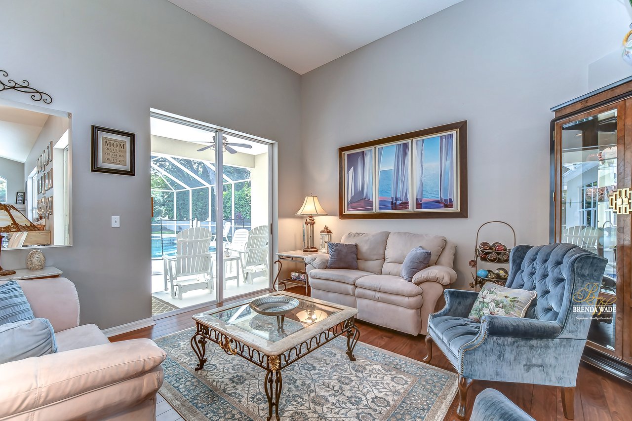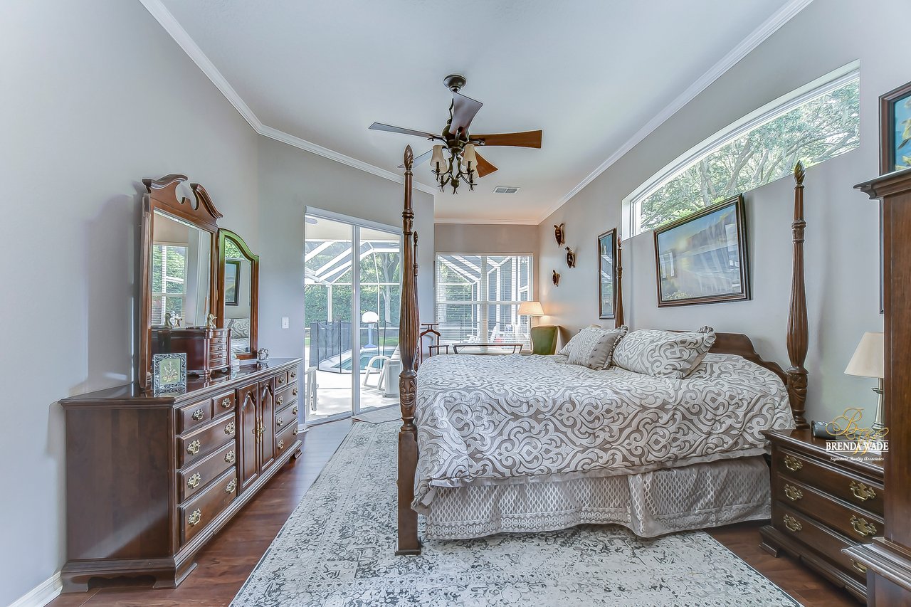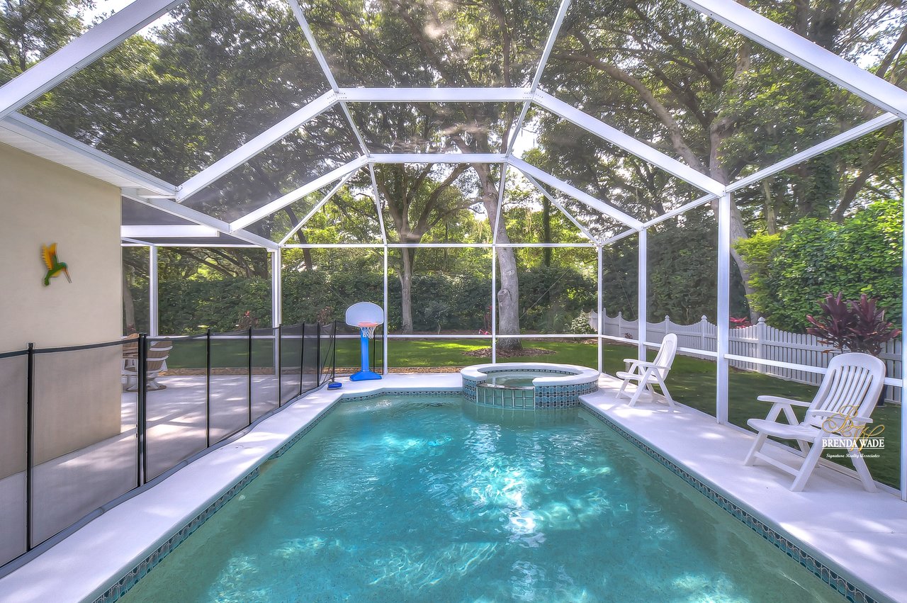 This beautiful home built by the premier Tampa Bay builder Sunrise Homes will be sure to check all your boxes. Located in the desirable Twin Lakes community that is zoned for GREAT schools and a quick commute to all that Tampa has to offer, homes here do not last long! Sitting on a premier 0.35-acre cul-de-sac lot, tucked towards the back of the community, you will love to lay roots here! You have the added bonus of no front neighbors, just a lovely park directly in front that is waiting for you and your family to enjoy! The current owners have added a NEW ROOF, NEW A/C, NEW POOL HEATER, PUMP & AUTOMATED CONTROL SYSTEM and have added new paint both inside & out so you can rest assured that the high-tickets items have been taken care of! Through the front door, you will be greeted with spectacular pool views! You will also discover generously proportioned living and dining rooms both featuring wood floors! Continue and you reach the open design with a kitchen and family room combination! This is a great space to spend family time and offers two walls of windows to make the most of the natural light! This room also features cathedral ceilings, wood floors, and built-in for you to display all of your favorite décor pieces! The kitchen boasts raised panel wood cabinets, granite counters, built-in desk, and newer stainless appliances! The spacious primary suite with more wood floors, crown, sitting area, and his and hers walk-in California closets is on its own side of the home so it is very private! The attached bath with jetted garden tub, shower, and his and hers sinks is the perfect space to finish up your day! There is also another 3 bedrooms and 2 full baths, one of which doubles as a pool bath! At the front of the home, you will find an office that is accessed through French doors, perfect for a quiet spot to either study or work from home! The delightful lanai with sparkling salt-water pool and spa will be the favorite space to spend those long summer days! With lots of deck space and privacy all around this area is the icing on the cake! Come take a look, you are going to fall in love!
