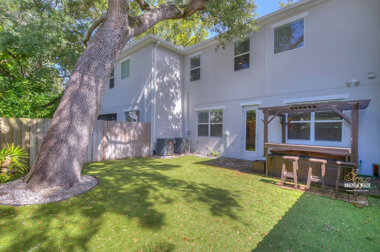 Welcome to South Tampa living! You are going to fall in love with this 2017 built townhome right in the heart of all that this vibrant city has to offer! Just five minutes on foot to the outstanding Roosevelt elementary school, there will be no car line for you! Traditional elevation with siding accents welcomes you to this appealing home that features 3 bedrooms, 3.5 baths, and 2 car garage! Inside you will discover a home decorated to appeal to the most discerning buyer! Contemporary paint colors, wood & tile floors as well as fixtures & fittings that are the latest in popular home decorating trends welcome you! The gorgeous kitchen with white 42" shaker cabinets topped with crown with soft-close doors & drawers, quartz counters, stainless appliances including built-in double oven, walk-in pantry, and huge center island accented with orb pendant lights is the perfect spot to prepare the family meals! The great room with adjacent spacious dining area is open to the kitchen and is accented by the wood floors that flow throughout the first floor and also the stairs that lead to the second floor! The great room is accented by a wall of framed windows and door that leads to the back yard along with recessed lighting that makes the most of the natural light! There is also a convenient half bath on the first floor along with a large storage area under the stairs! The second floor features the primary suite along with two secondary bedrooms! All bedrooms offer spacious walk-in closets and en-suite baths so it is the perfect set-up to offer privacy to all members of the house! All baths feature stone counters with the primary also boasting a soaking tub, large seamless shower, as well as his & her sinks! Don't forget to check out on the second floor there is a spacious laundry room! The outdoor area is another highlight of this home with a small pavered area featuring a hot tub and a fenced yard for the safety of you and your family! Come take a look at this perfect home, you will fall in love!