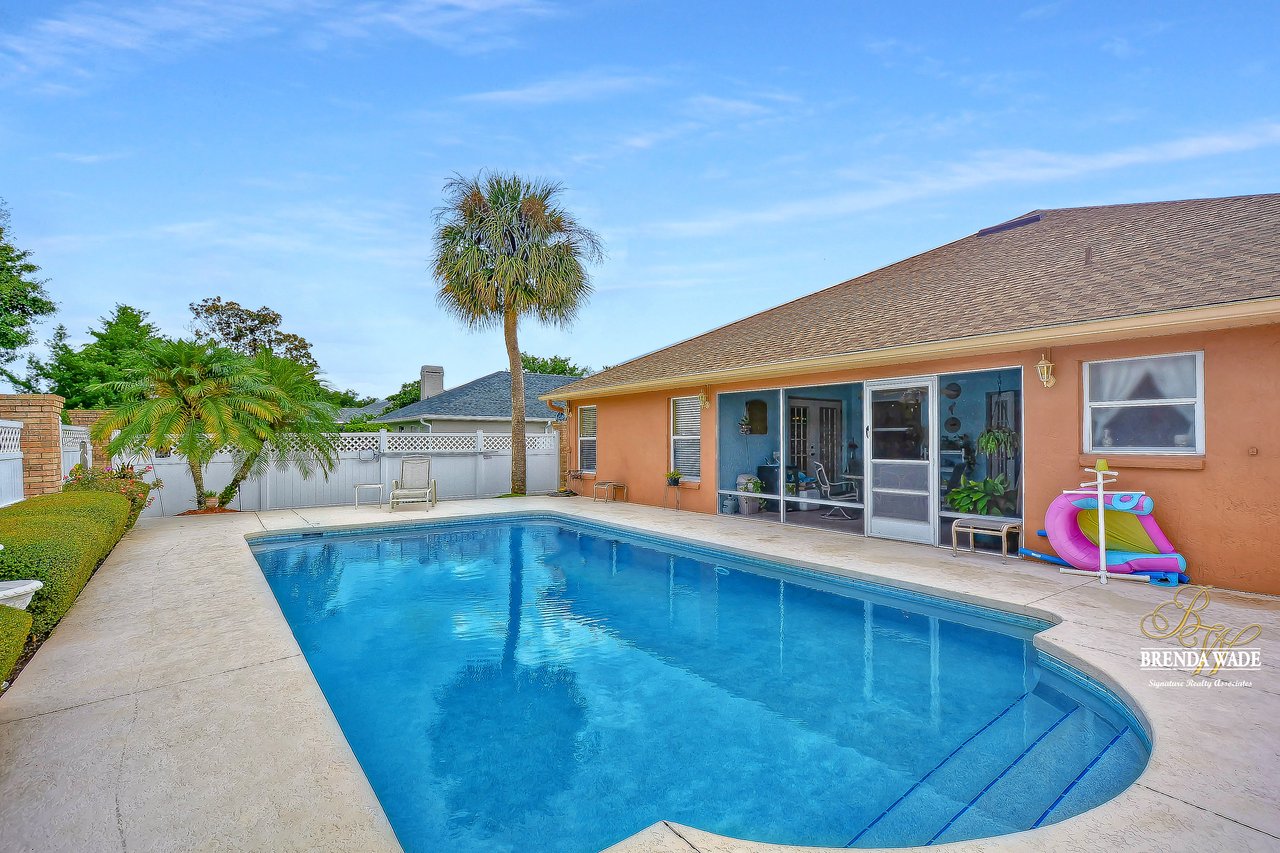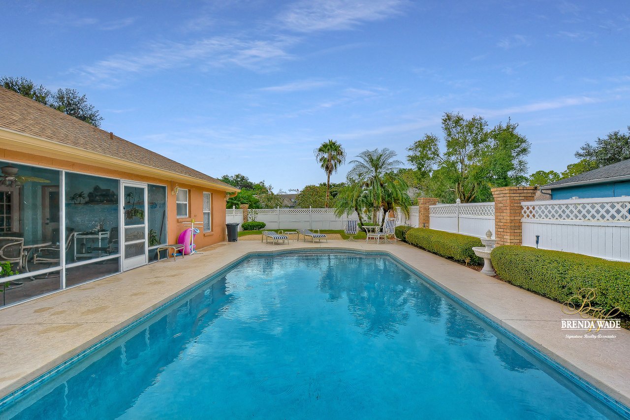 What an EXQUISITE opportunity! This 4 bedroom, 3 bathroom POOL HOME offers plenty of space for everyone in the family! Sitting on an oversized, CORNER LOT in the sought-after community of Waterford in Lakeland, you will know this is HOME from the moment you arrive! A beautiful brick pavered entryway and tropical landscaping welcome you into this grand design! Just inside the door you are greeted by a MASSIVE home office, quietly tucked away behind double French doors, this space is PERFECT for working from home! Moving right into the formal dining room, accented with stunning column accents that carry into the family room as well! Tall, volume ceilings make this space feel so open and airy! Now lets talk about the STAR of this home… the completely remodeled, designer kitchen! Dreamy cabinets, marvelous granite counters, built-in wine rack, tile backsplash and so much more! Open to the kitchen is a cozy eat-in nook, perfect for the more casual week-day meals! This floor plan boasts a private 3-way split with the master secluded on its own wing of the house. A private exit to the lanai and stunning en-suite make this space a true retreat! Two more guest rooms share a 2nd full bath while the 4th bedroom and final bathroom are privately hidden behind a pocket door, this is a great opportunity for guests, an in-law suite or even for an older child to have their own space! As if ALL of that was not enough room for your family, we still have to talk about the wonderful bonus room featuring custom built-in shelving and cabinets! A perfect playroom, 2nd home office, homeschool room or it could even be made into a 5th bedroom if needed, the opportunities are endless! A tranquil, screened, and covered lanai is cool and breezy, overlooking the glistening swimming pool and fully fenced yard! We do think you have to come and see this home to appreciate all its glory! Schedule a private showing TODAY!