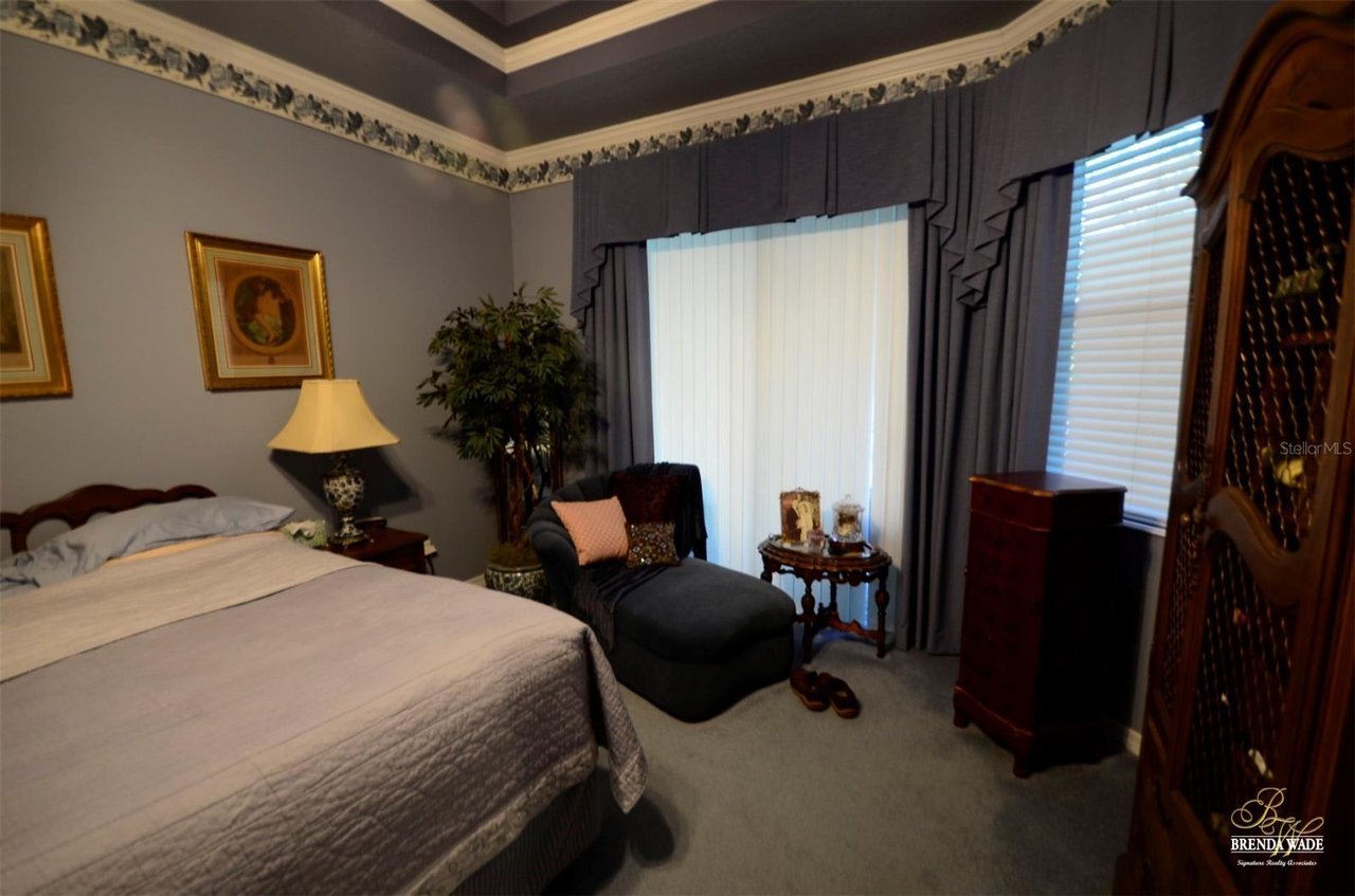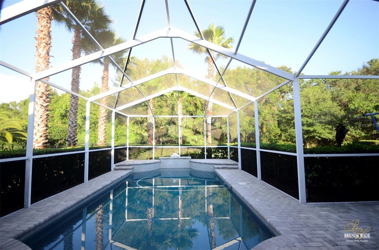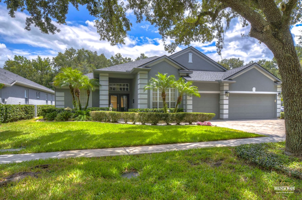 Welcome to this absolutely perfect, one-owner home in the prestigious guard-gated, golf community of River Hills! Sitting on an oversized 0.34-acre lot on a quiet cul-de-sac street, this perfect family home with over 2,800 sqft, lives large! Be impressed with the wonderful curb appeal that includes NEW ROOF & EXTERIOR PAINT in 2022, pavered driveway & walkway & landscaping accented by landscape curbing! Through the double leaded glass front doors, you arrive in the hallway with crown moulding, 11ft ceilings, and tile floors! A spacious bedroom at the front of the home is currently being used as a sitting room and also offers 11ft ceilings making it feel especially spacious! The formal entertaining areas will be the perfect place to host friends and family for gatherings! The dining room features a tray ceiling accented with crown and the living room boasts sliders with grand views of the pavered lanai and pool with extensive green views behind! The heart of the home is the spacious kitchen with 42” raised panel white cabinets topped with a crown that overlooks the family room with a wall of custom cabinetry, oversized picture window, crown moulding and double slider that looks out to the screened lanai with sparkling pool! The chef in the family will appreciate all that the kitchen has to offer including Blue Pearl granite counters, a spacious island with bar seating and an adjacent informal breakfast area! The split floor plan offers privacy for the owners with the spacious primary suite with tray ceiling with crown and en-suite with garden tub and separate shower! The other secondary bedrooms sit on the opposite side of the house making this the perfect floorplan for those families with older children that appreciate some privacy! You will love the outdoor area that this home offers! You and your family will spend countless hours enjoying your sparkling Pebble Tec pool upgraded in 2022! Spend the hot Florida summers with your family splashing around in your private pool sitting on a pavered deck! River Hills is a wonderful golf community with 24-hour guarded security, an award-winning golf course, a fitness center, a clubhouse, tennis courts, and Olympic size swimming pool! This home will be sure to check all your boxes and with a limited number currently available, you will want to schedule your tour today!
