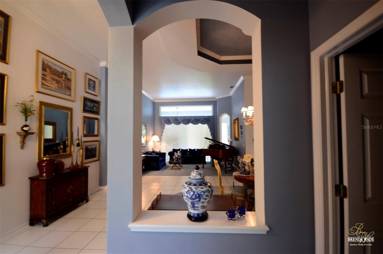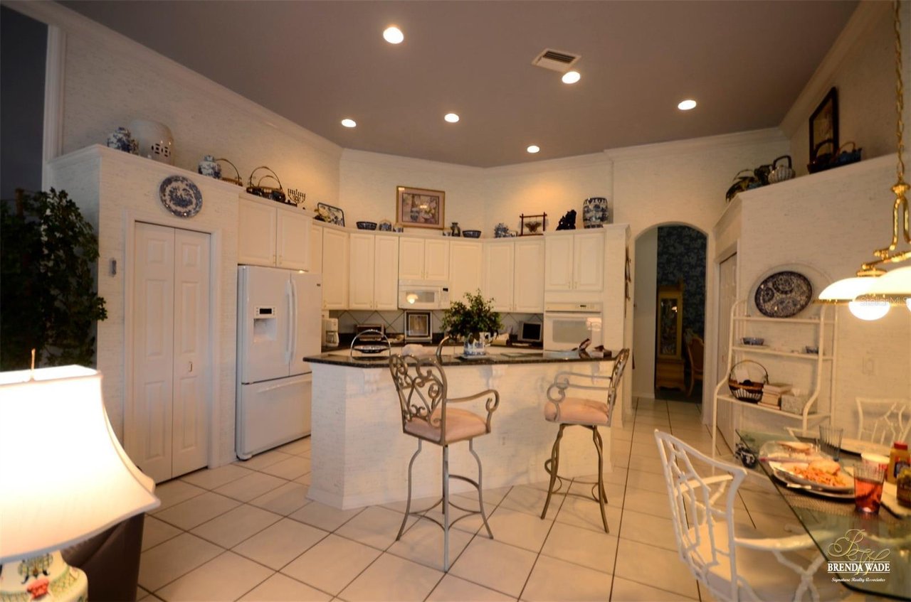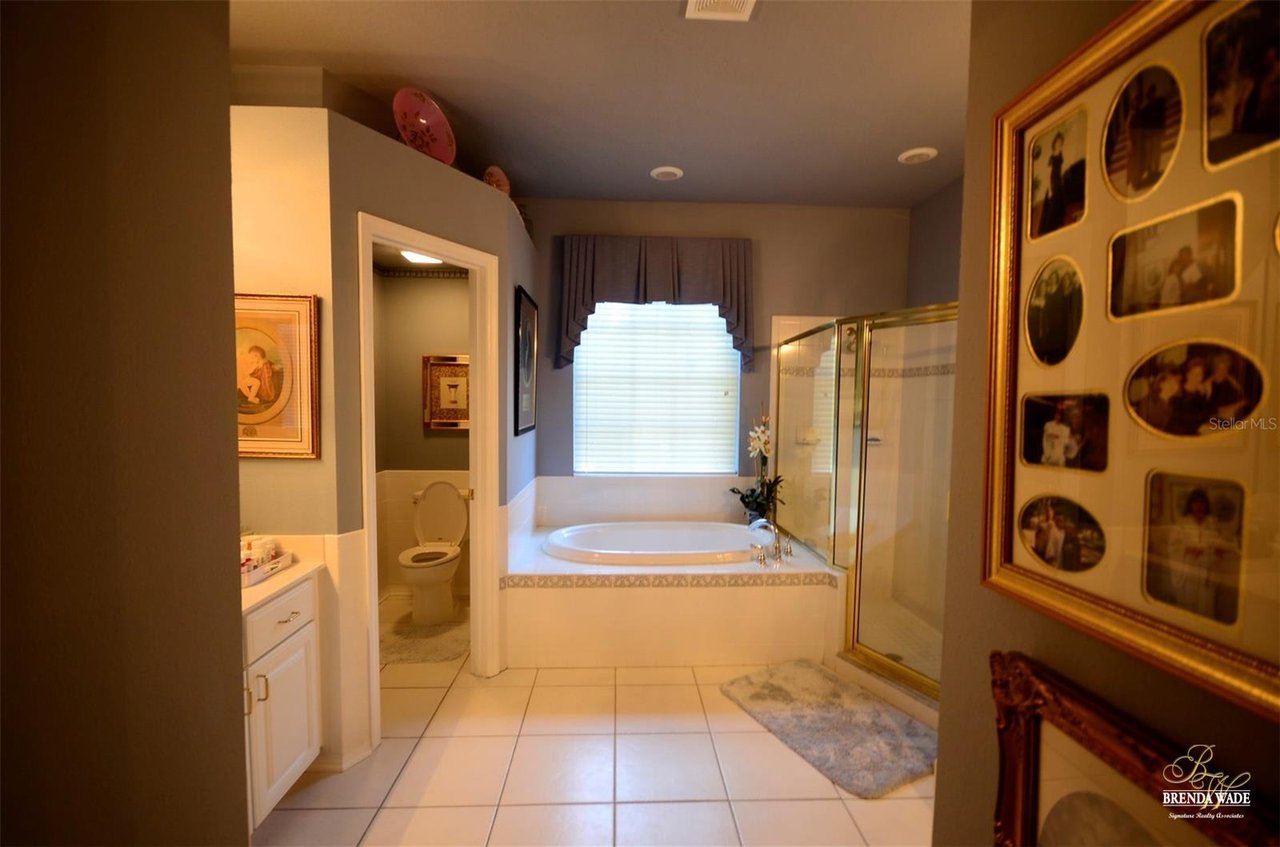 Welcome to this absolutely perfect, one-owner home in the prestigious guard-gated, golf community of River Hills! Sitting on an oversized 0.34-acre lot on a quiet cul-de-sac street, this perfect family home with over 2,800 sqft, lives large! Be impressed with the wonderful curb appeal that includes NEW ROOF & EXTERIOR PAINT in 2022, pavered driveway & walkway & landscaping accented by landscape curbing! Through the double leaded glass front doors, you arrive in the hallway with crown moulding, 11ft ceilings, and tile floors! A spacious bedroom at the front of the home is currently being used as a sitting room and also offers 11ft ceilings making it feel especially spacious! The formal entertaining areas will be the perfect place to host friends and family for gatherings! The dining room features a tray ceiling accented with crown and the living room boasts sliders with grand views of the pavered lanai and pool with extensive green views behind! The heart of the home is the spacious kitchen with 42” raised panel white cabinets topped with a crown that overlooks the family room with a wall of custom cabinetry, oversized picture window, crown moulding and double slider that looks out to the screened lanai with sparkling pool! The chef in the family will appreciate all that the kitchen has to offer including Blue Pearl granite counters, a spacious island with bar seating and an adjacent informal breakfast area! The split floor plan offers privacy for the owners with the spacious primary suite with tray ceiling with crown and en-suite with garden tub and separate shower! The other secondary bedrooms sit on the opposite side of the house making this the perfect floorplan for those families with older children that appreciate some privacy! You will love the outdoor area that this home offers! You and your family will spend countless hours enjoying your sparkling Pebble Tec pool upgraded in 2022! Spend the hot Florida summers with your family splashing around in your private pool sitting on a pavered deck! River Hills is a wonderful golf community with 24-hour guarded security, an award-winning golf course, a fitness center, a clubhouse, tennis courts, and Olympic size swimming pool! This home will be sure to check all your boxes and with a limited number currently available, you will want to schedule your tour today!