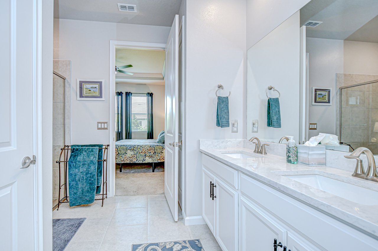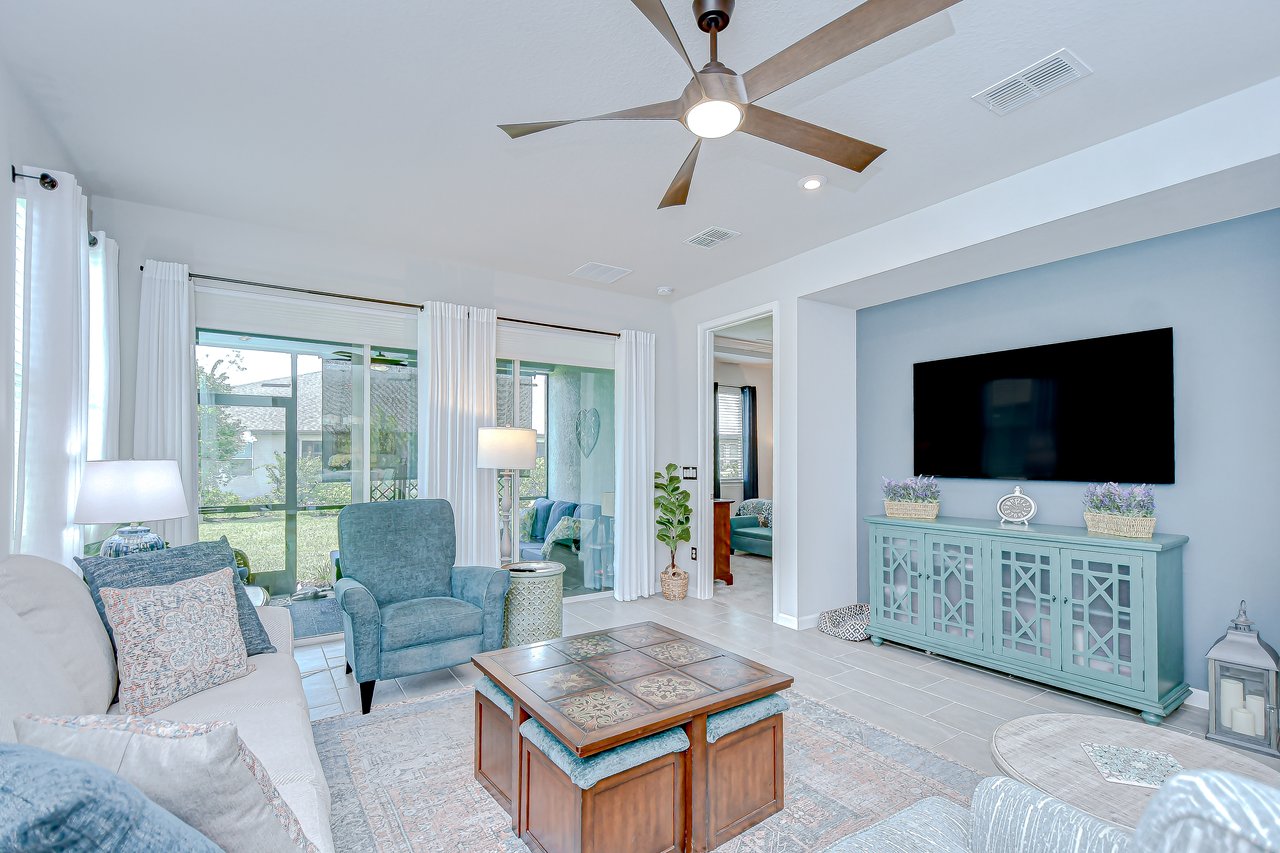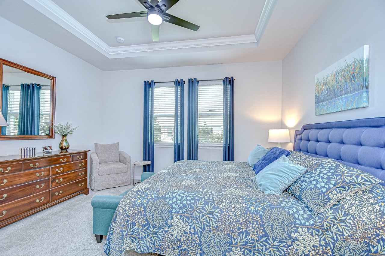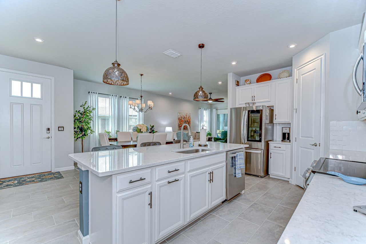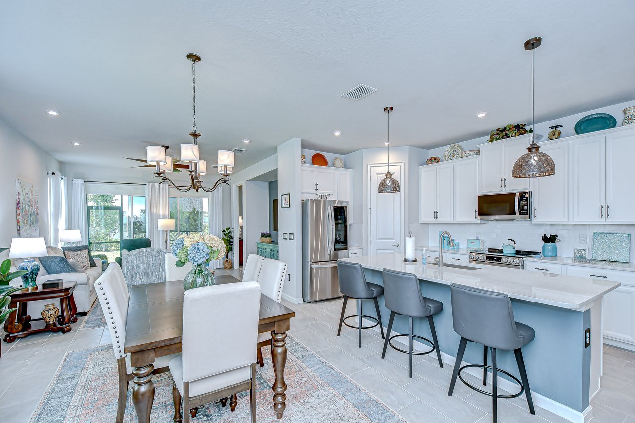Experience refined living in this luxury villa nestled within Sun City Center's exclusive 55+ gated community, La Paloma Preserve. You're going to LOVE this 2023-built Mattamy home with 3 bedrooms and 2 bathrooms, offering comfort, luxury, and sophistication. The villa's prime location provides access to an active 55+ lifestyle with amenities like a beautiful community pool just a short stroll away, a pickleball court, and a nearby golf course. Enjoy the convenience of a low monthly HOA fee that includes exterior maintenance, lawn care, scheduled exterior painting, and even future roof replacement through the community's reserve fund--providing exceptional value and peace of mind. This rare end unit boasts a large side yard, tropical landscaping, and a brick paver driveway. Inside, the impeccable design features a split floor plan with a bonus den graced with glass French doors, tray ceiling, high ceilings throughout, 8-foot interior doors, and a remote controlled shade over the great room triple slider, creating an open atmosphere complemented by luxurious upgrades. Premium fixtures, state-of-the-art appliances, and fresh interior paint enhance the inviting ambiance, while the expansive yard offers outdoor relaxation and entertainment. The chef's kitchen features upgraded appliances and custom pull-out drawers for added storage and organization. The open floor plan allows all the main level areas to be in close proximity to each other, all while not losing out on ample space. The den is the perfect space for a media or game room, gym, or home office. The primary suite features large windows, and a spa-like en-suite with a large shower, a huge walk-in closet, and a dual sink vanity. The screened patio provides a private retreat for alfresco dining or unwinding in the Florida breeze. Ample storage solutions and a whole-house water filtration system and water softener add to the property's appeal. Ready for immediate enjoyment, this turnkey villa invites you to experience elevated living in one of Florida's most sought-after destinations. Don't miss the opportunity to make this property your own and embark on a new chapter of luxurious living in paradise.