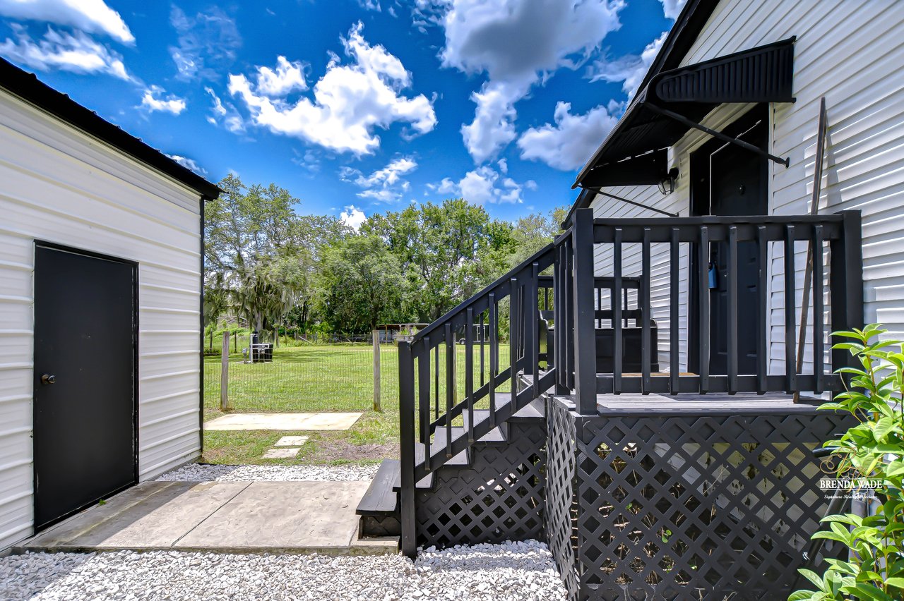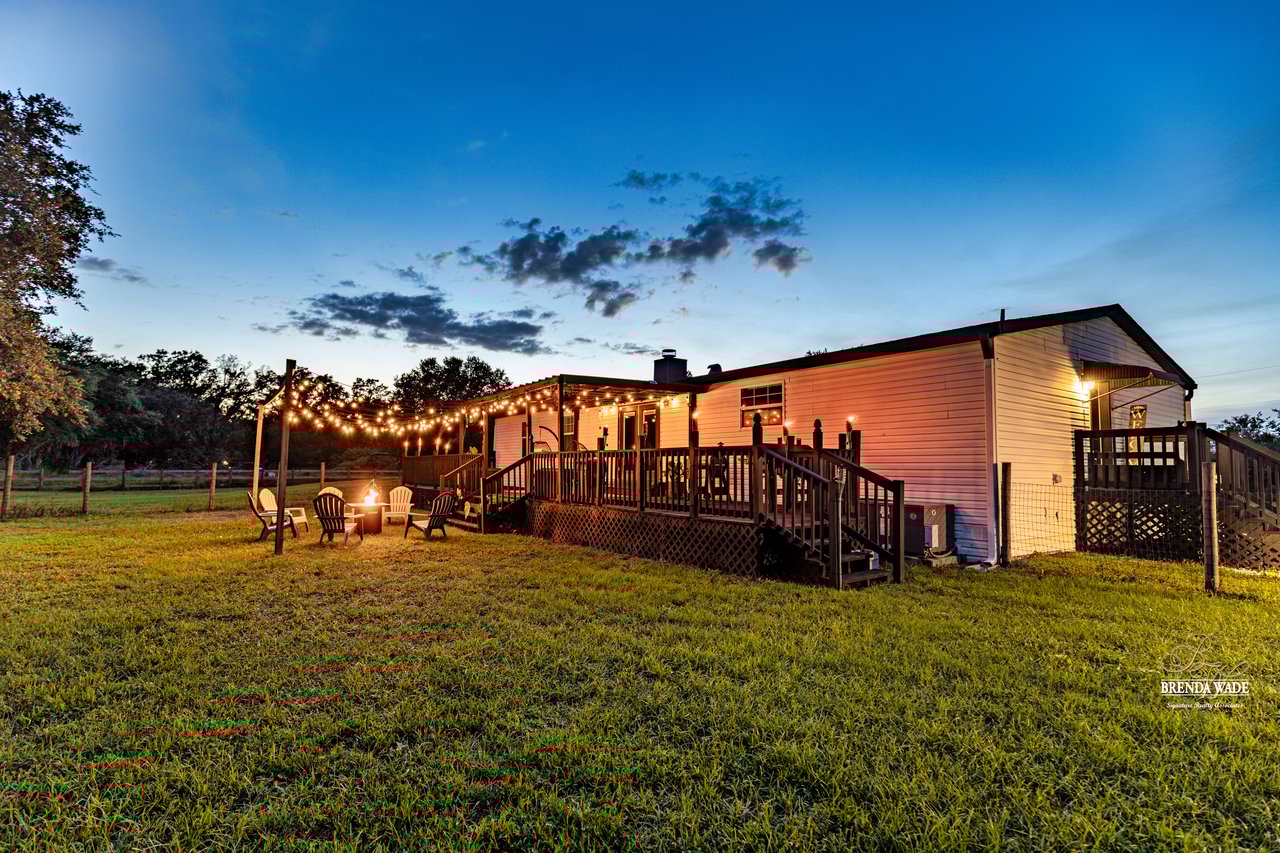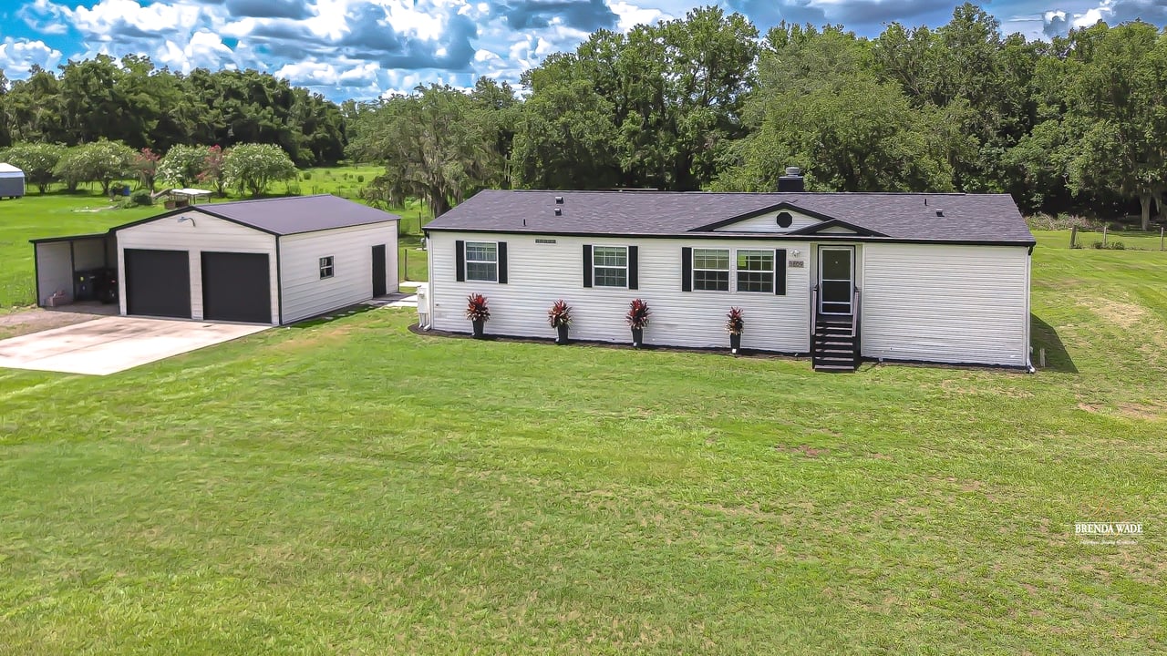 Looking for the perfect blend of modern updates, timeless character, and serene country living? Welcome to your private escape--tucked away at the end of a peaceful road on 1.51 acres of high and dry land with no HOA and no CDD. This beautifully updated farmhouse-style retreat is anything but ordinary. Thoughtfully reimagined inside and out, this Southern charmer offers the ideal mix of charm, comfort, and functionality--making it a true rare find. A new AC unit was installed in 2022, followed by a new roof and hybrid water heater in 2023, and fresh paint in 2024 on the home, detached garage, and the 40-foot steel storage container--custom-painted to match. New vinyl plank flooring was added in the guest bedrooms, primary closet, and garage, and you'll find no carpet anywhere for easy cleaning and a seamless flow throughout. In 2024, lighting fixtures and cabinet hardware were tastefully updated, adding to the elevated look and feel of the interior. As you step through the front door, you're greeted by a spacious, light-filled living room at the front of the home--complete with custom built-in bookshelves, a beautiful wood-burning fireplace with an eye-catching mantle, and freshly painted shiplap that adds character and warmth. The heart of the home is a dream kitchen designed for both beauty and function, featuring granite countertops, a farmhouse sink, subway tile backsplash, custom wine rack, dry bar area, a large center island with bar seating, and Samsung smart white glass refrigerator and microwave (2024). A bright and open dining area just off the kitchen is framed by French doors leading to a large, freshly painted back deck that's perfect for entertaining or enjoying quiet evenings outdoors. The spacious primary suite includes a bonus room tucked behind French doors--ideal as a home office, nursery, or private retreat--along with a large walk-in closet and en-suite bath featuring dual sinks, generous cabinetry, a garden tub, and a brand-new walk-in shower (2025). Two secondary bedrooms are located on the opposite side of the home and share a well-appointed second bathroom with granite vanity, subway tile backsplash, and a modern rectangular sink. Every inch of this home has been thoughtfully improved--from the refinished and textured drywall that eliminates the seam strips commonly seen in modular homes, to the custom shelving found in the laundry room, living room, and bedrooms. Crown molding and tall baseboards with shoe molding add a custom touch throughout, giving the entire home a site-built feel. Outside you'll find a 22x26 detached garage/workshop with electric and new vinyl flooring, a 40-foot painted storage container, a shed, a chicken coop, and plenty of space to park toys, RVs, or even bring animals with the cross-fenced layout. You're just minutes from Keel & Curley Winery--known for its blueberry wine, craft beer, and farm-to-table dining--and the Florida Strawberry Festival, a beloved annual event that draws visitors from across the state to celebrate Plant City's rich agricultural roots. With quick access to I-4, this location offers both peaceful seclusion and convenient connection to Tampa, Lakeland, and beyond. Schedule your private tour today!