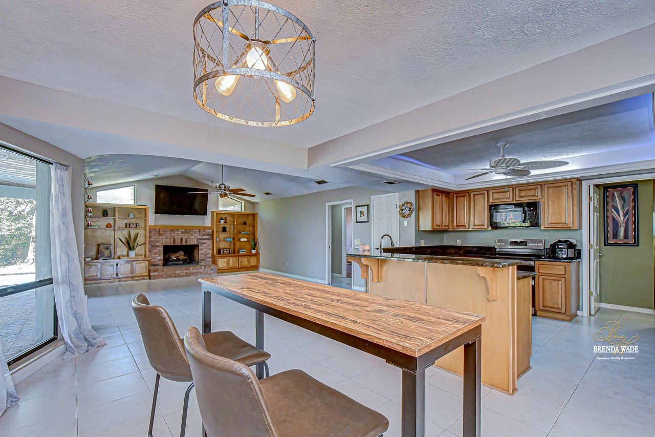 Welcome to Buckingham, a well-established community in Valrico with low HOA fees and NO CDD! This home has been thoughtfully updated for modern living, including a roof replaced in 2019, exterior painted in 2024, 2024 A/C, 2025 ceiling fans, 2023 stove top range, 2021 pool pump & heater, 2025 pool transformer, and a heated pool resurfaced in 2022. From the moment you arrive, mature landscaping and an inviting walkway leading to the double-door entry--with an oversized window above--set the tone for the light-filled elegance inside. Step through the front doors to soaring ceilings, neutral paint, and abundant natural light that accentuate the spaciousness throughout. The formal living room features its own sliders to the covered patio with views of the sparkling swimming pool, while the adjacent formal dining room, highlighted by a stunning picture window, is perfect for entertaining. A conveniently located half-bath completes the front of the home. The chef-inspired kitchen is the heart of the home, boasting a tray ceiling, granite countertops, breakfast bar seating, ample cabinetry, and the newer stove top range, flowing seamlessly into the dinette and family room. The family room is generous in size, featuring a wood-burning fireplace, built-in shelves, and another set of sliders with plantation shutters leading to the lanai. One of the standout features of this home is the thoughtfully designed split floor plan. The primary suite is a private retreat with high ceilings, sliders to the lanai, dual closets, and a luxurious en-suite with separate vanities, a jetted soaking tub, and a walk-in shower. On the opposite side of the home, three generously sized bedrooms share a full bathroom. Step outside to the expansive backyard with the beautiful heated pool and spa, resurfaced in 2022. The covered paved patio provides ample space for gatherings while overlooking the lush yard, complete with mature oak trees. Extended pavers offer the perfect space for an outdoor firepit, making this backyard ideal for entertaining and relaxation. This home truly has it all--style, space, and location! Don't miss your chance to make it yours. Schedule a private tour today and get ready to move right in!