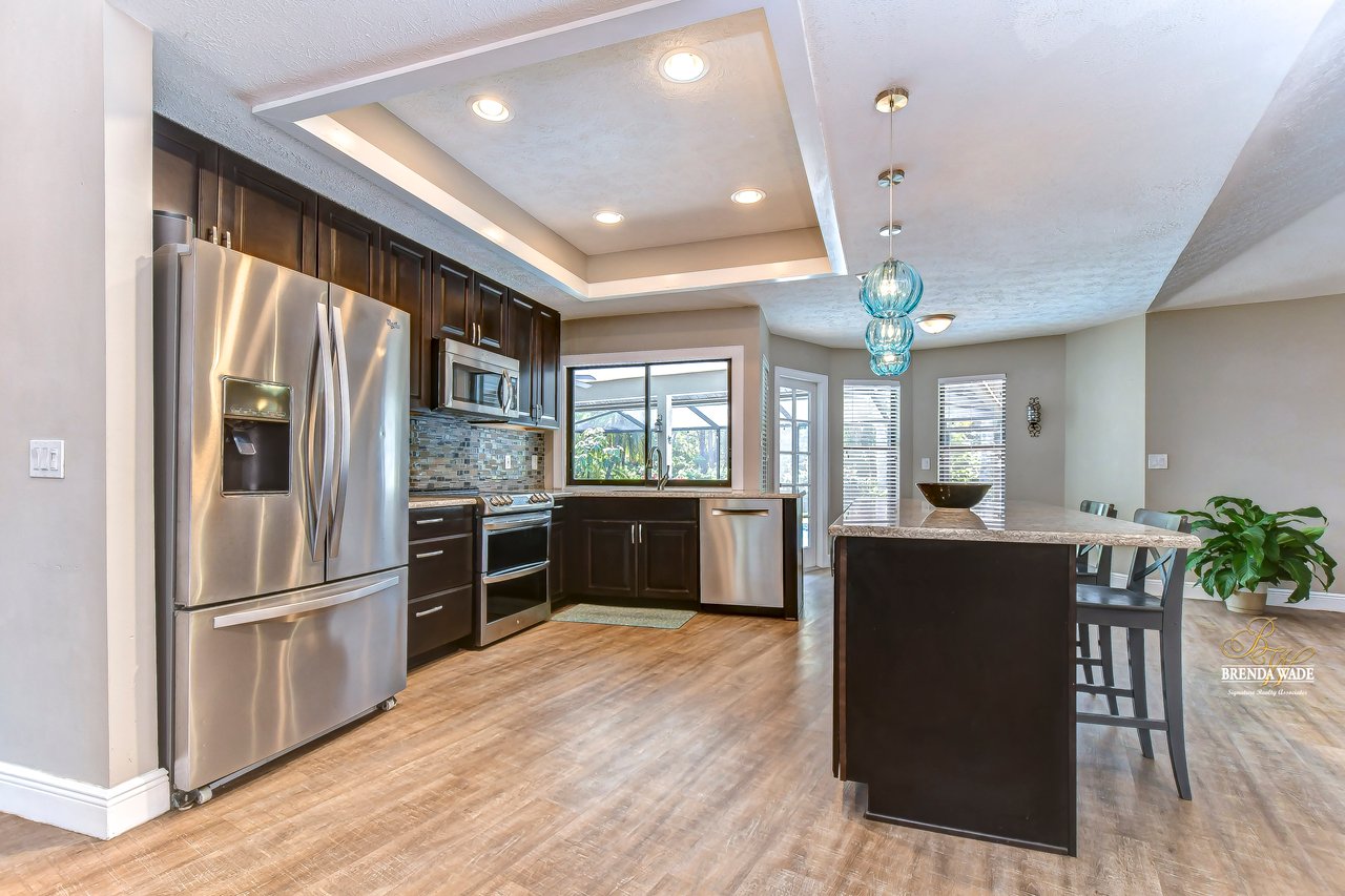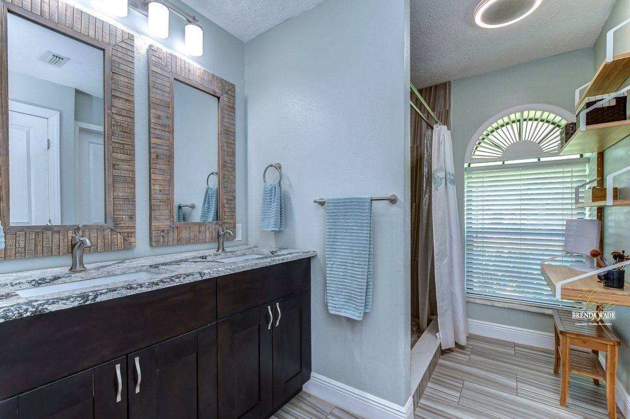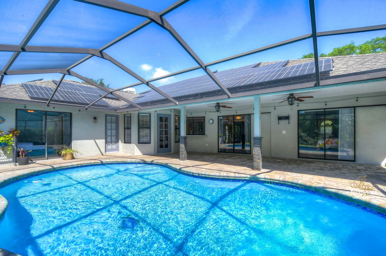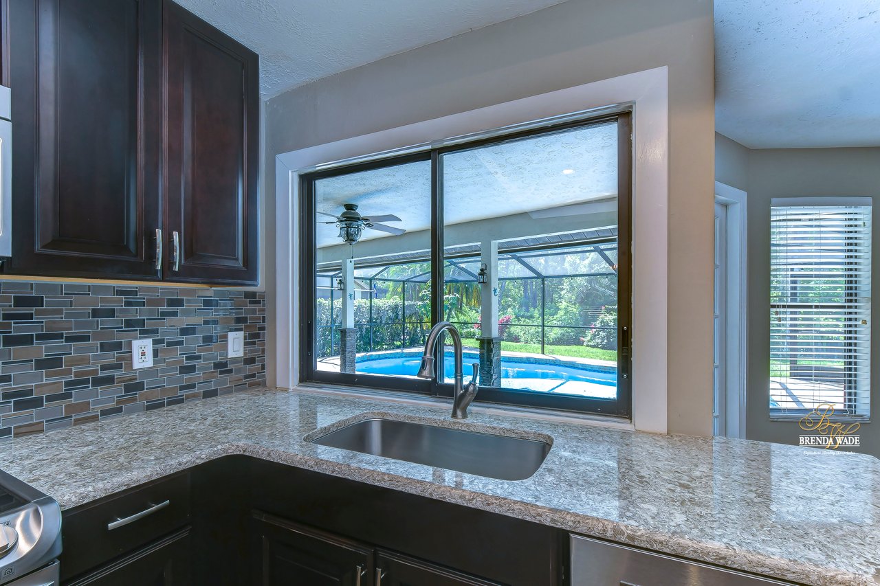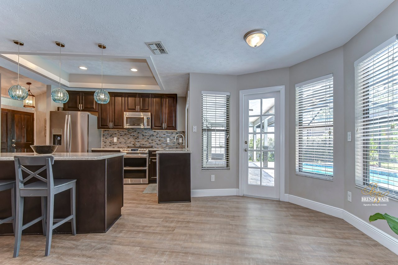 | Gorgeous conservation lot located in the desirable Bloomingdale East neighborhood! This home features gorgeous landscaping and beautiful brick trim that welcome you home! Another amazing feature of this home is that is comes equipped with a tier two whole house solar system that can make your electric bills less than $25 a month! When you enter through the double wood doors, you step on to the luxury vinyl plank that flows throughout the living area of the home! The family room with pocket sliders, features views of the lanai and pool! Just off the entry way is a formal dining room with half-moon window for inviting in the natural Florida light. The kitchen has an abundance of room to cook, bake, and entertain! Featuring stainless appliances including a double oven and dishwasher, Quartz countertops, and 42-inch espresso cabinets, your guests will not be disappointed! The open floor plan leads to the living room with large, brick wood-burning fireplace and tray ceiling. The primary bedroom is a retreat! With tray ceiling and double pocket sliders leading out to the pool you will enjoy relaxing with this gorgeous view. Massive walk-in closet with extra linen closet provides for added storage space! The en-suite bath is a place where you will find yourself spending extra “me” time. With quartz countertops, double sinks, closet with built-ins and remodeled rain shower, you will never want to leave this oasis! A secondary bedroom sits at the front of the home with luxury vinyl flooring, half-moon window and double door entry! As you move through the home your eyes will be drawn to the wide baseboards flowing throughout! The pool bath is shared between two secondary bedrooms and hosts gorgeous tile flooring and extra linen closet! A wonderful feature of this home is a secondary bedroom with large sliders leading to the lanai and pool! As well as walk-in closet and new carpeting! Guests can have wonderful views while relaxing in this large room! The final bedroom in this home features a large walk-in closet! The laundry room in this home comes loaded with so much storage and granite countertops, you may actually enjoy doing the laundry! The greatness doesn’t stop there, this home features a newly renovated lanai with remarcited heated pool that hosts a bench and gorgeous tile accents with covered lanai and pavers that overlooks luscious conservation! This pool features a new pump, filter and heater. A true gem of a home in a coveted neighborhood. View this home virtually here: my.matterport.com/show/?m=4FKqfchGhBX&mls=1 |
