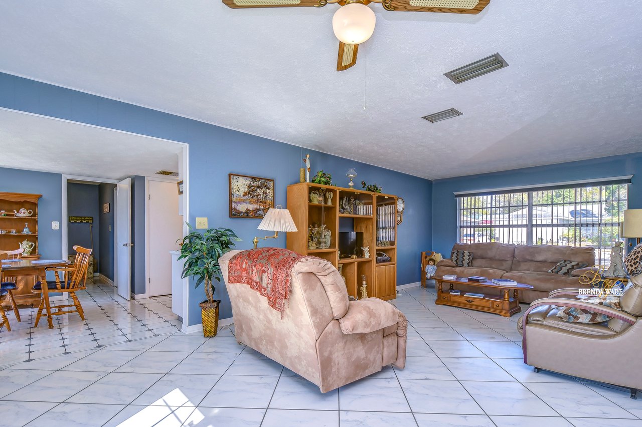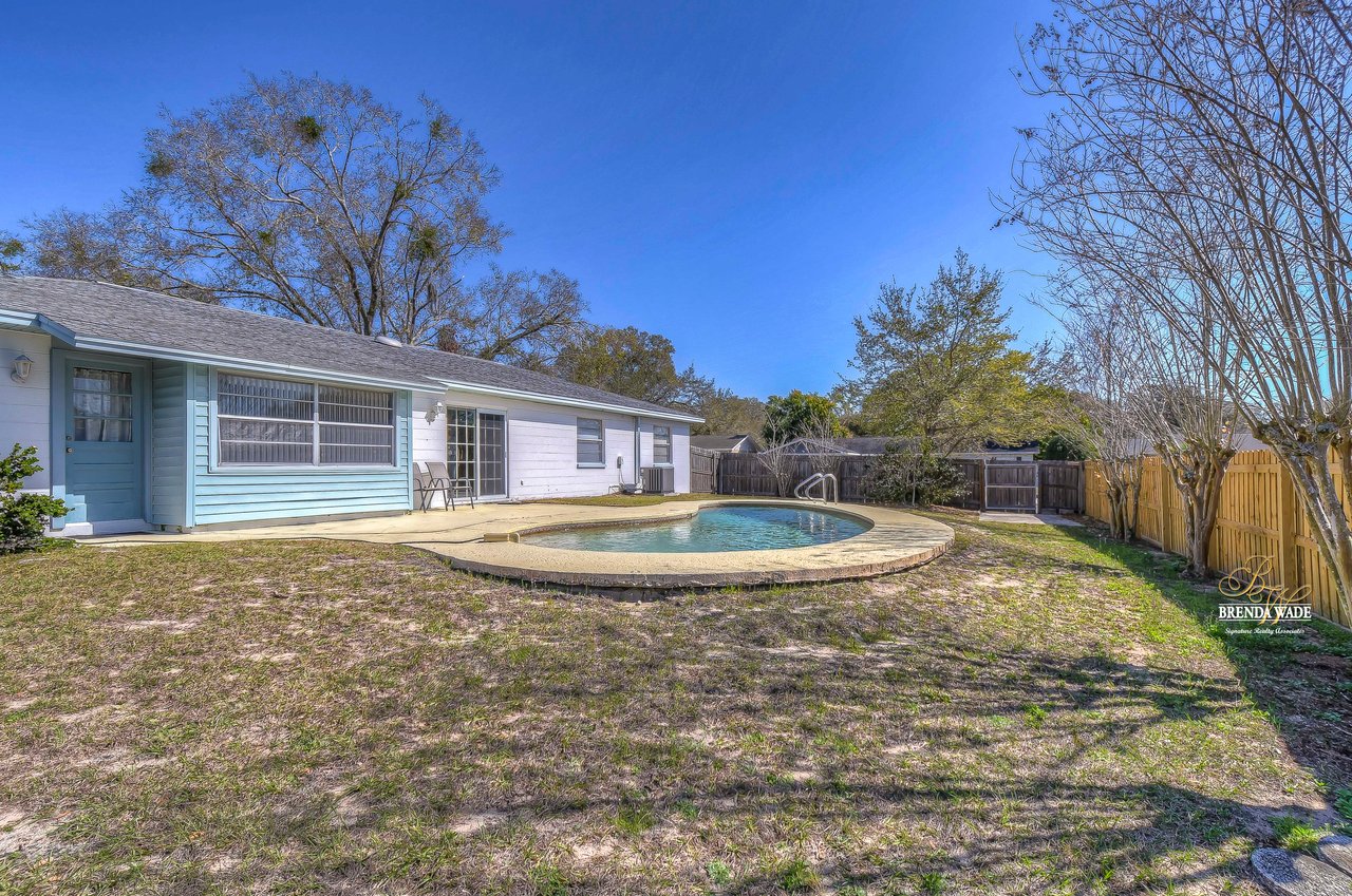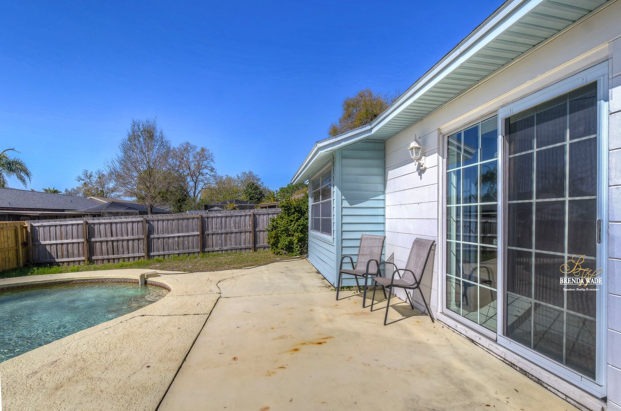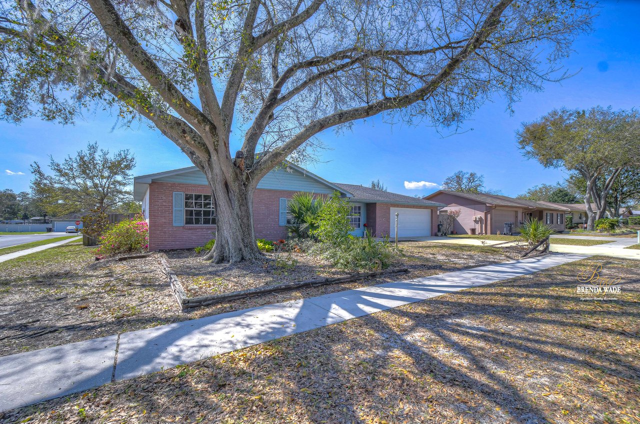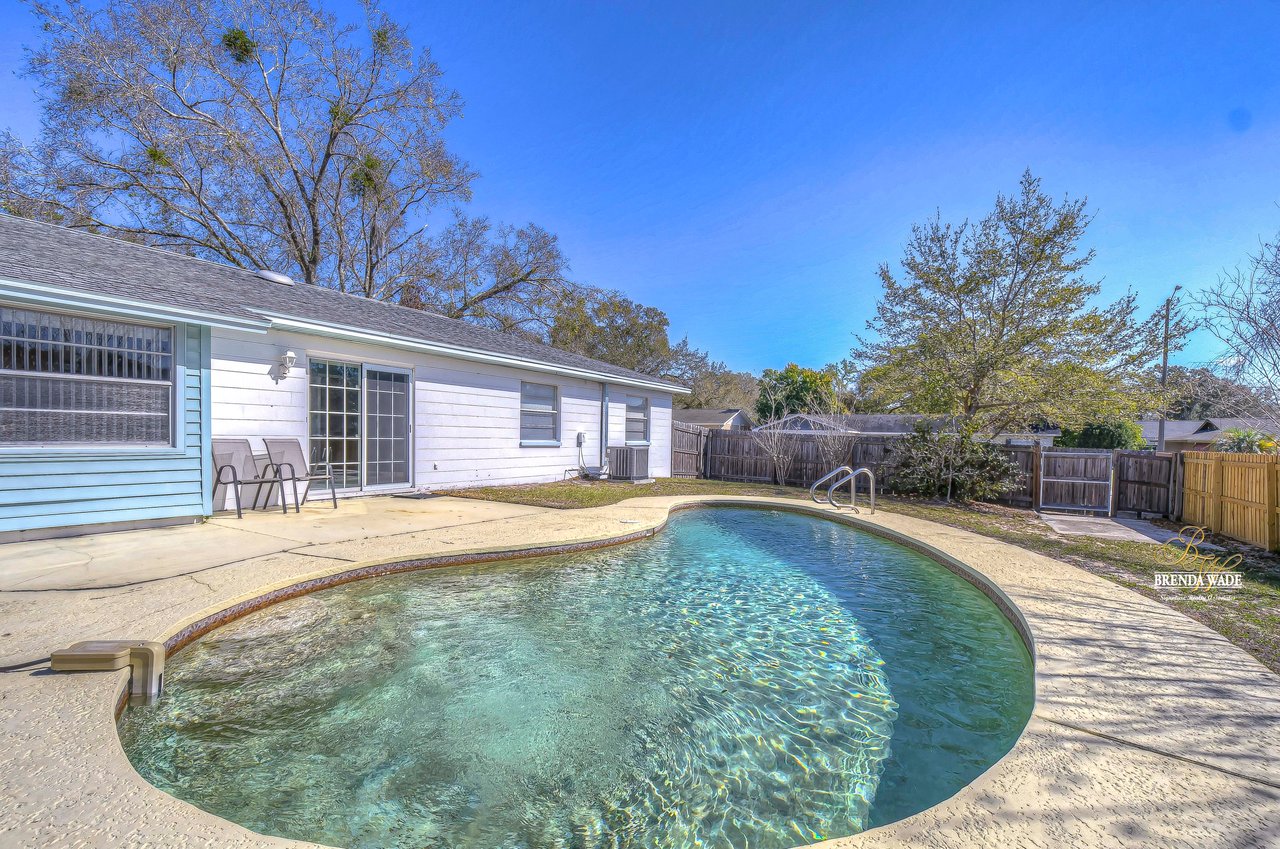 **SELLER TO HAVE A NEW ROOF INSTALLED**This corner lot POOL home is oh so desirable and waiting for you! As you approach the home you will love the towering oak tree, brick exterior, and charming front porch which ties together perfectly to welcome you inside! The home is situated on a corner lot, which not only adds to its appeal but also provides additional privacy and space! As soon as you step inside, you'll be greeted by a bright and spacious living area that is perfect for relaxing and unwinding after a long day. The open living area allows for easy flow, making it the perfect space for entertaining guests. There is a set of sliders that allows for a pretty pool view! The kitchen is so pretty with white cabinets and appliances, as well as a closet pantry and bright breakfast nook with a picturesque window! The primary suite features a double closet and an attached, private bathroom! There are 3 additional bedrooms of nice size sharing another bathroom! With 4 bedrooms and 2 bathrooms, this home is perfect for a growing family or anyone who loves to have guests over. The bedrooms are spacious and comfortable, providing a peaceful retreat after a busy day! And let's not forget the backyard! Take a dip in the pool with a large fenced yard so privacy will be all yours! This property boasts a large, fenced-in yard that is perfect for kids and pets to play. You'll love spending time outside in the beautiful Florida sunshine, enjoying barbecues, playing lawn games, or swimming in the pool on a nice day! Located in a great location, you will love being central to all of the best shopping and dining in the area and just a quick skip to I-75! This is a winner, come see it today while you can! View the home virtually with this link: my.matterport.com/show/?m=LuuFEEtDeo5&mls=1