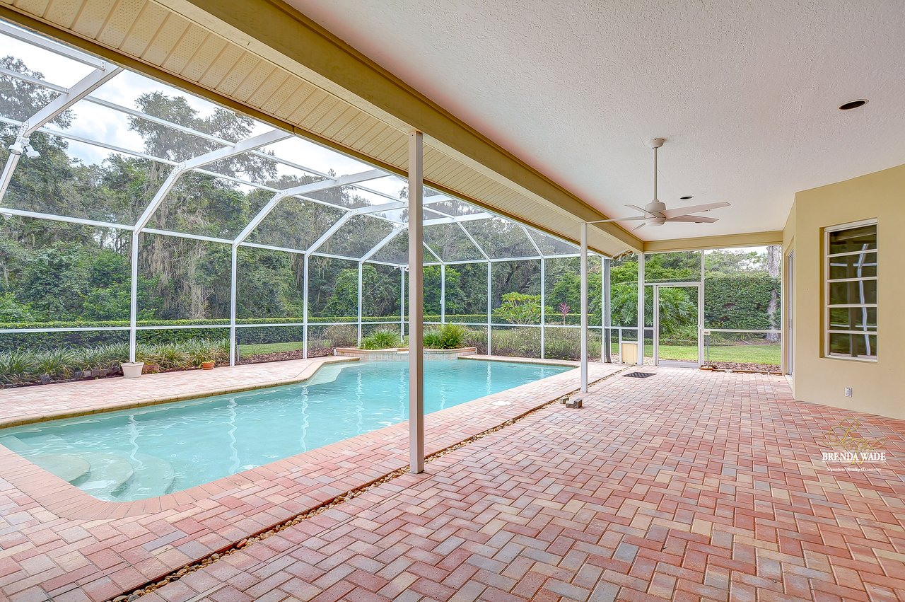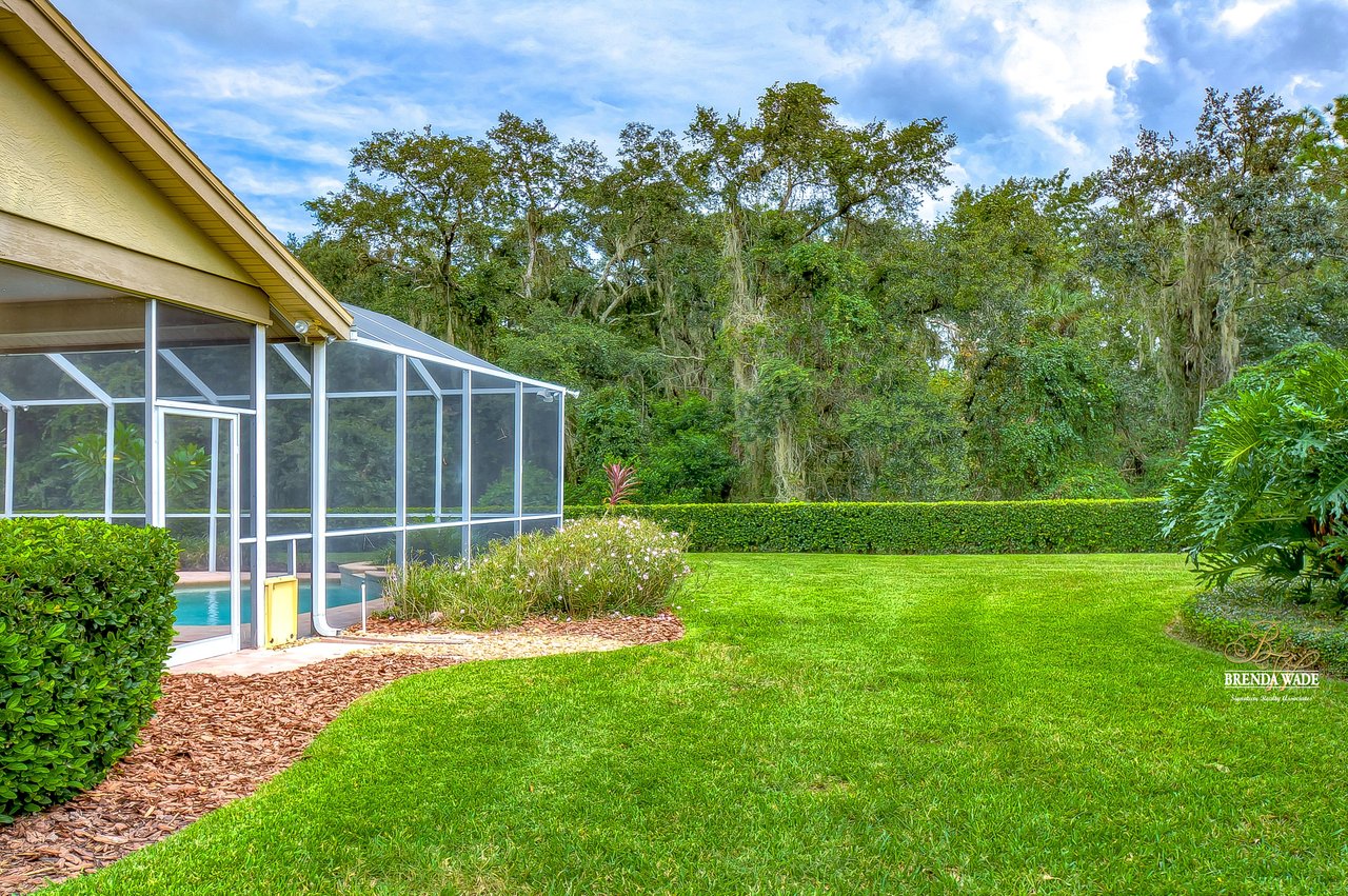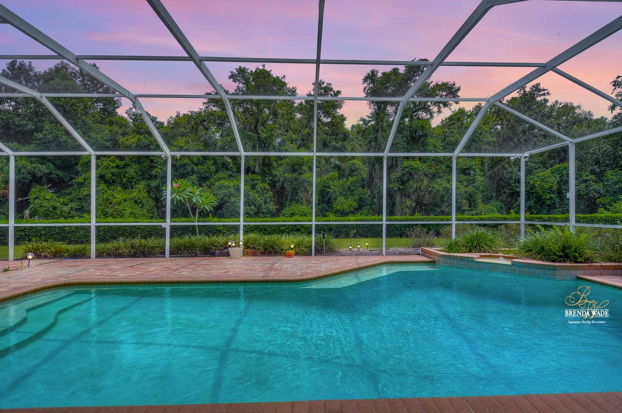 Welcome to this gorgeous 4-bedroom, 2.5-bath, pool home with no backyard neighbors in the sought-after River Hills Country Club Community! This beauty is tucked in the Players Club on a lush mature lot on a prime cul-de-sac! Step through the front door with arched transom window above and sidelights for additional natural light! The home was recently updated with FRESH interior paint, new carpet throughout the bedrooms, and pressure-washed the exterior! The living areas all boast high ceilings and tile flooring, so cleaning will be a breeze! The formal dining room features plantation shutters and chair rail molding and opens up to the formal living room with views of the pool and a double-sided fireplace that is also accessible to the spacious family room! You will love having a set of sliders to the pool and lanai so indoor/outdoor entertaining can become your favorite activity! The family room opens to the grand kitchen with a lengthy island with extra storage, plenty of counter and cabinet space, pantry, and a large breakfast nook with plantation shutters! The master suite is a DREAM with plenty of natural light from the windows and sliding glass doors, dual walk-in closets, and a charming en-suite with double sinks, bathtub, and walk-in shower! This functional split floor plan features two additional bedrooms on the other side of the home sharing a second full bath! There is a fourth secondary bedroom at the front of the home with double closets that could make the perfect home office! The whole family is going to LOVE the backyard with a pavered screened lanai and sparkling swimming pool! There is a generously sized covered seating area, as well as a spacious area to entertain near the pool! You will adore the privacy the home offers in your spacious backyard with the privacy shrubs and wooded views! River Hills is the place to live! They offer great community amenities, a private golf course, Clubhouse, tennis courts, friendly neighbors, and zoned for some of the best schools in Hillsborough County! This beautiful home is not going to last for long, come take a look today!
