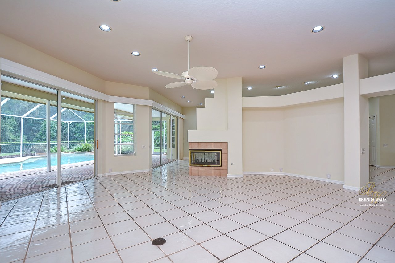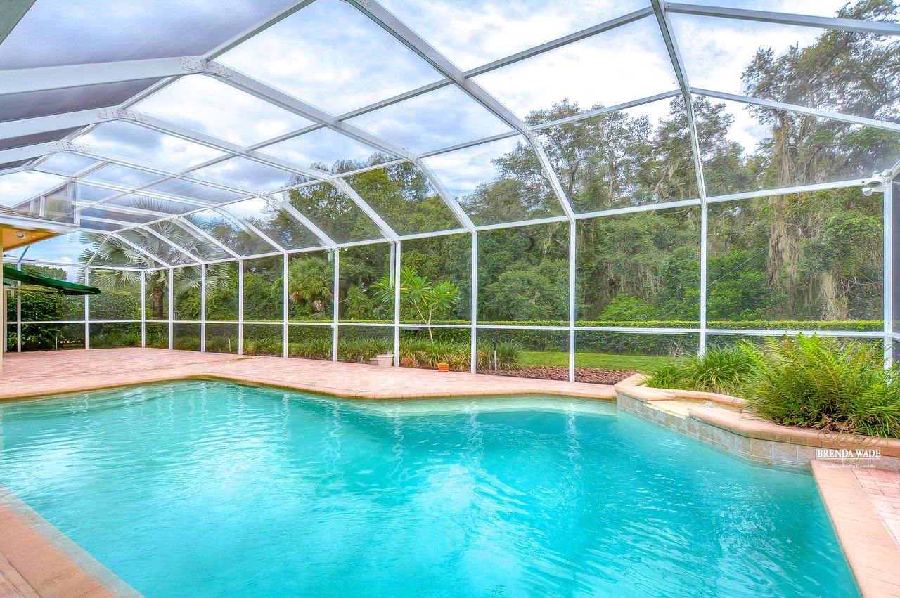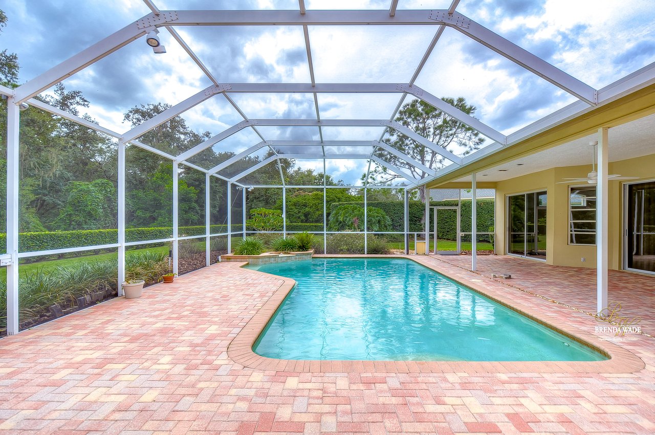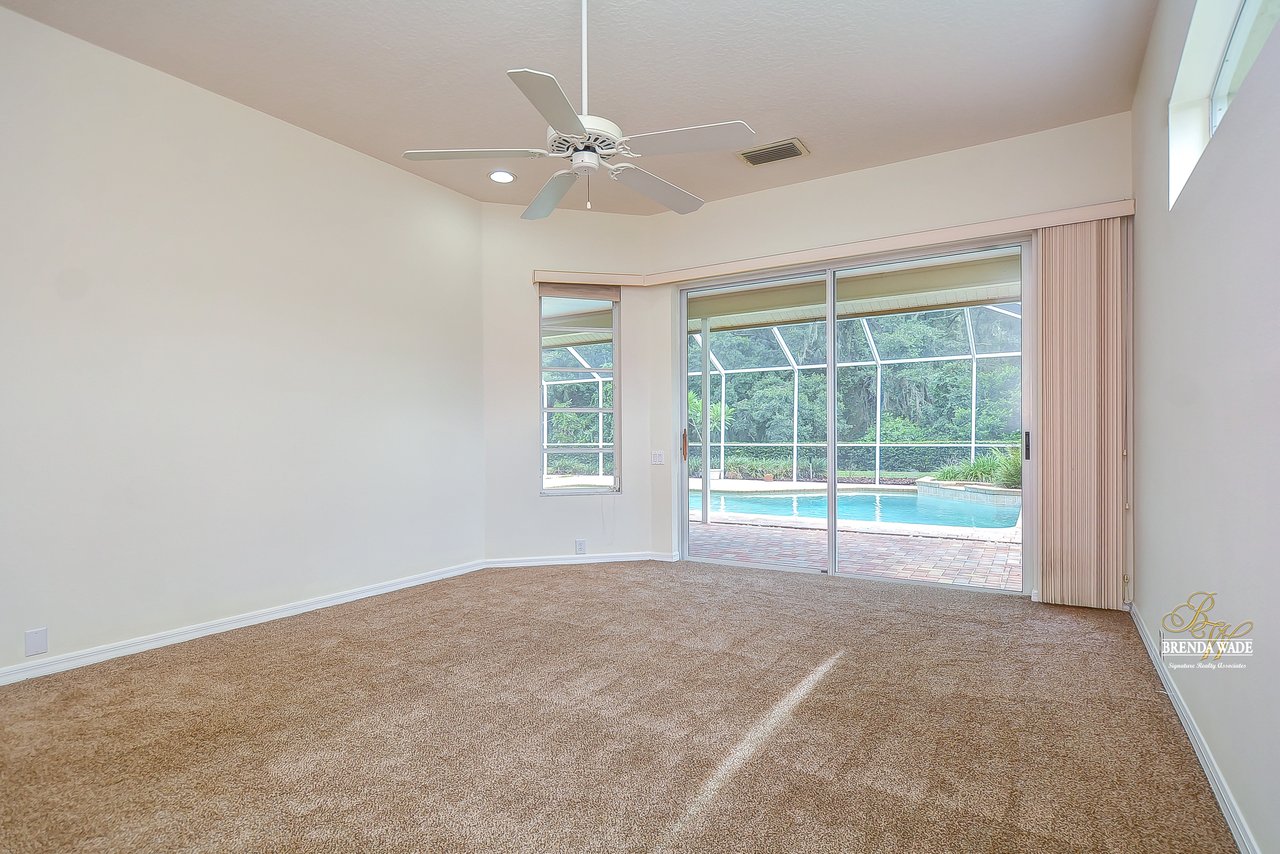 Welcome to this gorgeous 4-bedroom, 2.5-bath, pool home with no backyard neighbors in the sought-after River Hills Country Club Community! This beauty is tucked in the Players Club on a lush mature lot on a prime cul-de-sac! Step through the front door with arched transom window above and sidelights for additional natural light! The home was recently updated with FRESH interior paint, new carpet throughout the bedrooms, and pressure-washed the exterior! The living areas all boast high ceilings and tile flooring, so cleaning will be a breeze! The formal dining room features plantation shutters and chair rail molding and opens up to the formal living room with views of the pool and a double-sided fireplace that is also accessible to the spacious family room! You will love having a set of sliders to the pool and lanai so indoor/outdoor entertaining can become your favorite activity! The family room opens to the grand kitchen with a lengthy island with extra storage, plenty of counter and cabinet space, pantry, and a large breakfast nook with plantation shutters! The master suite is a DREAM with plenty of natural light from the windows and sliding glass doors, dual walk-in closets, and a charming en-suite with double sinks, bathtub, and walk-in shower! This functional split floor plan features two additional bedrooms on the other side of the home sharing a second full bath! There is a fourth secondary bedroom at the front of the home with double closets that could make the perfect home office! The whole family is going to LOVE the backyard with a pavered screened lanai and sparkling swimming pool! There is a generously sized covered seating area, as well as a spacious area to entertain near the pool! You will adore the privacy the home offers in your spacious backyard with the privacy shrubs and wooded views! River Hills is the place to live! They offer great community amenities, a private golf course, Clubhouse, tennis courts, friendly neighbors, and zoned for some of the best schools in Hillsborough County! This beautiful home is not going to last for long, come take a look today!