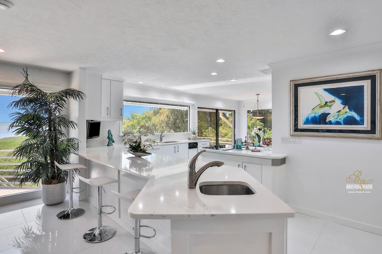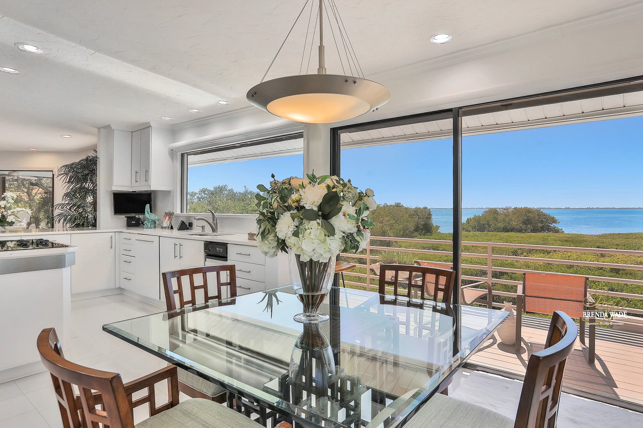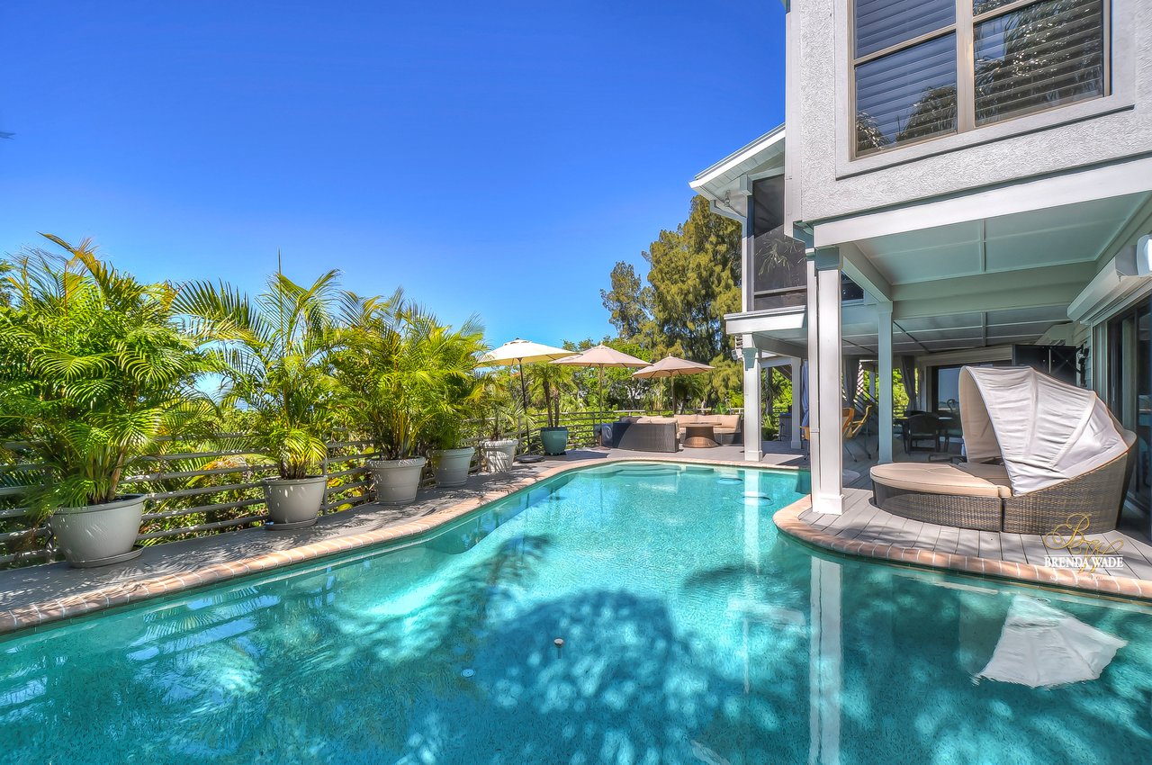 Your hidden paradise awaits you with BREATHTAKING VIEWS of the Sarasota Bay! Tucked at the end of the cul-de-sac you will see the extended, brick pavered driveway with lush landscaping that leads you to this magnificent hideaway home with privacy and waterfront views! $250,000 of recent upgrades in the last 6 months include a 3-story elevator with dual entrance, complete kitchen, living, dining, and family room remodel, interior and exterior painting, 24-in porcelain tile flooring, all just in 2021! Spend your days on the large Bayview deck with a glistening PebbleTec swimming pool, spa, covered seating area, and endless space to entertain loved ones! As you step through the stained glass, double front door, and into this grand estate you will instantly cherish the remarkable 180-degree view of the Sarasota Bay and the open concept design that flows throughout! Have we mentioned how private this estate is?! This home is P E R F E C T! There is a stunning wet bar and two sets of sliders that open to the pool deck; an entertainers' dream! A custom executive office is the perfect place to work from home with built-in desk and tons of built-in cabinetry! The choice is yours to take the elevator or stairs to the 3rd level where the view might be even better if that’s possible! Once you hit the top floor you will never want to leave this dream home with a bright and airy design! The remodeled, lavish kitchen offers Quartz counters, built-in GE Monogram appliances including warming drawer, NEW downdraft vent, subway tile backsplash, and double sink where you notice the picture-perfect view to look out at from the kitchen window! The breakfast nook has floor-to-ceiling windows on one wall and sliding glass doors on the other that guide you to the third-level deck! The dining room is flooded with natural light and has access to the deck and screened patio! The living room has vaulted ceiling with beam accents, and pocket sliders where you can open up the living area to the screened and covered patio with travertine flooring! This really is a luxury oasis! This home was built to blend outdoor and indoor living! The owner’s retreat is secluded on one side of the home with tranquil seating area surrounded by windows, HUGE walk-in closet with custom organizers, and en-suite with dual sinks, jetted tub, walk-in shower, bidet, and private balcony! Four additional bedrooms are split between the 2nd and 3rd level, ALL with balconies or lanai access! Get your fitness on in the private home gym located on the second floor! We almost forgot to mention one of the best features that make this home so special! You can kayak or fish from your very own private dock that flows to the Bay! Drive your car into the garage on the first level where there is even more space you can utilize! You can spend time in the air-conditioned bonus room, or the second spacious room that can become the PERFECT theater! There is a designated workshop to store your tools and an EMERGENCY GENERATOR if you’re ever in need! All windows and doors have Suntek film, helping block the UV rays and keeping the inside cool! You won’t find anything quite like this home, especially with a VIEW like this! This luxury estate is one of a kind! What are you waiting for? Paradise awaits!