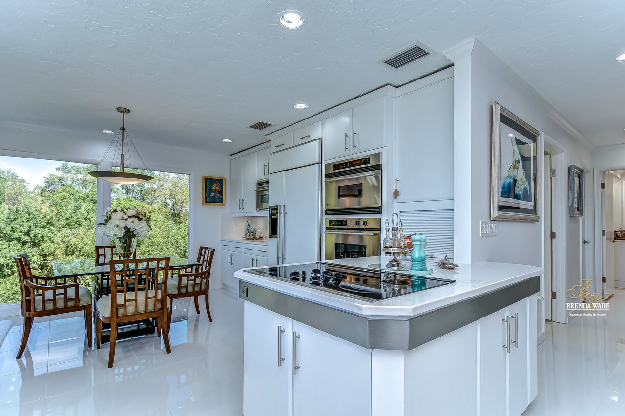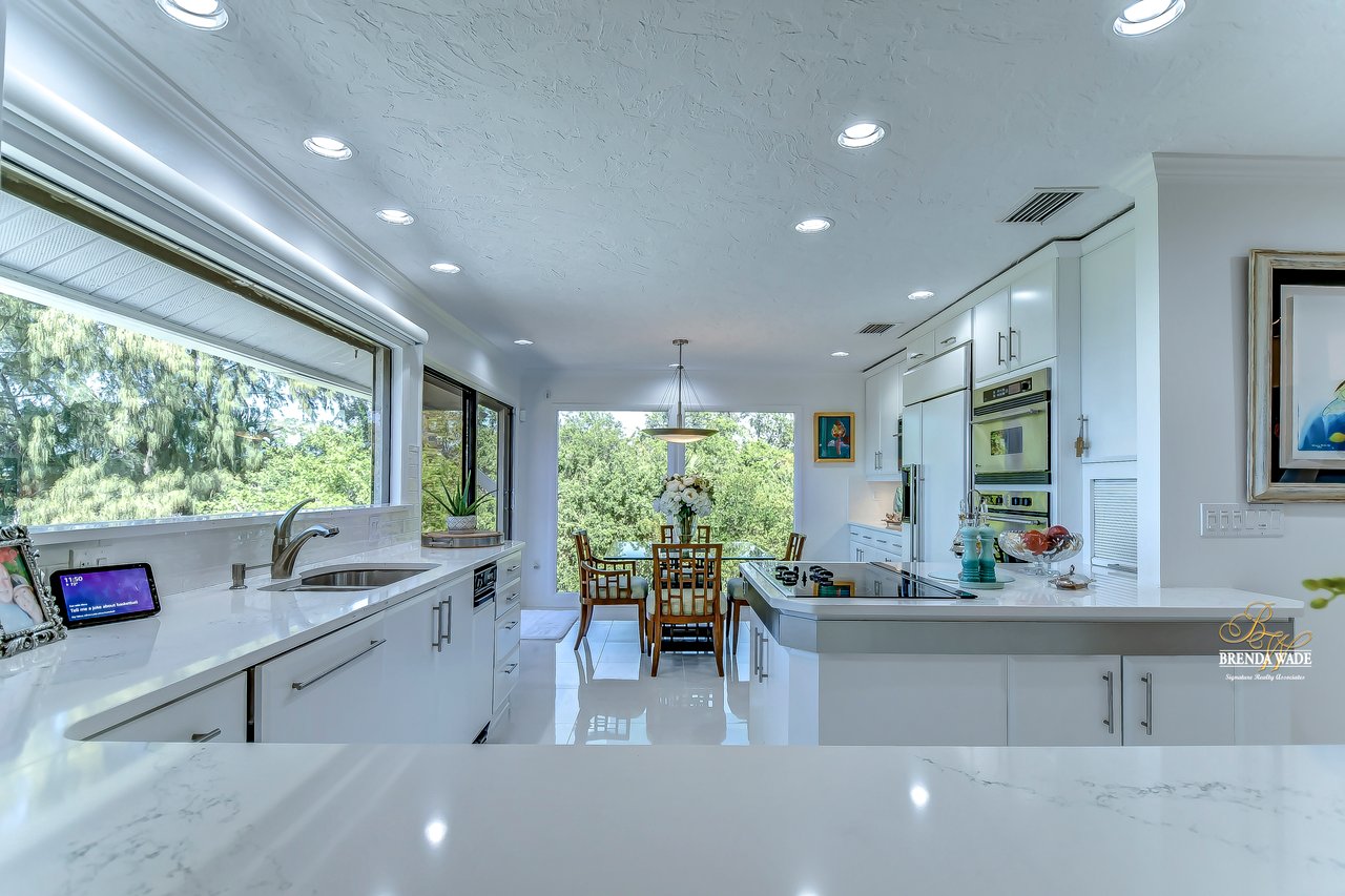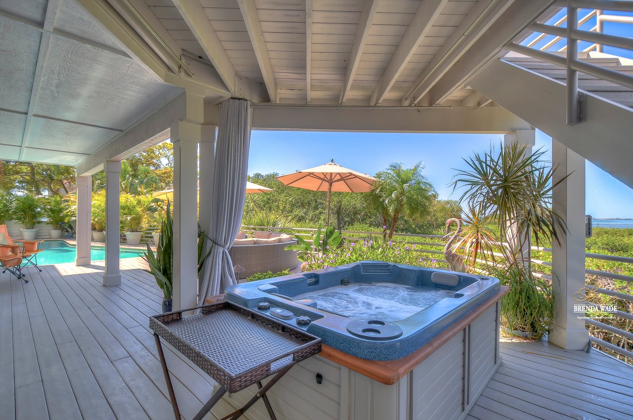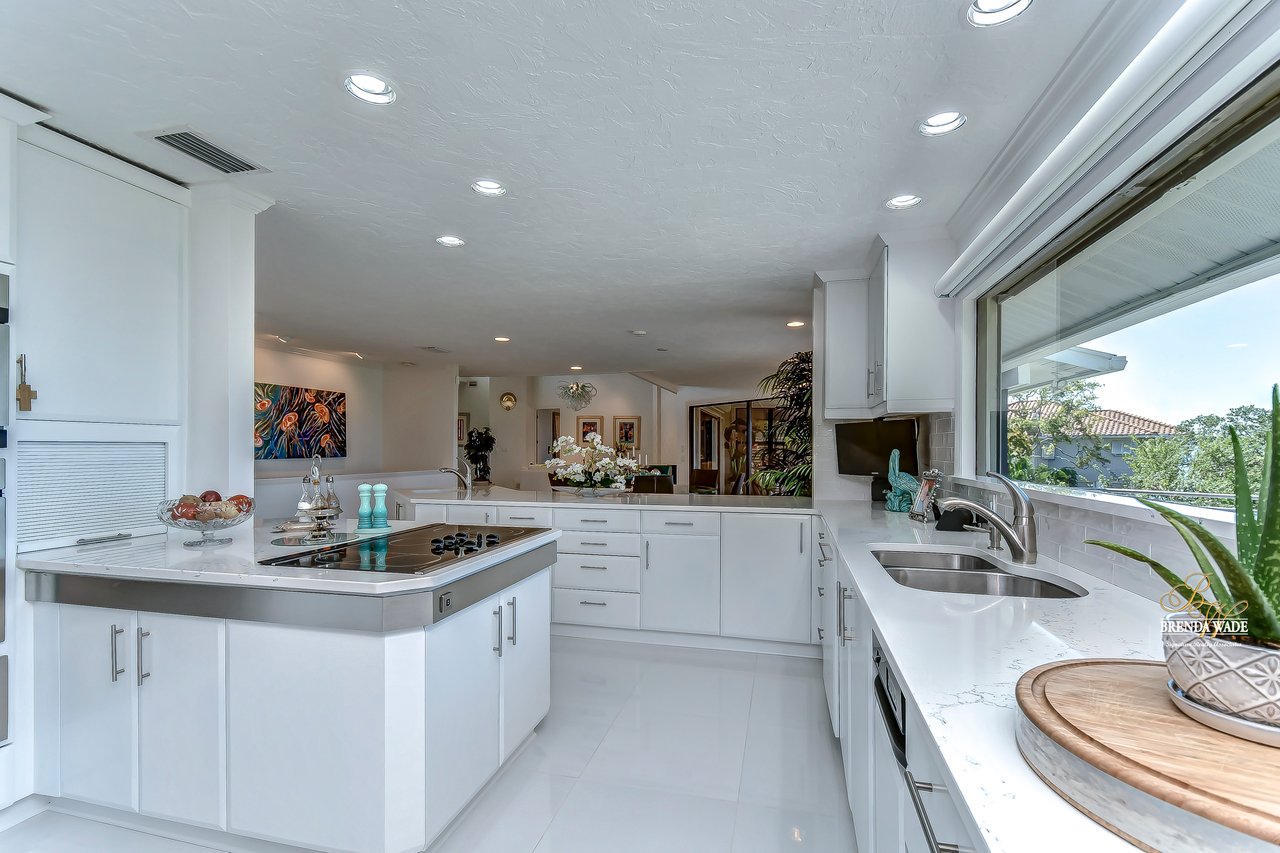 Your hidden paradise awaits you with BREATHTAKING VIEWS of the Sarasota Bay! Tucked at the end of the cul-de-sac you will see the extended, brick pavered driveway with lush landscaping that leads you to this magnificent hideaway home with privacy and waterfront views! $250,000 of recent upgrades in the last 6 months include a 3-story elevator with dual entrance, complete kitchen, living, dining, and family room remodel, interior and exterior painting, 24-in porcelain tile flooring, all just in 2021! Spend your days on the large Bayview deck with a glistening PebbleTec swimming pool, spa, covered seating area, and endless space to entertain loved ones! As you step through the stained glass, double front door, and into this grand estate you will instantly cherish the remarkable 180-degree view of the Sarasota Bay and the open concept design that flows throughout! Have we mentioned how private this estate is?! This home is P E R F E C T! There is a stunning wet bar and two sets of sliders that open to the pool deck; an entertainers' dream! A custom executive office is the perfect place to work from home with built-in desk and tons of built-in cabinetry! The choice is yours to take the elevator or stairs to the 3rd level where the view might be even better if that’s possible! Once you hit the top floor you will never want to leave this dream home with a bright and airy design! The remodeled, lavish kitchen offers Quartz counters, built-in GE Monogram appliances including warming drawer, NEW downdraft vent, subway tile backsplash, and double sink where you notice the picture-perfect view to look out at from the kitchen window! The breakfast nook has floor-to-ceiling windows on one wall and sliding glass doors on the other that guide you to the third-level deck! The dining room is flooded with natural light and has access to the deck and screened patio! The living room has vaulted ceiling with beam accents, and pocket sliders where you can open up the living area to the screened and covered patio with travertine flooring! This really is a luxury oasis! This home was built to blend outdoor and indoor living! The owner’s retreat is secluded on one side of the home with tranquil seating area surrounded by windows, HUGE walk-in closet with custom organizers, and en-suite with dual sinks, jetted tub, walk-in shower, bidet, and private balcony! Four additional bedrooms are split between the 2nd and 3rd level, ALL with balconies or lanai access! Get your fitness on in the private home gym located on the second floor! We almost forgot to mention one of the best features that make this home so special! You can kayak or fish from your very own private dock that flows to the Bay! Drive your car into the garage on the first level where there is even more space you can utilize! You can spend time in the air-conditioned bonus room, or the second spacious room that can become the PERFECT theater! There is a designated workshop to store your tools and an EMERGENCY GENERATOR if you’re ever in need! All windows and doors have Suntek film, helping block the UV rays and keeping the inside cool! You won’t find anything quite like this home, especially with a VIEW like this! This luxury estate is one of a kind! What are you waiting for? Paradise awaits!