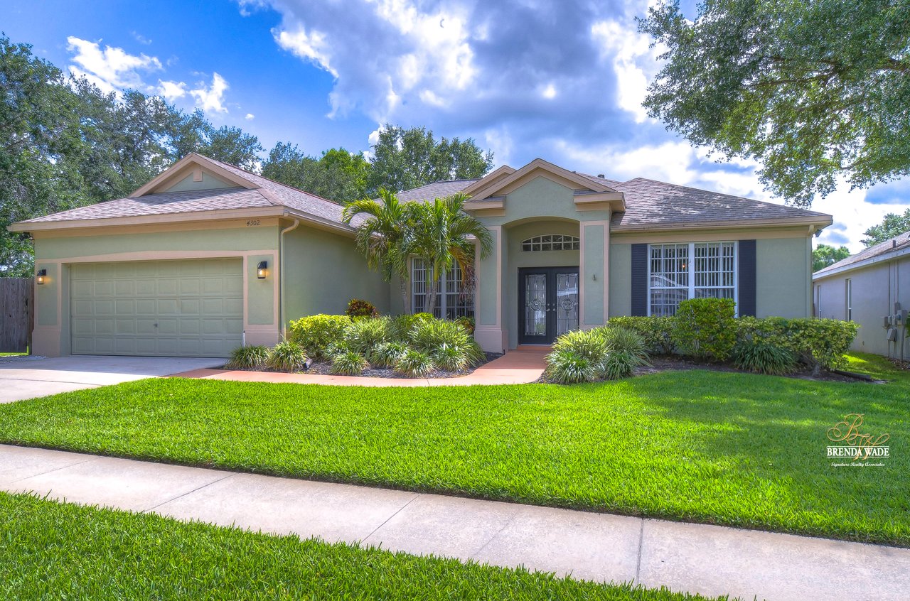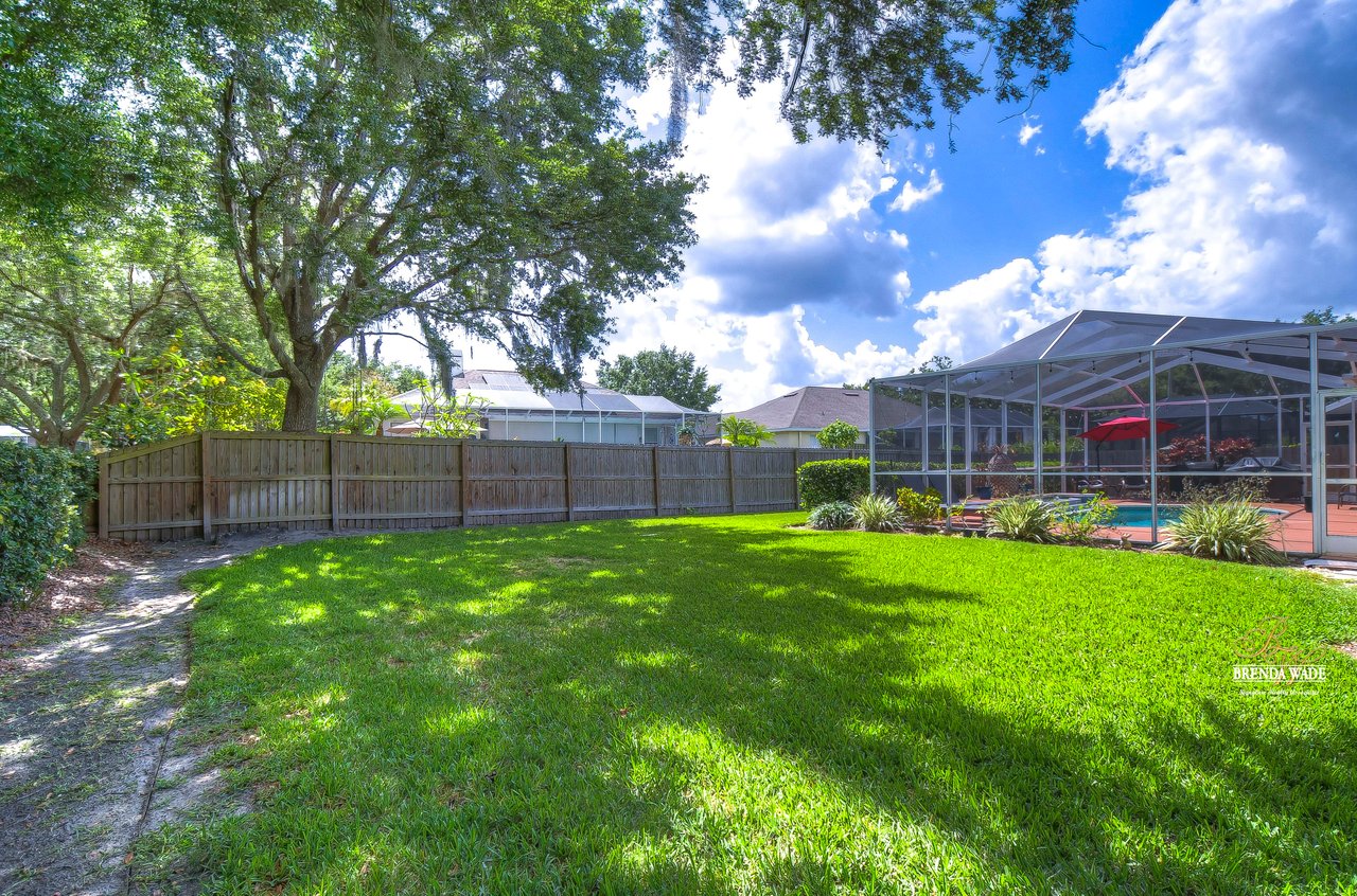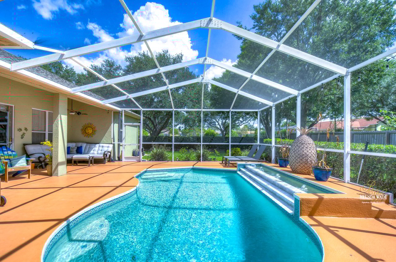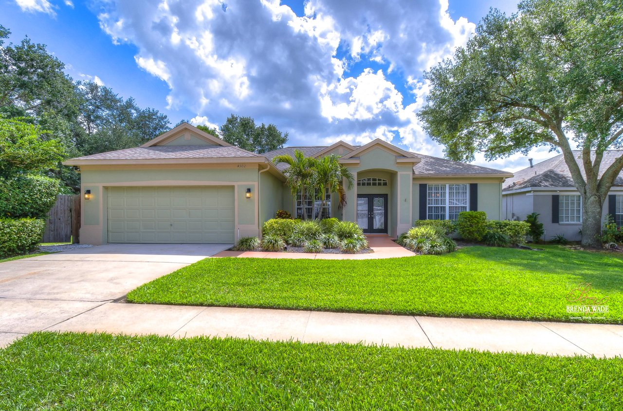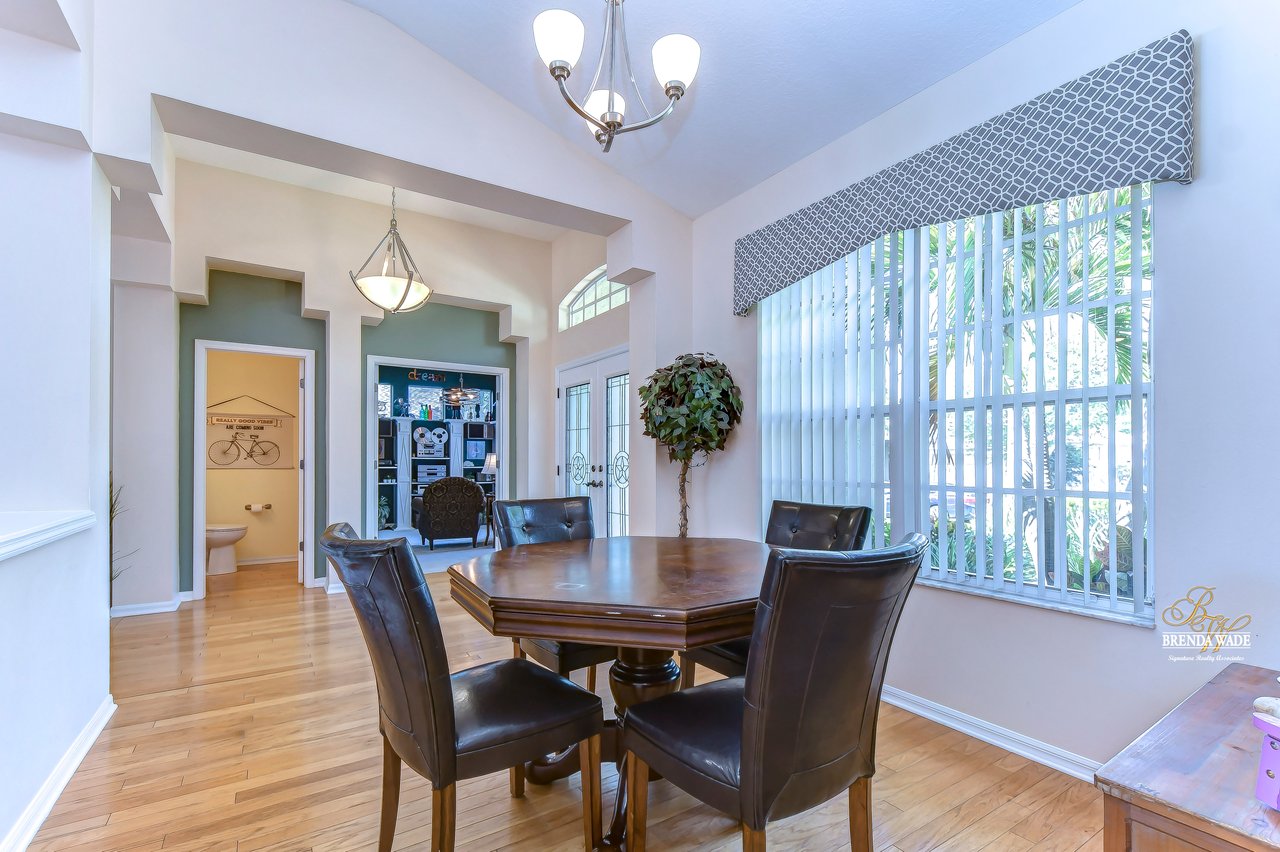 Welcome to this beautiful home that will leave you in awe! Nestled in the highly sought-after Bloomingdale East community, this stunning fenced pool home offers a wonderful combination of luxury and comfort! The community boasts an array of amenities including playgrounds, parks, tennis/basketball courts, miles of sidewalks, and amazing schools! As you step into the home, you are welcomed by vaulted ceilings, luxury vinyl plank, and wood flooring throughout, and an updated split floorplan perfect for extended family or guests, offering ultimate privacy and comfort! Dining room is the perfect spot for intimate dinner gatherings or lively game nights, featuring wood flooring and a large window that fills the room with natural light! Boasting solid wood cabinets, Corian countertops, and stainless appliances, the kitchen will keep you entertaining and making endless memories! Cozy breakfast nook offers breathtaking views of the pool and is the ideal spot for sipping your morning coffee or enjoying a casual meal! The great room is the crown jewel of this home, featuring a beautiful gas fireplace that exudes warmth and coziness, while luxury vinyl plank flooring adds a touch of sophistication! Large double sliders leading to the lanai and pool, allow for the entertainment and relaxation to extend out into the gorgeous Florida weather! Half bath just off the great room adds to the convenience of this wonderful space! The primary bedroom is a retreat itself, featuring wood flooring, large windows that offer beautiful views of the pool, and two walk-in closets. En-suite bath is an oasis, featuring a large soaking tub, walk-in shower, and double sinks with granite countertops. On the opposite side of the home sits two bedrooms with plush carpet, large windows, and a second full bath with a shower/tub combo and granite countertops! Located at the front of the home is a versatile fourth bedroom with French doors that can be utilized as an office or playroom and also features access to the primary bedroom! The outdoor oasis of this home is breathtaking and will make you want to stay! With a covered lanai and heated pool featuring a waterfall feature and large deck, you can enjoy the great Florida weather rain or shine, day or night! The large backyard beyond the pool offers extra room to play and entertain. This home is the perfect blend of style, comfort, and luxury and an opportunity you don't want to miss out on!