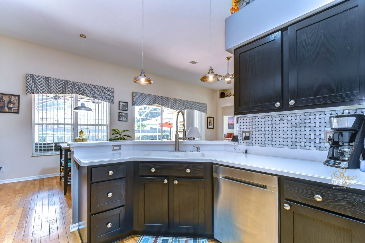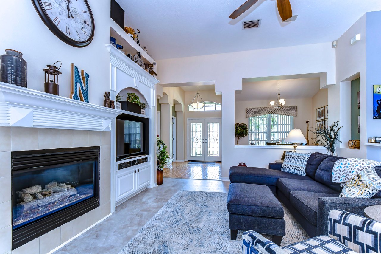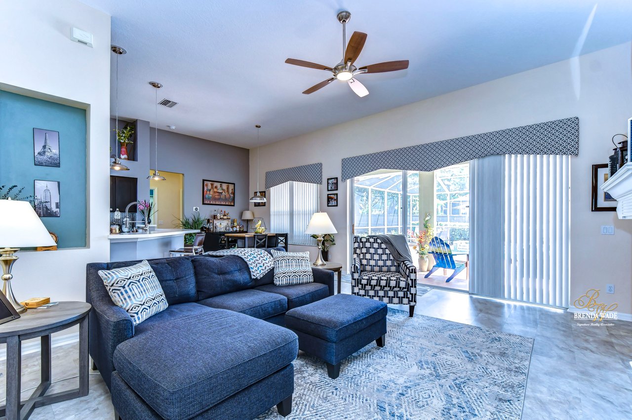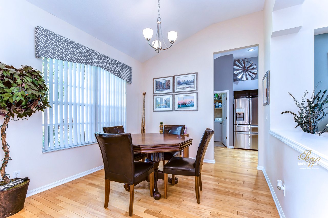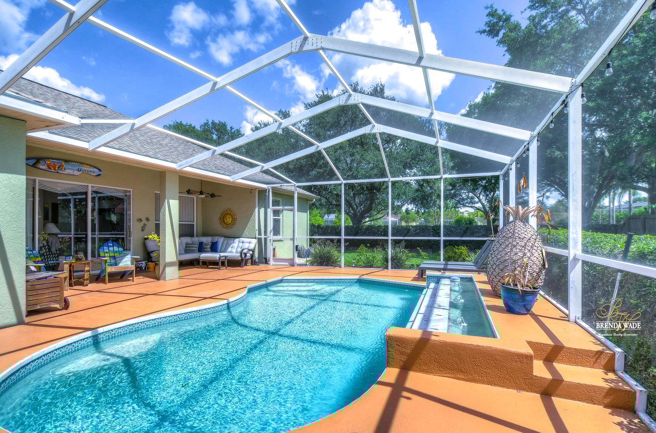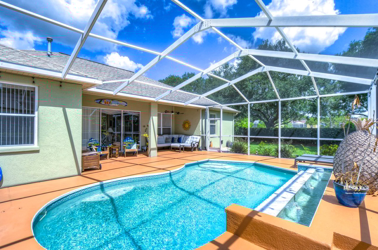 Welcome to this beautiful home that will leave you in awe! Nestled in the highly sought-after Bloomingdale East community, this stunning fenced pool home offers a wonderful combination of luxury and comfort! The community boasts an array of amenities including playgrounds, parks, tennis/basketball courts, miles of sidewalks, and amazing schools! As you step into the home, you are welcomed by vaulted ceilings, luxury vinyl plank, and wood flooring throughout, and an updated split floorplan perfect for extended family or guests, offering ultimate privacy and comfort! Dining room is the perfect spot for intimate dinner gatherings or lively game nights, featuring wood flooring and a large window that fills the room with natural light! Boasting solid wood cabinets, Corian countertops, and stainless appliances, the kitchen will keep you entertaining and making endless memories! Cozy breakfast nook offers breathtaking views of the pool and is the ideal spot for sipping your morning coffee or enjoying a casual meal! The great room is the crown jewel of this home, featuring a beautiful gas fireplace that exudes warmth and coziness, while luxury vinyl plank flooring adds a touch of sophistication! Large double sliders leading to the lanai and pool, allow for the entertainment and relaxation to extend out into the gorgeous Florida weather! Half bath just off the great room adds to the convenience of this wonderful space! The primary bedroom is a retreat itself, featuring wood flooring, large windows that offer beautiful views of the pool, and two walk-in closets. En-suite bath is an oasis, featuring a large soaking tub, walk-in shower, and double sinks with granite countertops. On the opposite side of the home sits two bedrooms with plush carpet, large windows, and a second full bath with a shower/tub combo and granite countertops! Located at the front of the home is a versatile fourth bedroom with French doors that can be utilized as an office or playroom and also features access to the primary bedroom! The outdoor oasis of this home is breathtaking and will make you want to stay! With a covered lanai and heated pool featuring a waterfall feature and large deck, you can enjoy the great Florida weather rain or shine, day or night! The large backyard beyond the pool offers extra room to play and entertain. This home is the perfect blend of style, comfort, and luxury and an opportunity you don't want to miss out on!