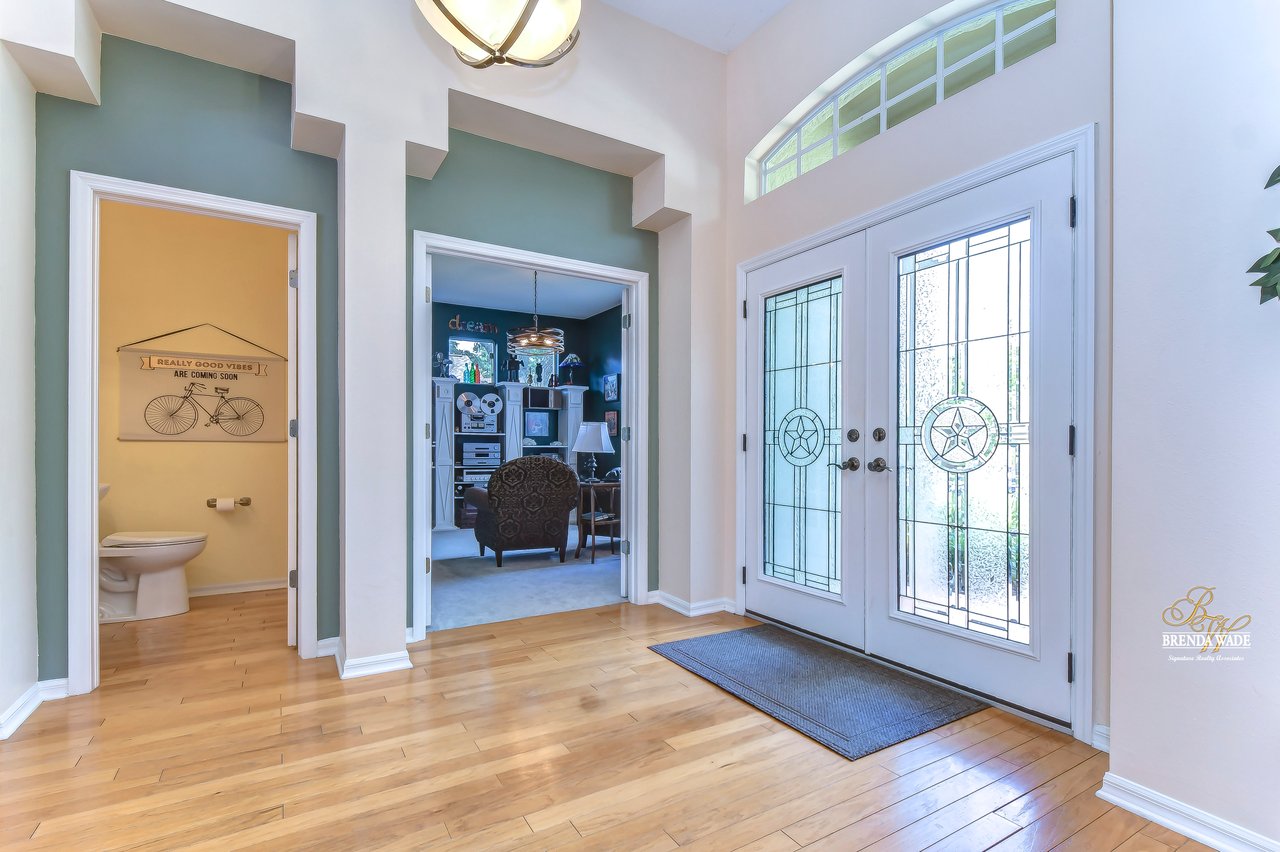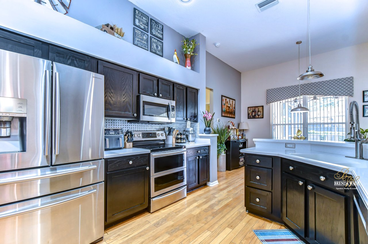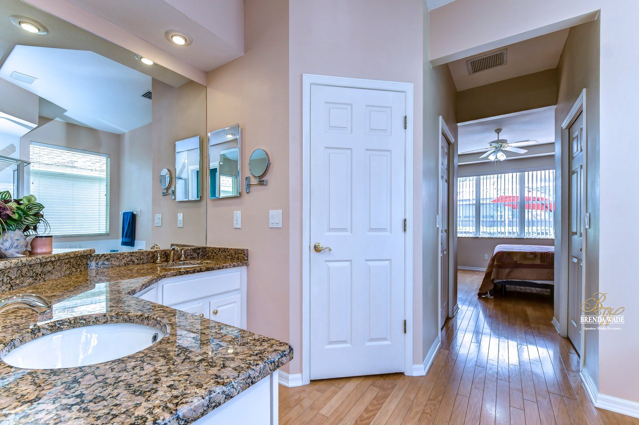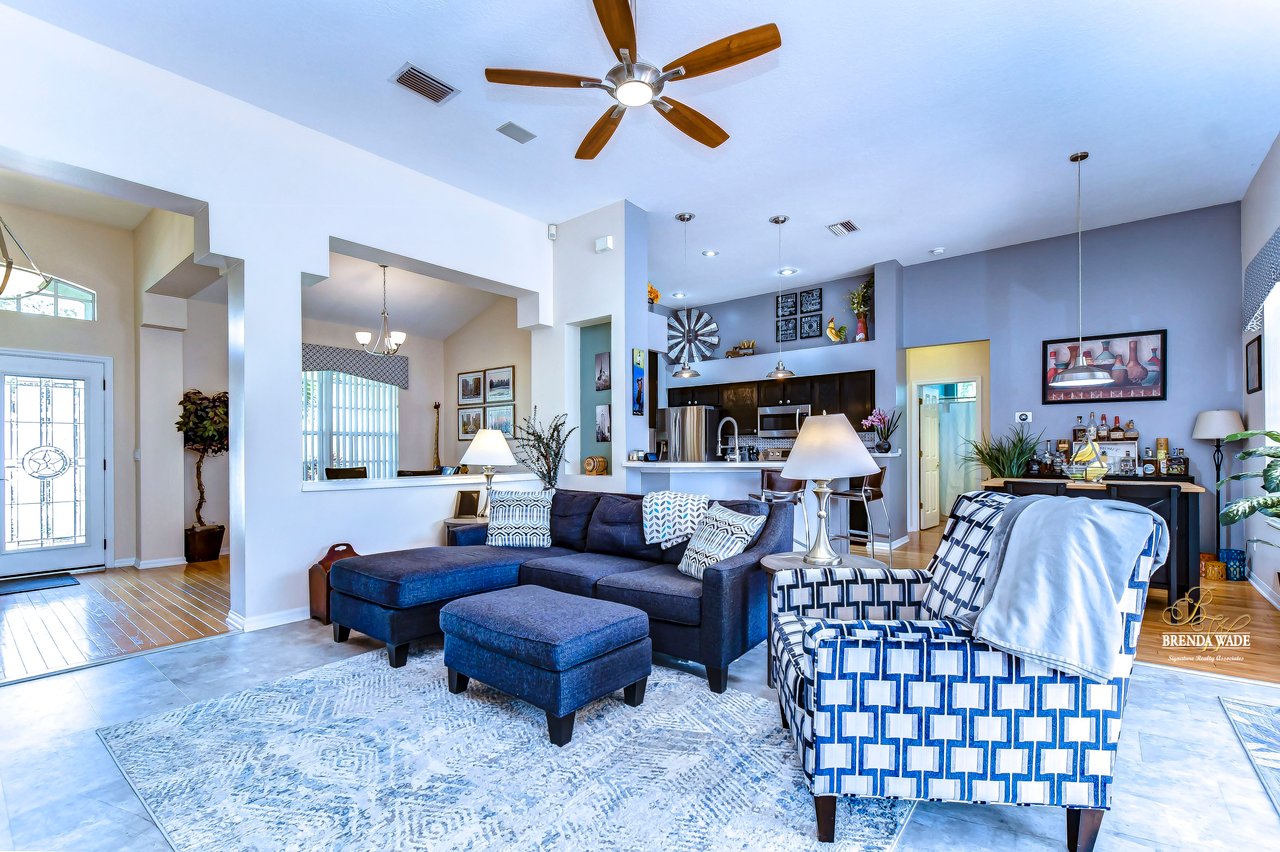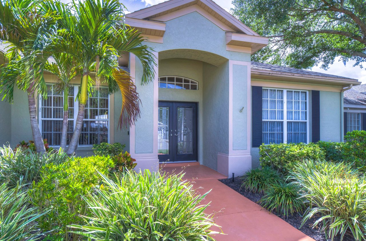 Welcome to this beautiful home that will leave you in awe! Nestled in the highly sought-after Bloomingdale East community, this stunning fenced pool home offers a wonderful combination of luxury and comfort! The community boasts an array of amenities including playgrounds, parks, tennis/basketball courts, miles of sidewalks, and amazing schools! As you step into the home, you are welcomed by vaulted ceilings, luxury vinyl plank, and wood flooring throughout, and an updated split floorplan perfect for extended family or guests, offering ultimate privacy and comfort! Dining room is the perfect spot for intimate dinner gatherings or lively game nights, featuring wood flooring and a large window that fills the room with natural light! Boasting solid wood cabinets, Corian countertops, and stainless appliances, the kitchen will keep you entertaining and making endless memories! Cozy breakfast nook offers breathtaking views of the pool and is the ideal spot for sipping your morning coffee or enjoying a casual meal! The great room is the crown jewel of this home, featuring a beautiful gas fireplace that exudes warmth and coziness, while luxury vinyl plank flooring adds a touch of sophistication! Large double sliders leading to the lanai and pool, allow for the entertainment and relaxation to extend out into the gorgeous Florida weather! Half bath just off the great room adds to the convenience of this wonderful space! The primary bedroom is a retreat itself, featuring wood flooring, large windows that offer beautiful views of the pool, and two walk-in closets. En-suite bath is an oasis, featuring a large soaking tub, walk-in shower, and double sinks with granite countertops. On the opposite side of the home sits two bedrooms with plush carpet, large windows, and a second full bath with a shower/tub combo and granite countertops! Located at the front of the home is a versatile fourth bedroom with French doors that can be utilized as an office or playroom and also features access to the primary bedroom! The outdoor oasis of this home is breathtaking and will make you want to stay! With a covered lanai and heated pool featuring a waterfall feature and large deck, you can enjoy the great Florida weather rain or shine, day or night! The large backyard beyond the pool offers extra room to play and entertain. This home is the perfect blend of style, comfort, and luxury and an opportunity you don't want to miss out on!
