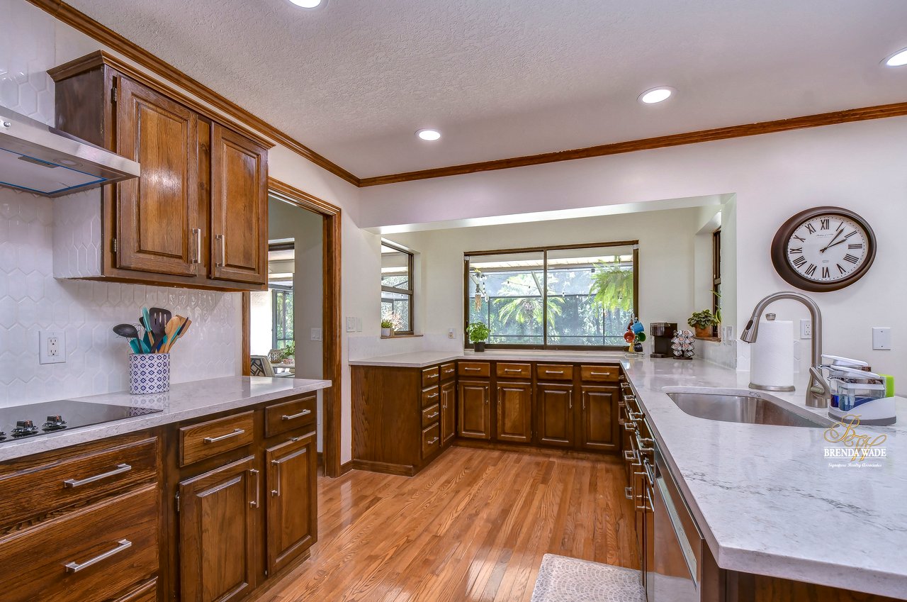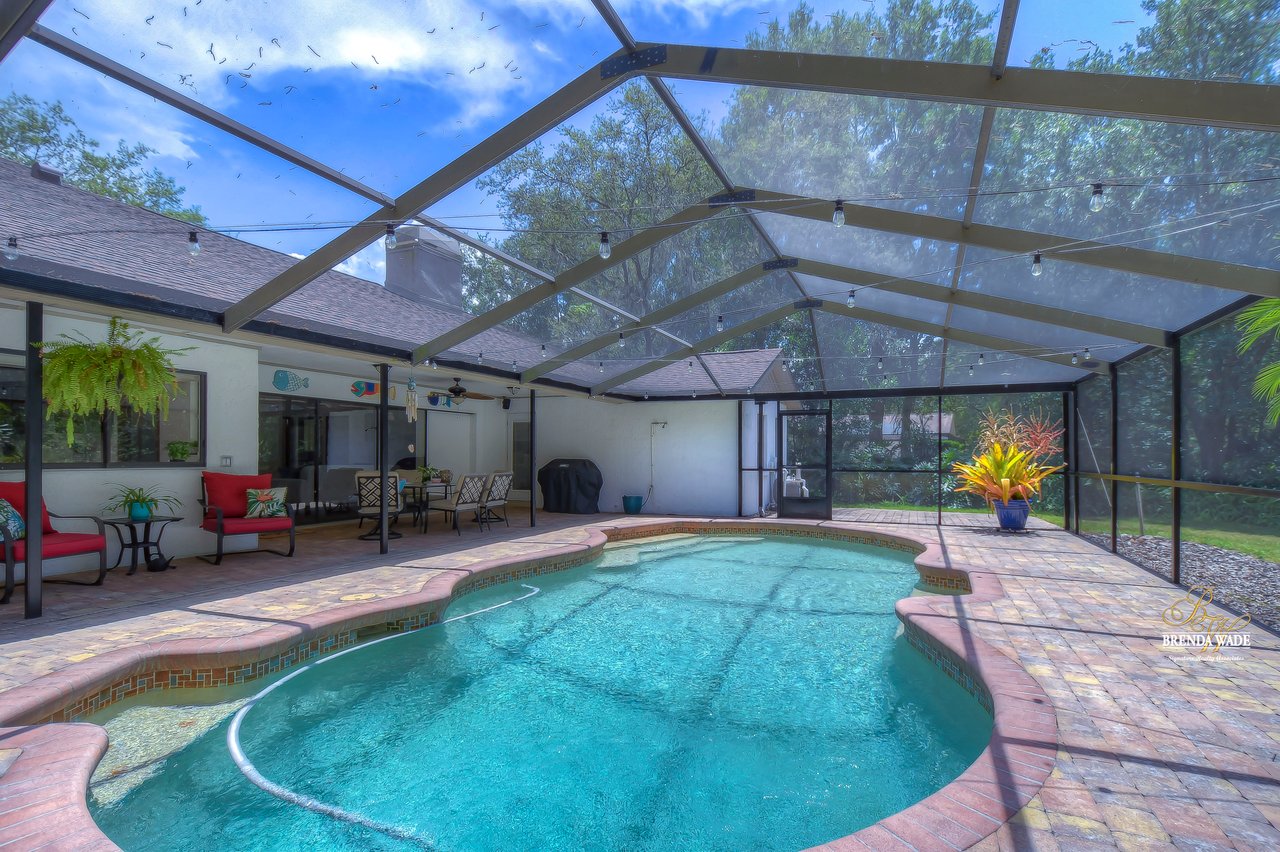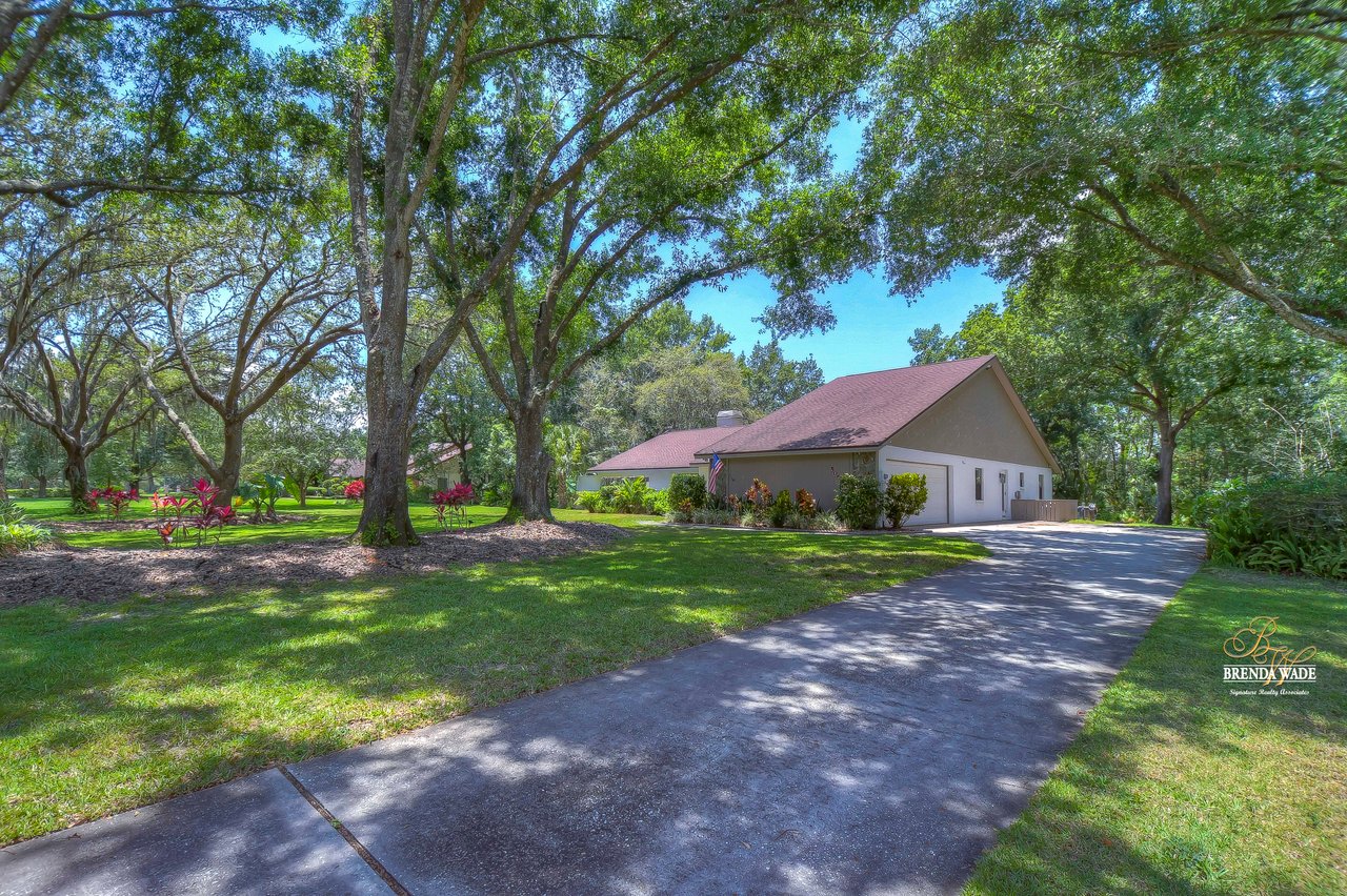 You are going to fall in love with this 4-bedroom, 3-bath pool home nestled on a sprawling park-like property spanning over 1 acre! Tucked in the back of the coveted Southoak neighborhood with limited traffic, this is the perfect home for you and your family! Home is ready and waiting for you with both A/C systems replaced June 2023, new roof in 2019, wood floors, volume ceilings, and neutral paint that will match any décor! Enjoy a country setting while still enjoying the incredible amenities that Tampa has to offer! Situated just moments from downtown, yet perfectly secluded from the hustle and bustle, this home provides access to everything you desire! Plus, with world-renowned Florida beaches and the legendary Walt Disney World and its sister parks only a little over an hour away, you’ll be effortlessly immersed in the magic of the Sunshine State! Boasting a stately 75-foot driveway that enhances the already amazing curb appeal! A delightful dining experience awaits in the dining room featuring wood chair rail and seamless flow into the kitchen, making it an ideal space for both dinner parties and game nights! Living room is a versatile space that can easily be transformed into a playroom or cozy haven for relaxation and socializing! Fully upgraded kitchen is a culinary enthusiast’s dream! Showcasing stunning quartz countertops, a tasteful tile backsplash, luxurious wood cabinets, skylights, and top-of-the-line stainless appliances, including a built-in double oven, this kitchen is equipped to meet all of your needs! Eat-in breakfast nook offers the perfect setting to savor your morning coffee! Family room features striking stone, wood-burning fireplace that serves as the centerpiece, as well as sliders leading to the pool! Featuring a split floor plan, the primary suite is strategically located to ensure ultimate privacy! This generously sized retreat features a private French door leading directly to the lanai and spa-like en-suite bath with elegant crown moulding, upgraded shower with exquisite tile accents, spacious walk-in closet, beautiful tile flooring, and enough counter space to make your daily routine a breeze! On the opposite side of the home, sitting behind a discreet pocket door, you’ll discover two additional spacious bedrooms! These rooms share a bathroom, with beautiful white tile countertops and a tub/shower combo! Additionally, a fourth bedroom, nestled at the front of the home, boasts its own full bath, making it ideal for guests! The “WOW” factor does not end there! Fall in love with oversized lanai that features custom brick pavers, wet bar, and oversized sparkling pool that has been re-marcited, that will provide endless hours of entertainment! With no backyard neighbors, you’ll enjoy the utmost privacy while taking in the lush, meticulously maintained landscaping that offers a well system for low water bills! Homes in this small community do not come on the market often! Come and take a look at this amazing home! Vew this home virtually here: my.matterport.com/show/?m=F5eZTEAiYSK&mls=1