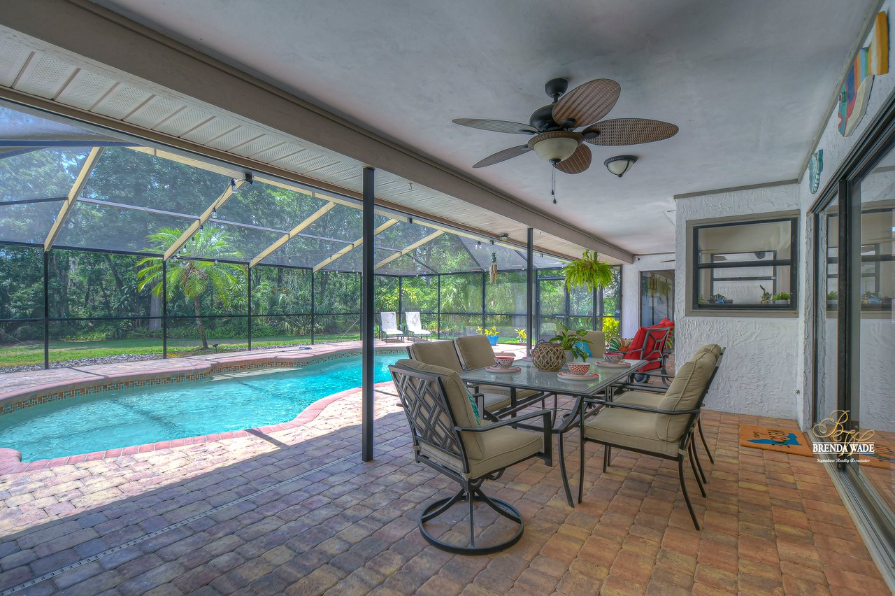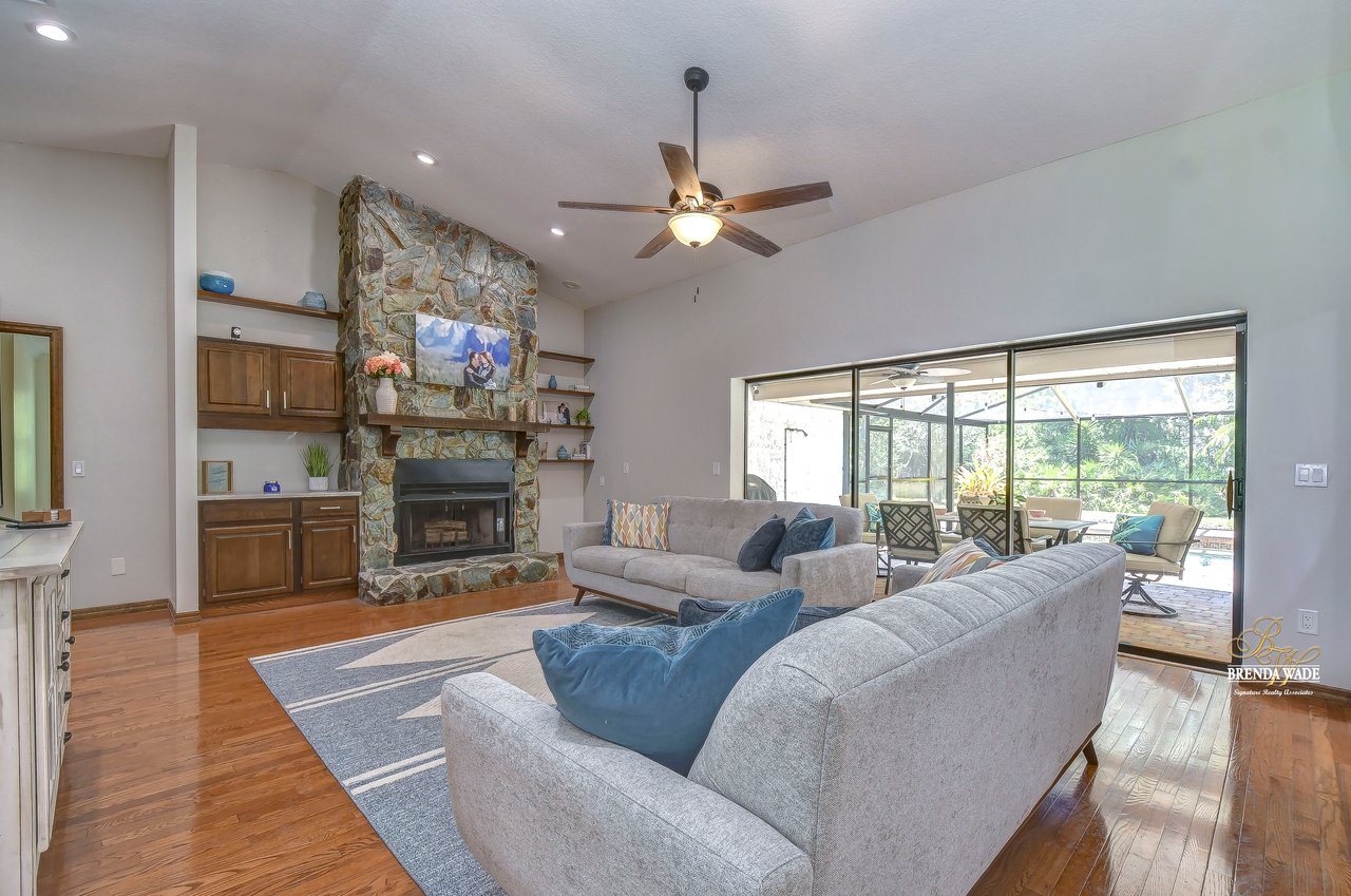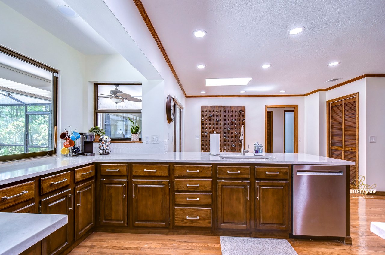 You are going to fall in love with this 4-bedroom, 3-bath pool home nestled on a sprawling park-like property spanning over 1 acre! Tucked in the back of the coveted Southoak neighborhood with limited traffic, this is the perfect home for you and your family! Home is ready and waiting for you with both A/C systems replaced June 2023, new roof in 2019, wood floors, volume ceilings, and neutral paint that will match any décor! Enjoy a country setting while still enjoying the incredible amenities that Tampa has to offer! Situated just moments from downtown, yet perfectly secluded from the hustle and bustle, this home provides access to everything you desire! Plus, with world-renowned Florida beaches and the legendary Walt Disney World and its sister parks only a little over an hour away, you’ll be effortlessly immersed in the magic of the Sunshine State! Boasting a stately 75-foot driveway that enhances the already amazing curb appeal! A delightful dining experience awaits in the dining room featuring wood chair rail and seamless flow into the kitchen, making it an ideal space for both dinner parties and game nights! Living room is a versatile space that can easily be transformed into a playroom or cozy haven for relaxation and socializing! Fully upgraded kitchen is a culinary enthusiast’s dream! Showcasing stunning quartz countertops, a tasteful tile backsplash, luxurious wood cabinets, skylights, and top-of-the-line stainless appliances, including a built-in double oven, this kitchen is equipped to meet all of your needs! Eat-in breakfast nook offers the perfect setting to savor your morning coffee! Family room features striking stone, wood-burning fireplace that serves as the centerpiece, as well as sliders leading to the pool! Featuring a split floor plan, the primary suite is strategically located to ensure ultimate privacy! This generously sized retreat features a private French door leading directly to the lanai and spa-like en-suite bath with elegant crown moulding, upgraded shower with exquisite tile accents, spacious walk-in closet, beautiful tile flooring, and enough counter space to make your daily routine a breeze! On the opposite side of the home, sitting behind a discreet pocket door, you’ll discover two additional spacious bedrooms! These rooms share a bathroom, with beautiful white tile countertops and a tub/shower combo! Additionally, a fourth bedroom, nestled at the front of the home, boasts its own full bath, making it ideal for guests! The “WOW” factor does not end there! Fall in love with oversized lanai that features custom brick pavers, wet bar, and oversized sparkling pool that has been re-marcited, that will provide endless hours of entertainment! With no backyard neighbors, you’ll enjoy the utmost privacy while taking in the lush, meticulously maintained landscaping that offers a well system for low water bills! Homes in this small community do not come on the market often! Come and take a look at this amazing home! Vew this home virtually here: my.matterport.com/show/?m=F5eZTEAiYSK&mls=1