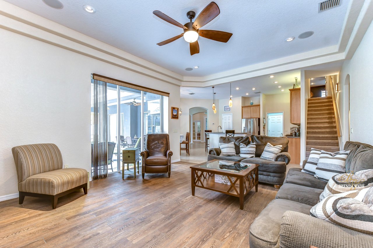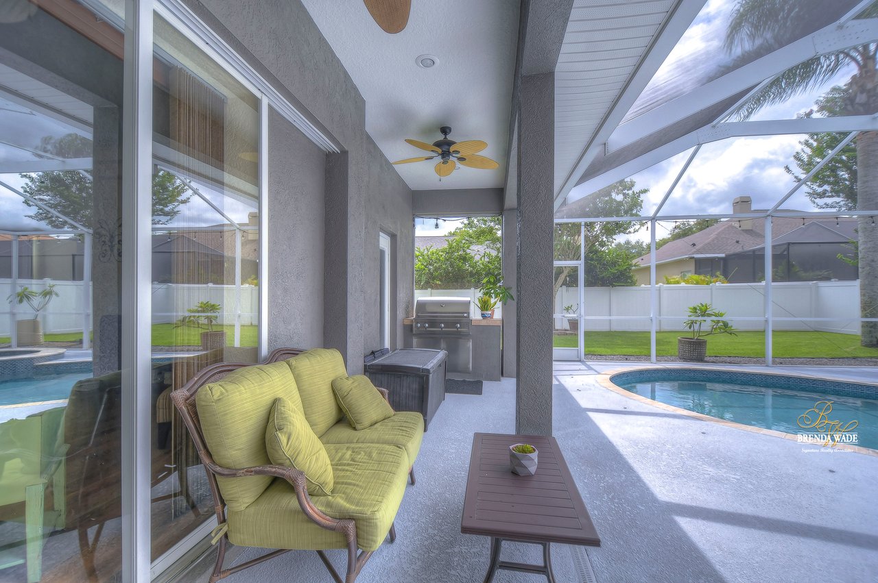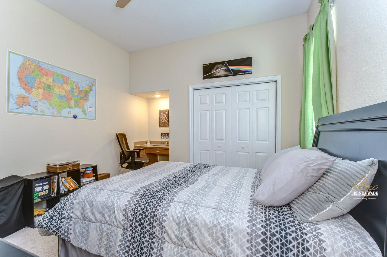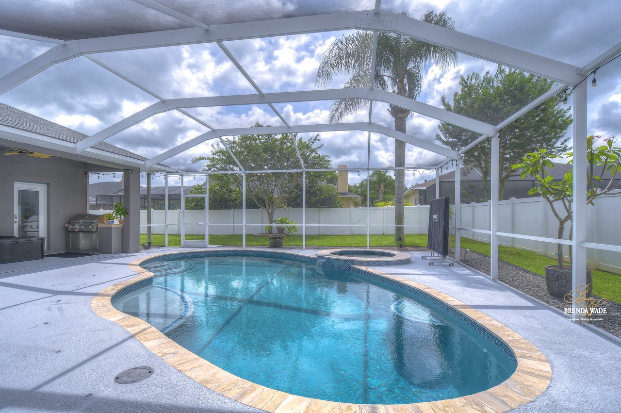Under contract-accepting backup offers. The hunt for your dream home is finally over. This stunning pool home is located in the desirable Citrus Wood community. You'll be captivated by its beautiful curb appeal, boasting a newer roof replaced in 2020, fresh exterior paint, lush landscaping, and welcoming front porch. With its exceptional features and layout, this amazing property offers a triple split floor plan that is sure to meet all your needs. You'll love the tile flooring and stylish columns that lead you into the formal dining room and living room, both with tasteful finishes and perfect for gatherings. The slider in this area opens to the screened lanai, creating a seamless indoor-outdoor flow. A spacious office located at the front of the home provides a comfortable and productive workspace. The kitchen, truly the heart of this home, is a chef's dream come true. It features stunning wood cabinets with crown, stainless appliances, center island, bar seating, decorative tile backsplash and baseboard vac ports, making cleaning effortless. The kitchen seamlessly connects to the family room, ensuring you never miss out on conversations while preparing meals or entertaining guests. The great room features wood-look tile flooring, ceiling speakers and a pocket glass slider to lanai. The primary suite, nestled in its own wing of the house is a true oasis. Featuring a tray ceiling, his and her closets, private exit to the lanai, and an en-suite bath. The en-suite boasts dual sinks, garden soaking tub, and walk-in shower. Two additional spacious bedrooms offer large closet space and share a Jack and Jill bath, while a fourth bedroom at the back of the home offers privacy and convenience, with its own private bath that also serves as a pool bath. Upstairs, an oversized bonus room awaits, offering endless possibilities such as a media room, home gym, or game room. It also features two walk-in storage spaces, ensuring you have plenty of room for all your belongings. The outdoor space of this home is a true showstopper. Take a dip in the beautifully resurfaced pebble tec pool and soak up the sun or gather around the gas grill for some delicious barbecue while engaging in lively conversation. Two separate covered patios provide the perfect space for outdoor entertainment and relaxation. The backyard is fenced, offering a safe and secure area for the whole family to enjoy. Did we mention, this home is just an hour from Disney and various beaches. Don't miss out on this amazing home, schedule your showing now.